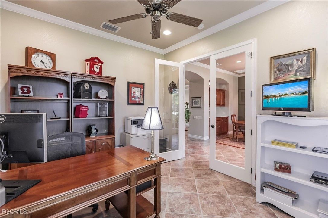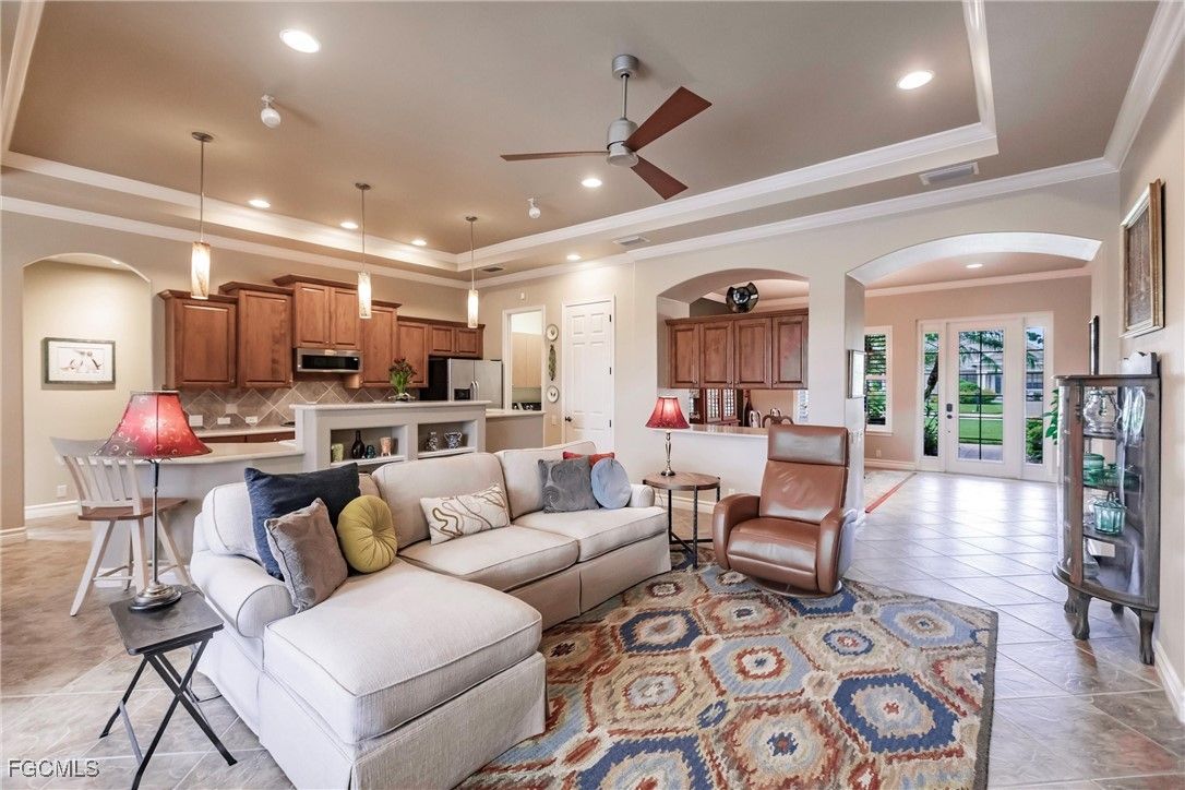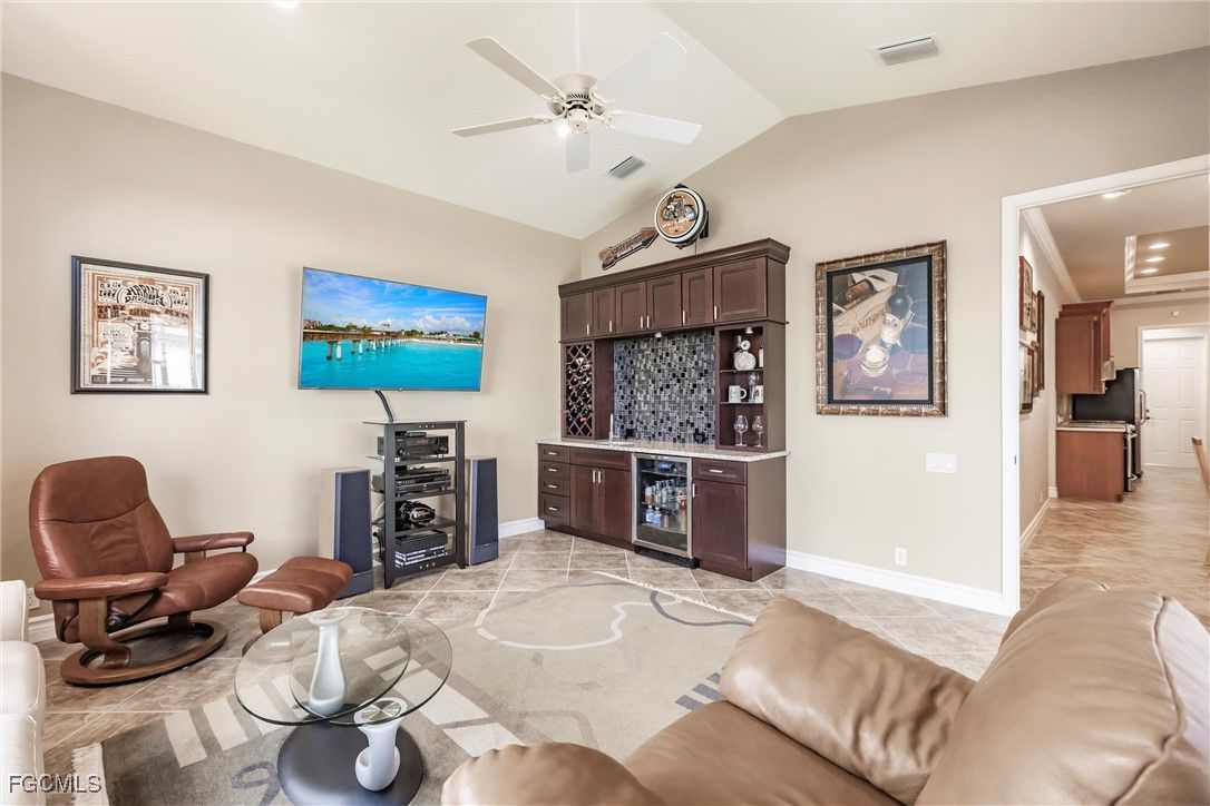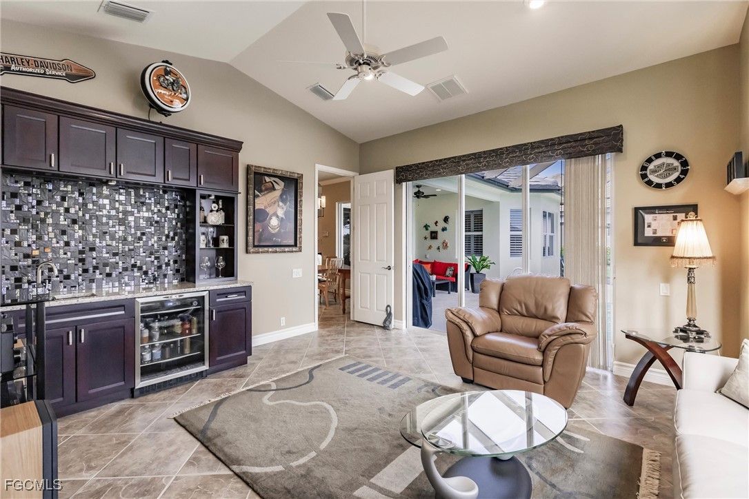 HUGE PRICE REDUCTION MOTIVATED SELLERS. This stunning ARTHUR RUTENBERG HOME, the Seabrook II Model, is now available turnkey at an incredible price. The home features 3 bedrooms plus an office/den, 2 bathrooms, a spacious bonus room with wet bar and small refrigerator, and vaulted ceilings throughout. The property has been upgraded with recessed LED lighting in the great room, kitchen, office/den, dining area, and master bedroom, as well as smoke and CO detectors. Other enhancements include a bay window in the master suite, level IV Corian kitchen countertops with backsplash, newer stainless steel appliances, 42-inch wood cabinets with soft close and pull outs, a natural gas range stove, and a newer AC unit. The laundry room boasts a sink, 42-inch cabinets, and newer washer and gas dryer. Additional features include a seamless bay window in the breakfast area, a den with French doors, 18” x 18” tile installed on a diagonal, and carpeted bedrooms. The master suite includes wood floors in the custom walk-in closet and a remodeled master bath with quartz countertop and all glass shower enclosure. Crown molding is featured in the master suite, foyer, den, dining area, great room, and kitchen. The home also includes eight ceiling fans, pre wired surround sound in the great room and lanai, a humidistat at the AC thermostat, a natural gas tankless water heater, a smart programmable irrigation system, and an oversized garage with epoxy floors and overhead storage. Outside, the property offers interlocking pavers on the driveway and sidewalk, a screened lanai with a salt water pool and spa featuring a natural gas heater, pool alarm, Aqualink management system, and programmable multicolored LED lighting. Plantation shutters are included in the den, dining room, main bath, and bedroom. The outdoor space features a large pool and spa with a fountain, plenty of seating and sunning areas for entertaining and relaxing. The home is situated in the vibrant and active gated Verandah community, which offers 36 holes of Championship Golf designed by Jack Nicklaus and Bob Cupp. Additional amenities include tennis courts, pickleball, bocce, a fitness center, resort-style pool, kayaks, a dog park, playground, multiple restaurants, and a calendar full of activities. This home is a must-see – secure your place in paradise today! BRING OFFERS.