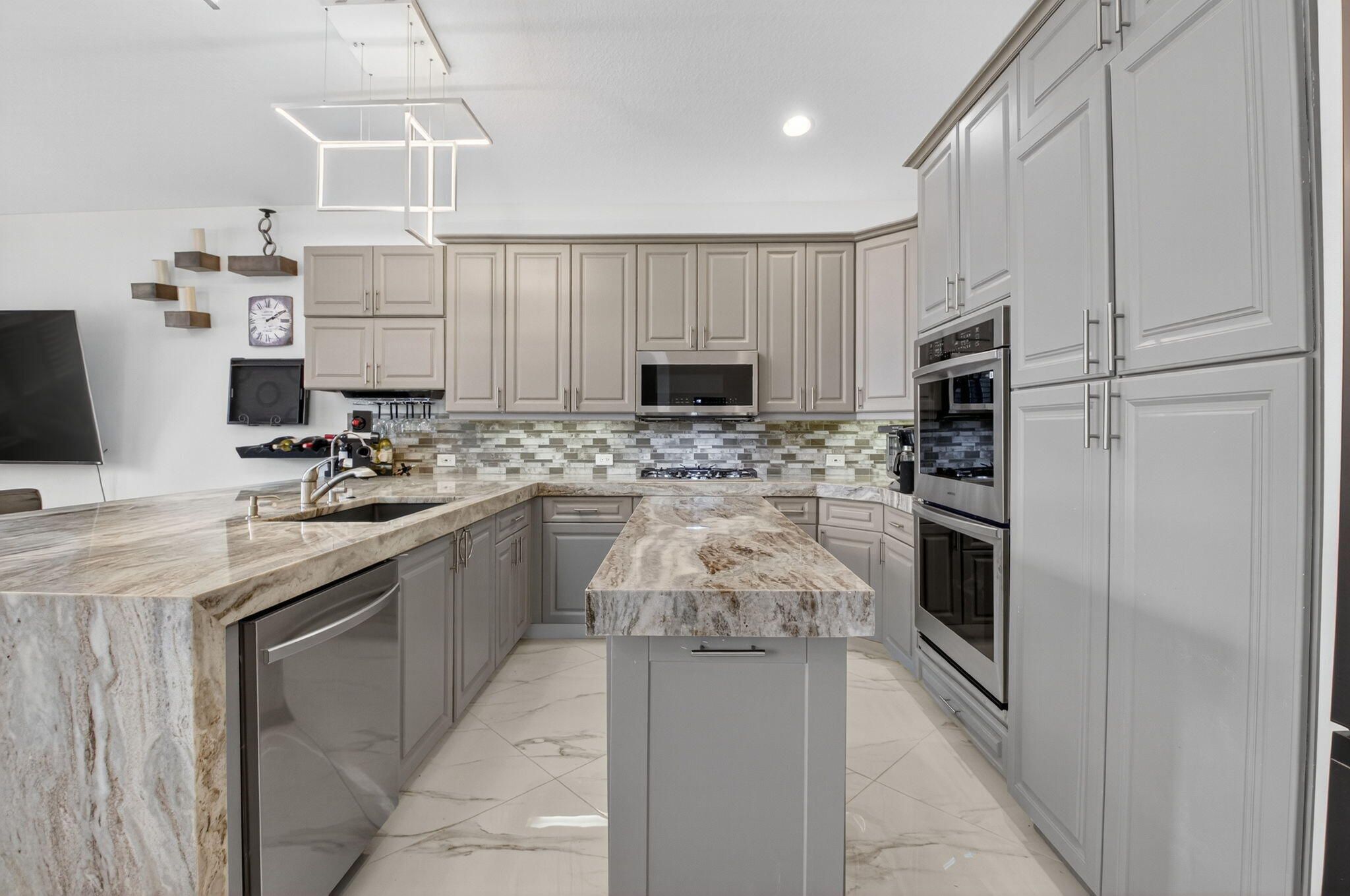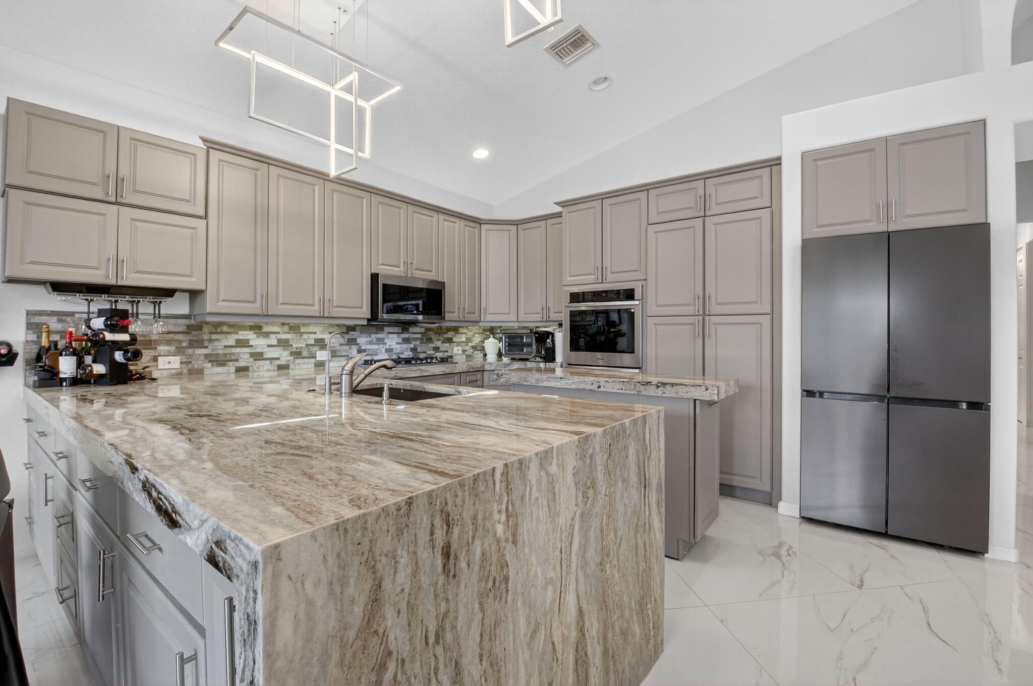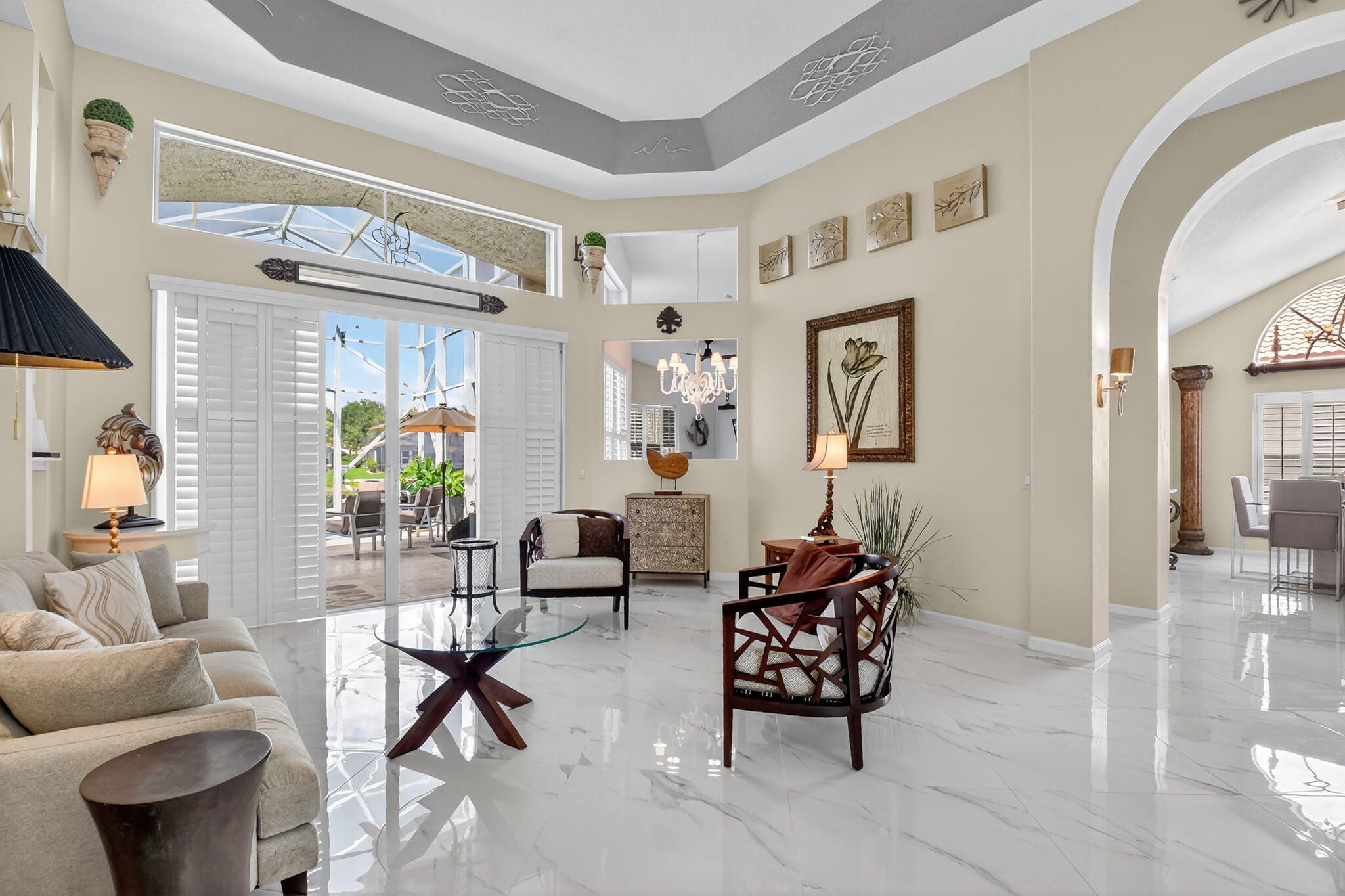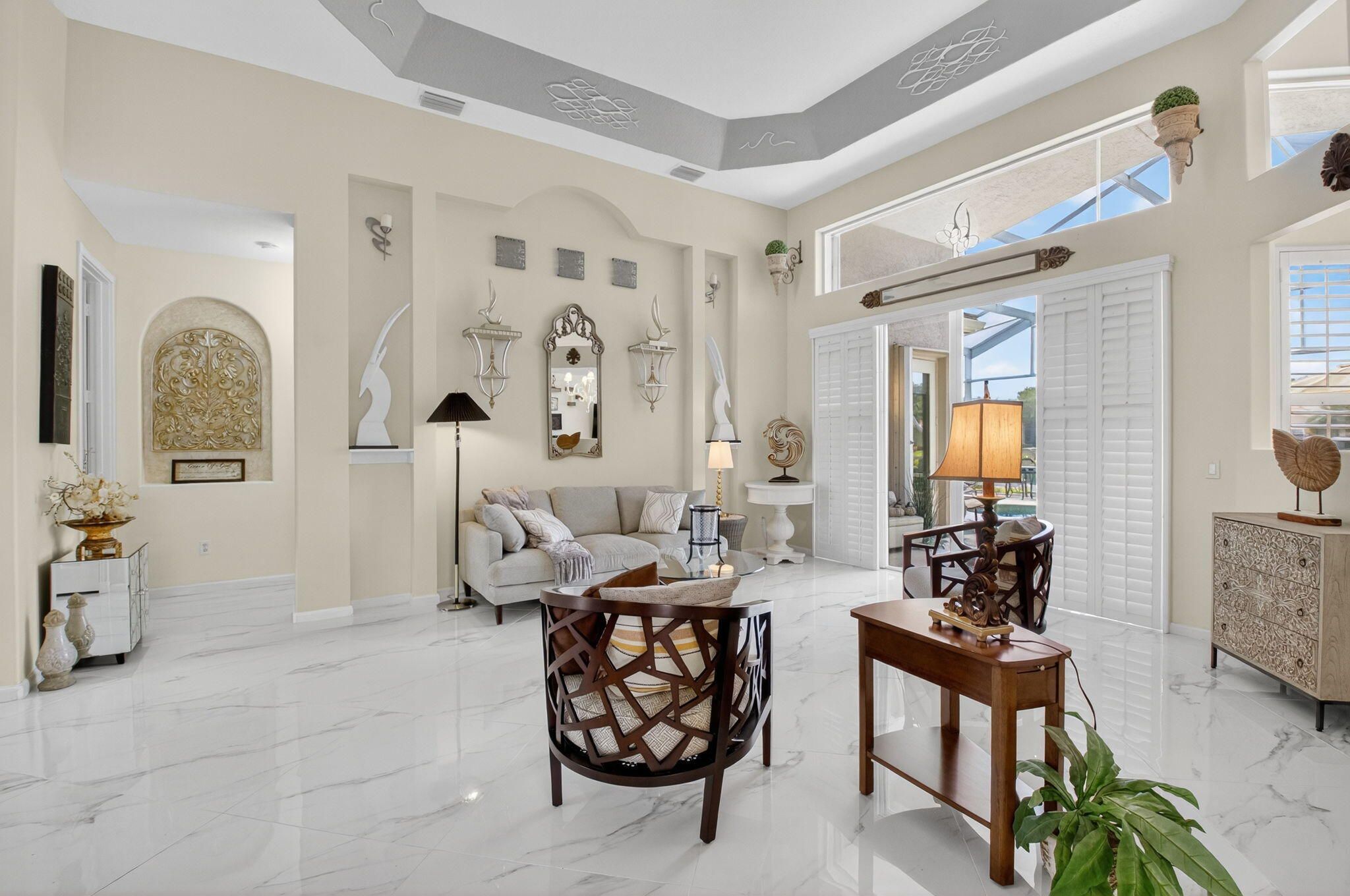 NEW ROOF COMING!! SPECTACULAR MADRID MODEL WITH 4 BEDROOMS, 2.5 BATHS, ON THE LAKE WITH SALT WATER, HEATED POOL WITH HUGE NEW SCREEN ENCLOSURE. TRAVERTINE TILE SURROUNDING THE POOL. THIS DESIGNER'S HOME IS GORGEOUS!! BEAUTIFUL PORCELAIN TILE FLOORS AS YOU ENTER WHICH EXTENDS INTO THE LIVING AREAS. KITCHEN HAS NEWER SS APPLIANCES, GAS COOKTOP, DOUBLE OVENS, DISHWASHER, REFRIGERATOR & WATERFALL GRANITE COUNTERTOPS. WHOLE HOUSE GENERATOR. BEAUTIFULLY UPDATED MASTER BATH WITH NEW CABINETS, WATERFALL QUARTZ COUNTERTOPS AND TONS OF STORAGE. TWO WALK-IN CLOSETS. NEWLY RENOVATED CLUBHOUSE COMING SOON WITH SPECTACULAR EXPANDED FITNESS CENTER AND CAFE. ALL MEASUREMENTS AND INFORMATION DEEMED ACCURATE AND SHOULD BE INDEPENDENTLY VERIFIED.