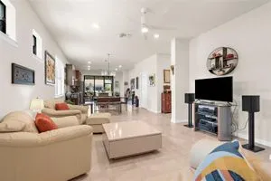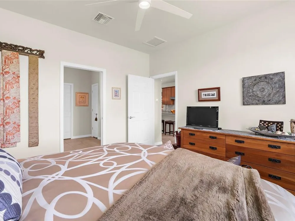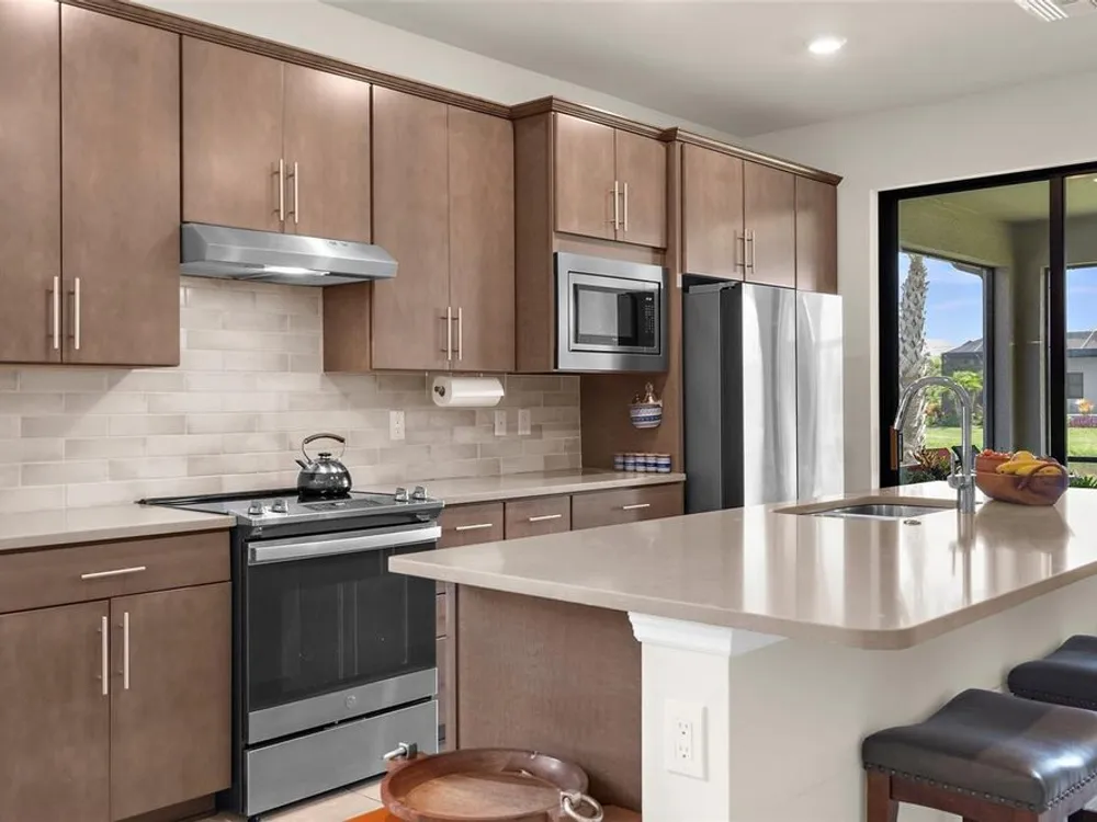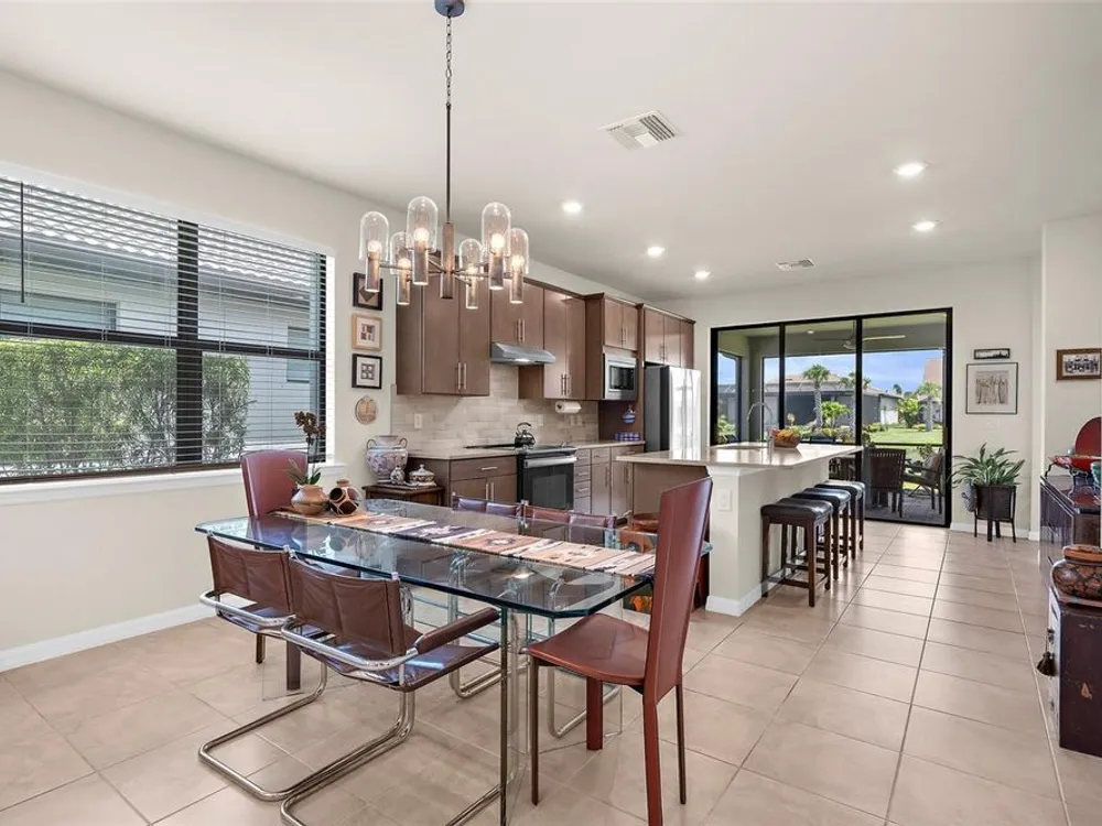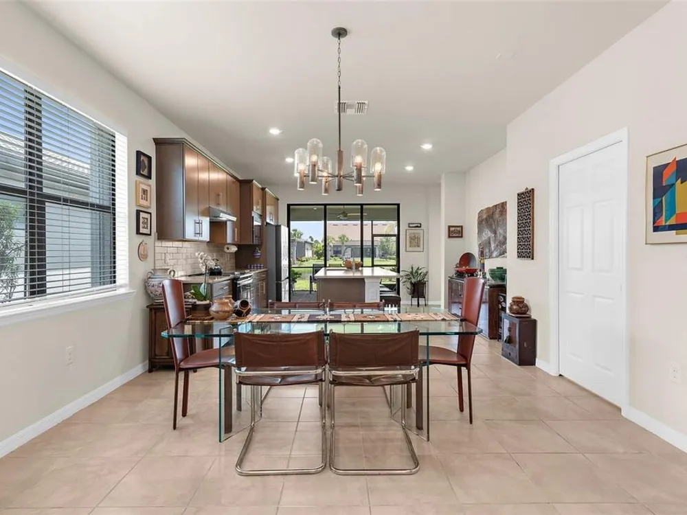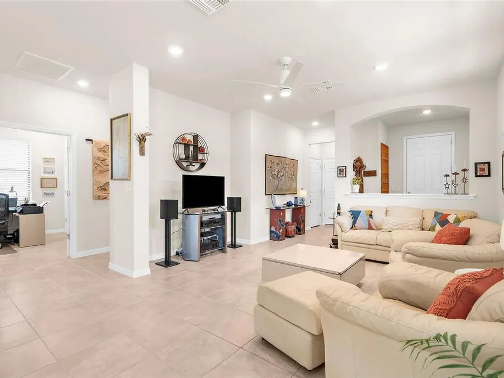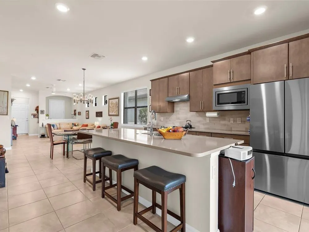 Furnishings have all been removed-easy to picture your own decor! WATER VIEW! Step into comfort and style in this beautifully designed 3-bedroom, 2-bath 1,575sf single family home with bright, open-concept living perfect for relaxing or entertaining. Move outdoors to your spacious covered lanai, positioned along one of IslandWalk’s scenic waterways—an ideal spot to savor breathtaking SUNRISES, dazzling SUNSETS, thrilling rocket launches, and festive fireworks, all from the comfort of home. This may be the only one in Islandwalk featuring the sleek clean lines of flat panel cabinetry, set apart with a modern flair. The Maple Latte soft neutral tones paired with QUARTZ COUNTERTOPS really give a chic look to the kitchen. What everyone loves about this home design is the kitchen! So much room for entertaining with that HUGE ISLAND as a focal point. Additional features include modern ceiling fans that draw the eye upward, accentuating the home's tall ceilings. With blinds on all windows, no need for the expense of purchasing window treatments. For ease of use, you will find hurricane accordion shutters on all windows and sliding door. Not found often - a WATER SOFTENER SYSTEM, gentle on clothes and appliances. FLEX ROOM with closet and french doors - ideal as a bedroom, office or den. You will have the luxury of extra space with a DEEPER GARAGE than found in most homes this size. Neutral tile flooring throughout with carpet in the primary and one guest bedroom(Seller offering credit for carpet condition in primary bedroom). Both bathrooms have coastal white cabinetry with the quartz countertop - same as kitchen. Islandwalk is renowned as one of VENICE'S largest and MOST DESIRED communities. With a full-time activity director, numerous events, clubs and activities, residents enjoy an active and social lifestyle. The community boasts 2 clubhouses, an event center, 2 resort-style pools, a lap pool, 12 pickleball courts, Har Tru tennis courts, dog park, playground, basketball court, miles of nature/biking trails. Venetian bridges and scenic water views complete this picturesque resort lifestyle. One of the great advantages of Islandwalk is that it doesn't require flood insurance and the entire community is maintenance-assisted. The Atlanta Braves Spring Training Stadium is just a short bike ride away, providing year-round events and activities for more than just sports enthusiasts. Another convenience is the completion of the new Downtown Wellen: Publix supermarket, restaurants, coffee places, shopping options, gas station and more! All of these amenities are just a short street-legal golf cart ride away. What are you waiting for? ENJOY the FLORIDA sunshine! Isn't it time to live the carefree lifestyle you’ve always dreamed of?