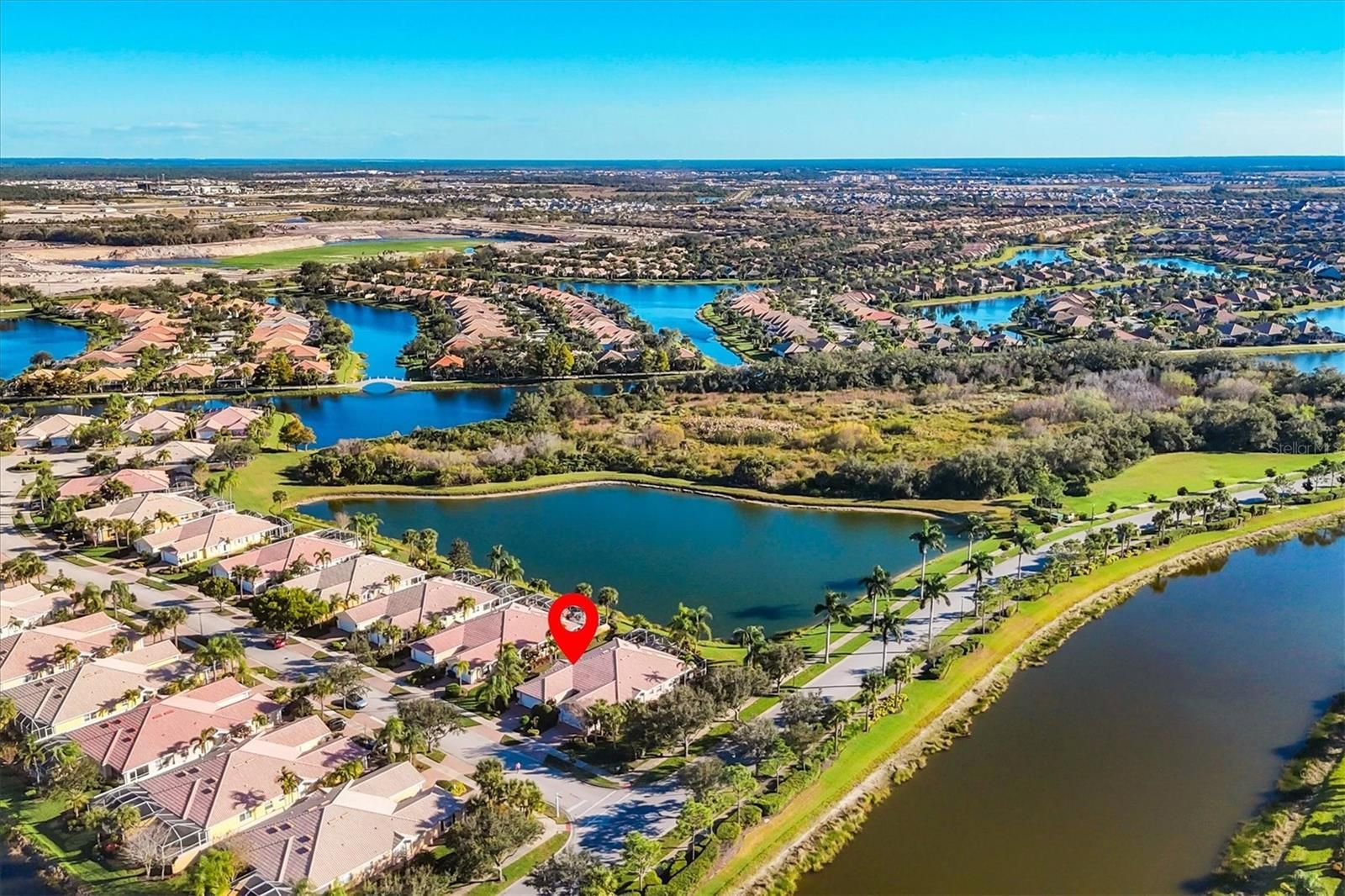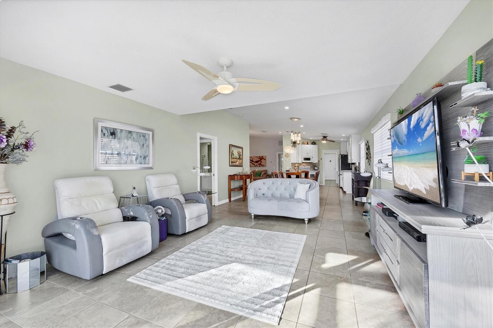 Stunning lake views and soaring ceilings set the tone from the moment you enter this light-filled, beautifully maintained 2-bed 2-bath villa. Two separate living areas create flexibility from the moment you step inside—room to relax, entertain, host, or simply spread out—while the open layout connects the kitchen, dining area, and both living spaces in a way that feels easy and natural. The kitchen anchors the home with beautiful white cabinetry, generous counter space, and seating that invites everything from morning coffee to casual dinners. Updated appliances—including the refrigerator, range, dishwasher, microwave, and disposal—keep the space current and functional, and the layout keeps you connected to the rest of the home while still feeling defined. A NEW A/C and NEW hot water heater add peace of mind early on, handling two of the biggest day-to-day essentials behind the scenes. The split-bedroom design offers privacy and balance. The primary suite features two closets and an en suite bathroom with dual sinks, creating a comfortable retreat at the end of the day. The second bedroom and full bath are thoughtfully positioned on the opposite side of the home, ideal for guests, work-from-home space, or everyday living. A dedicated laundry room adds everyday convenience with cabinetry, counter space, and a utility sink—practical details that make a difference. Sliding doors from the living room open to an extended screened lanai with generous outdoor space overlooking a wide, tranquil lake. This is where mornings start slower, evenings stretch longer, and the view becomes part of your daily routine. Life here feels easy in all the right ways. Lawn care, cable, and internet are included, simplifying the day-to-day so your time stays focused on enjoying the home and everything around it. Set within IslandWalk at the West Villages, the lifestyle is a defining part of the experience. Residents enjoy pickleball, lighted tennis courts, and bocce ball, along with multiple pools including a heated lagoon pool and lap pool. Fitness centers, movement rooms, and miles of scenic walking paths support an active rhythm, while the resort-style clubhouse, spa, fire pits, event spaces, community garden, dog park, library, and game room create places to connect, recharge, and feel at home within the neighborhood. Lakes, palm-lined streets, and thoughtfully designed amenities shape a community that feels vibrant, social, and well cared for. Call for your private showing today!
