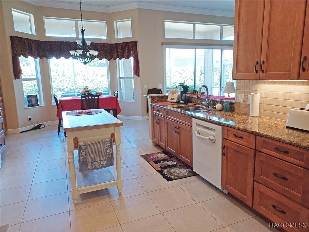 Set on a beautiful lot just a stone's throw from the Citrus Hills Health Club (Bella Vita) is this beauty waiting for a new owner to make memories. The current owners have shared that they have loved living here and want a new family to feel as good as they did about this home and community. This 3-bedroom (the den has a closet) 2 bath home has an ample two car garage with durable epoxy floor coating. Step through the foyer to the tastefully decorated great room with 12-foot ceilings giving this home a spacious feel. The kitchen is large and has a portable island that the owners will leave at the Buyers desire. The kitchen has a gas range, a counter depth refrigerator, a new Bosch ultra-quiet dishwasher, a new microwave, and extended kitchen cabinetry. The kitchen dinette has an upgraded bay window. There is a large, screened lanai with pavers that faces the northeast that helps shade the heat of the afternoon and evening sun. This all lends itself to enjoy the relaxation and the privacy of the good size backyard space. The Primary suite has a very large walk in closet and dual sinks in the bath. Both bathrooms have instant hot water plumbing systems for the sinks. This home has been impeccable cared for and shows like new without the new home sticker price. Enjoy resort style living with all that Terra Vista has to offer with multiple pools (some heated) dog park, pickle ball, multiple gyms and racquetball, Restaurants etc. etc. This is truly a great place to call home.