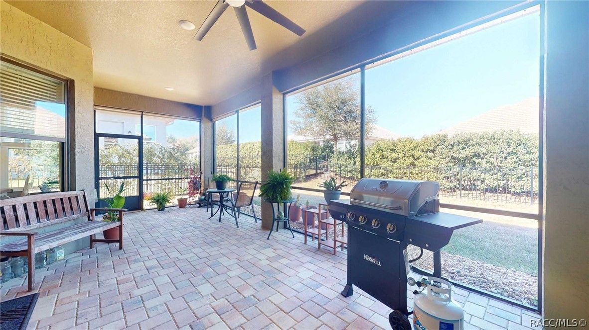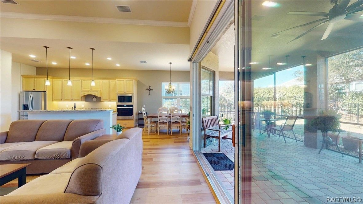 Welcome to easy, resort-style living in the gated 55+ community of Nash Crossings, located in the sought-after Terra Vista! This beautifully maintained 3-bedroom, 2-bath, 2 car garage home offers a true maintenance-free lifestyle, giving you more time to relax and enjoy all the incredible amenities this vibrant community has to offer. Step inside to find stylish luxury vinyl plank flooring throughout, an open and inviting floor plan, and a bright kitchen featuring granite countertops, maple wood cabinetry with crown molding, and plenty of space for entertaining. Enjoy morning coffee in the bay window, accented by charming decorative stone on the exterior. The enclosed lanai with pavers is perfect for unwinding, and the backyard is complete with a 4-foot black aluminum fence for added charm and function. Living in Terra Vista means access to resort -style amenities including three heated pools (one indoor), a spa, fitness center with classes, pickleball, tennis, golf, and miles of fun. Indulge in three on-site restaurants with nightly live entertainment, plus over 100 social clubs to choose from- cooking, travel, wine, and more. There's truly something for everyone! Conveniently located near shopping, dining, and medical facilities, and set in Citrus County-known as "Mother Nature's Playground"-you'll love being close to biking and hiking trails, boating, kayaking, and walking paths. The Gulf of America is just a short drive away, perfect for sunset views, dolphin watching, and some of the best fishing around. This is more than a home -it's a lifestyle. Come experience the best of Terra Vista living!