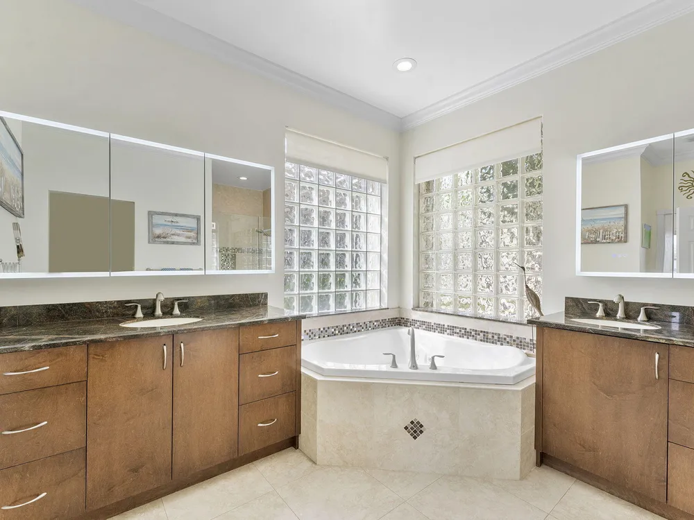- Built-in Shelving, Entry Level Living Area, Kitchen Island, Walk-In Closet(s), Family Room, Dual Sinks, Separate Shower, Bathtub, Whirlpool