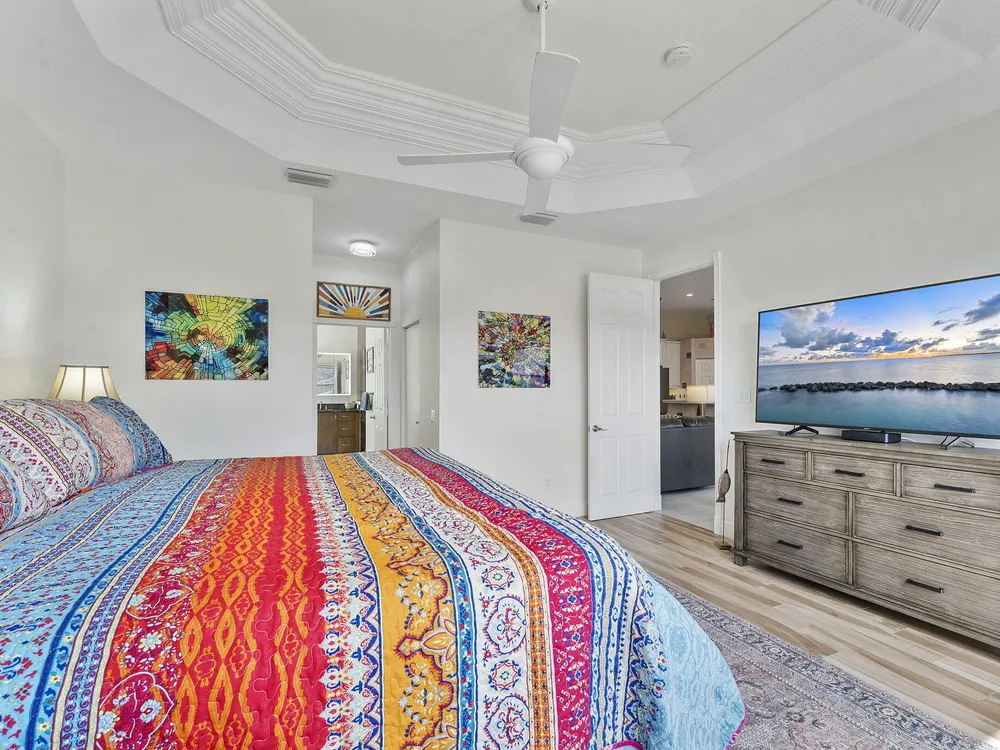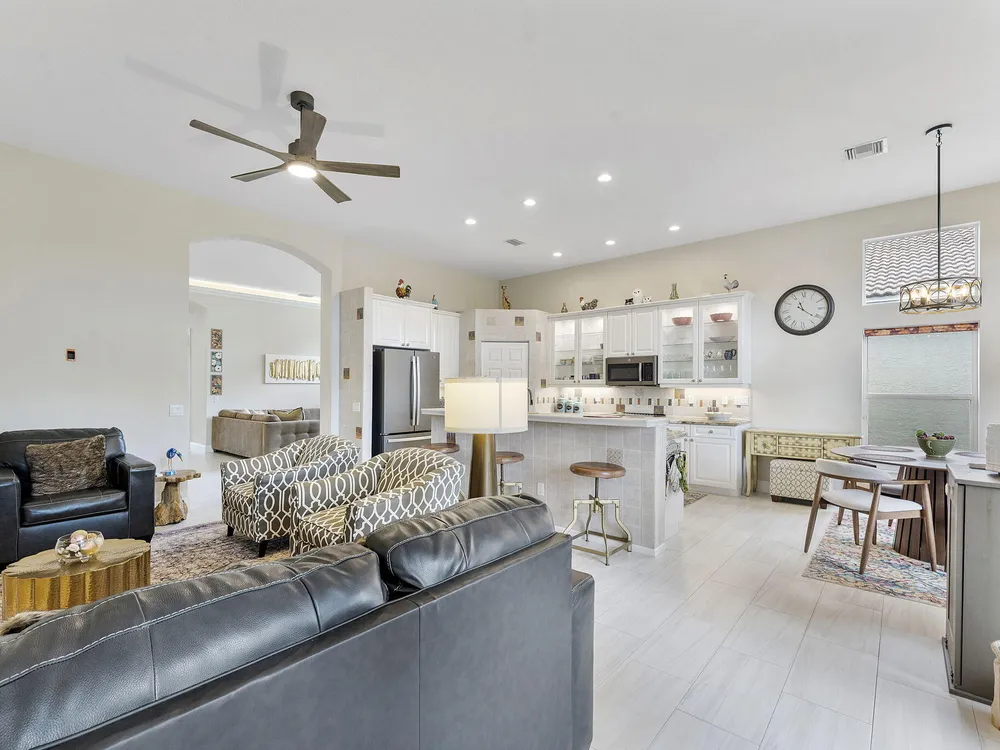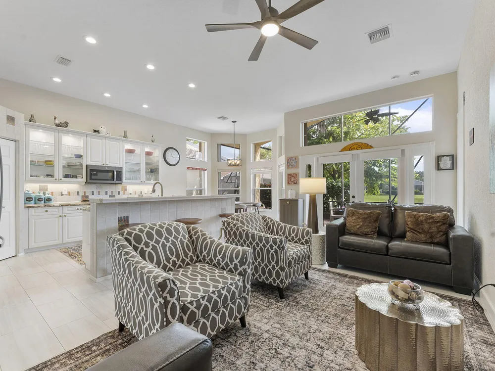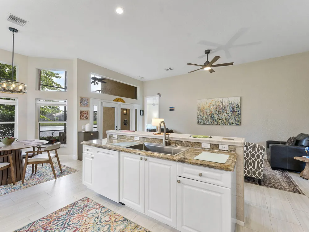 TRANSFER Of LOVE ~ This beautiful 3 bedroom, 3 bathroom Lakefront home offers a perfect combination of comfort and natural beauty. Bright and open kitchen, perfect for entertaining. The primary suite features a spacious walk-in closet and an en-suite bathroom with a jacuzzi tub and frameless shower doors. 2025 roof, kitchen appliances, electrical box and gutters! HVAC replaced in 2021. Enjoy resort-style living with an abundance of amenities to include a spacious clubhouse with fitness center, resort-style pool, pickleball & tennis courts and a variety of activities.