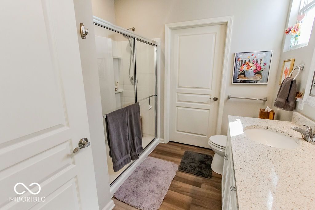 Enjoy the awesome Del Webb Lifestyle in this fabulous home on a premium lot, LOADED with luxury upgrades for the discriminating buyer. You are welcomed to this lovely home with a covered front porch and beautiful leaded glass entry door. The amazing open concept plan is an entertainer's dream, perfect for gatherings of family and friends. The focal point of the great room is a dramatic floor to ceiling gas fireplace, custom designed by the owners. The cheerful kitchen features white cabinets, quartz counters, tile backsplash and gas range. The outdoor space is an amazing oasis! You might find yourself enjoying morning coffee, a good book or glass of wine on the wonderful screened porch with a durable and beautiful epoxy finish floor. You'll appreciate the additional shade added with remote control blinds. Step out onto the huge decorative concrete patio with pergola, where you can relax, cook out and entertain, plus enjoy easy access to the community walking trail. And there's more... You will marvel at all that the garage offers: it is insulated and fully finished, has a 4' front extension, durable quality epoxy finish on the floor, and a ceiling hanging storage rack. Your lawn maintenance and snow removal are taken care of, so you'll have plenty of time to enjoy the array of amenities, activities, clubs and special events that Britton Falls offers its residents.