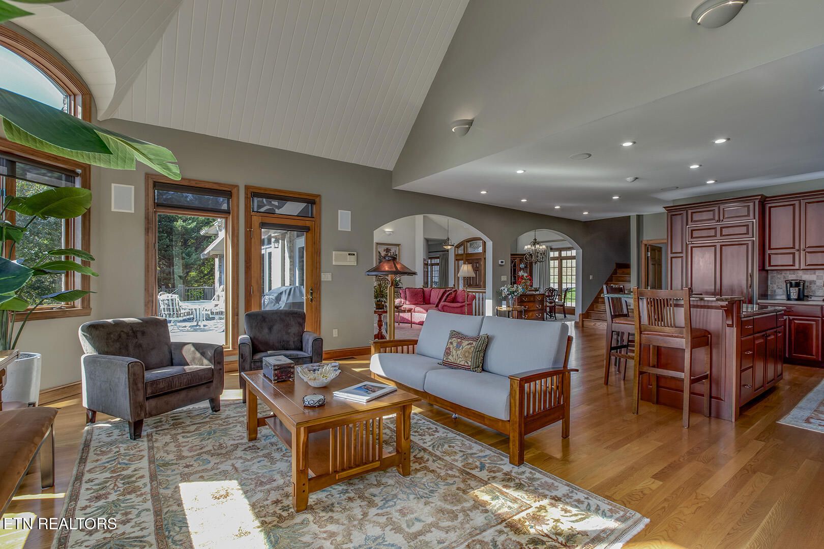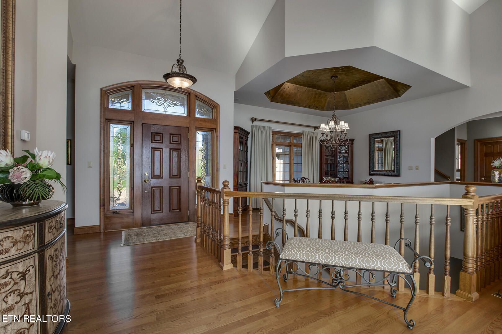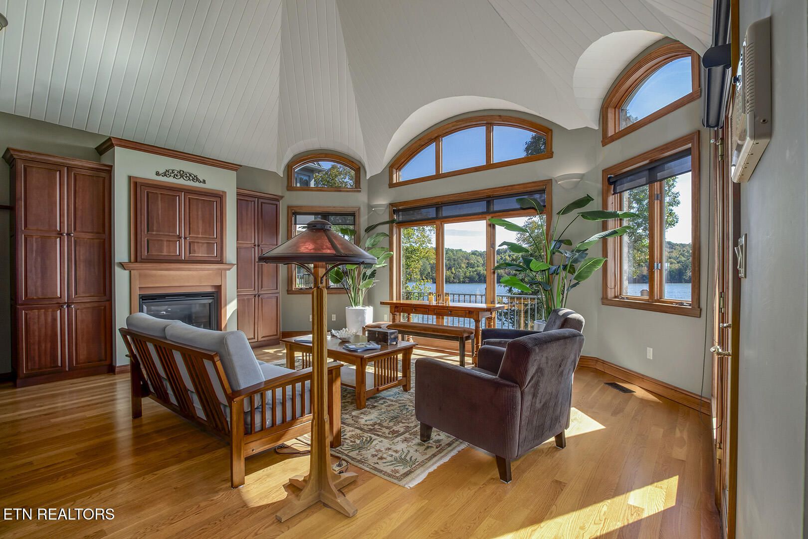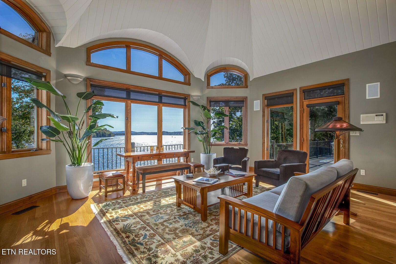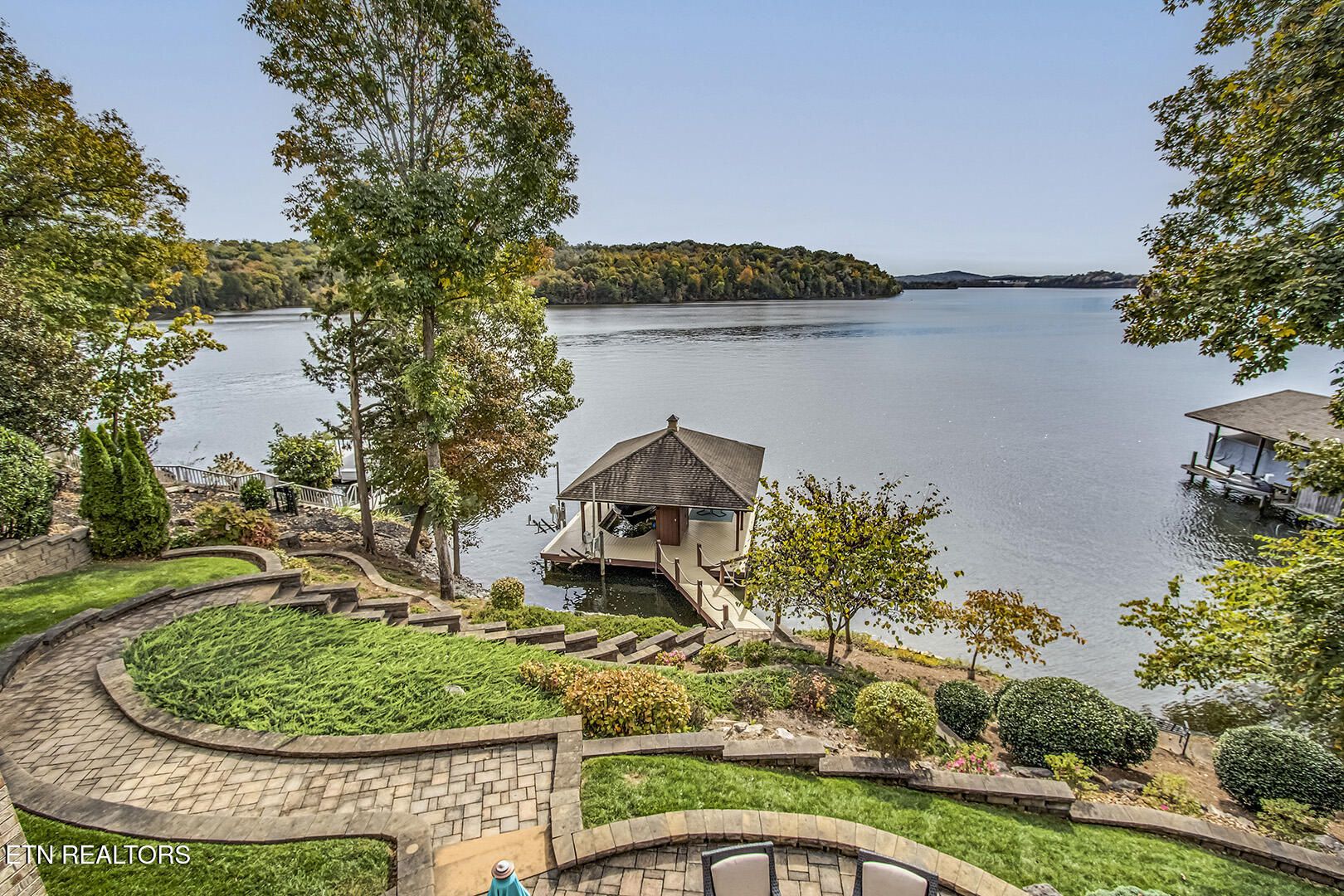 WATERFRONT with SPECTACULAR LAKE and MOUNTAIN VIEWS from almost every room. Enjoy morning coffee relaxing on the spacious deck overlooking the lake or hosting a gathering of friends as you take in the impressive views of the incredible tiered landscaping and a stone walkway leading to your PRIVATE DOCK on the main channel of Tellico Lake. This custom home will not disappoint from the open floor plan with high architectural ceiling in the living room, gold-leaf trey ceiling in the dining room, and a hearth room adjacent to the kitchen. The chef's kitchen is a show-stopper with plenty of room for entertaining and includes a Sub Zero panel refrigerator, custom Mouser cabinets, new GE Advantium CAFE French door oven and microwave, large walk-in pantry, and two sinks. Relax in the spacious Primary Bedroom overlooking the lake that boasts a cozy fireplace, trey ceiling, walk-in closet and large ensuite bath. An office/5th bedroom with an adjoining full bath round out the main level. The lower level has a full kitchen, living area with stone fireplace, and dining/game area. In addition there are two spacious guest bedrooms with jack-and-jill bath, a home gym, and garage space with a workshop. Fiber Optics is available through the local phone company (TDS) for fast internet service. Twenty-two updates have been made so ask the agent for a copy of the list. Just a few of the updates include: new high-end appliances, humidifier, HVAC, hardwood flooring, front door, landscaping and irrigation updates, shingles, and Trex decking. Country Club membership is OPTIONAL.