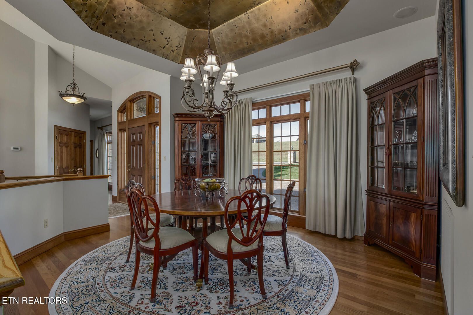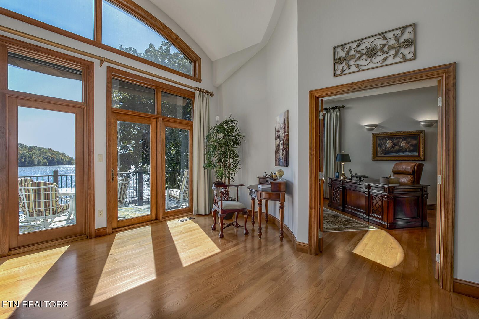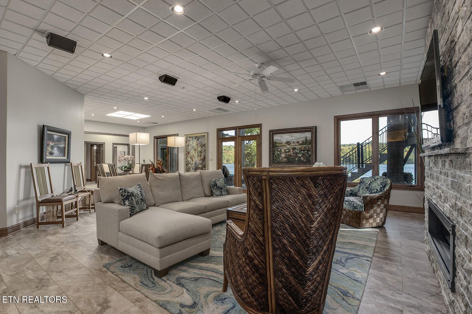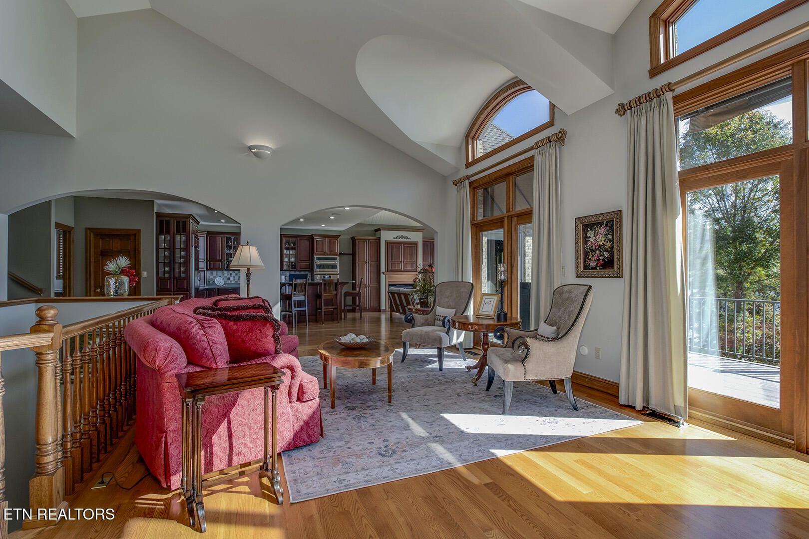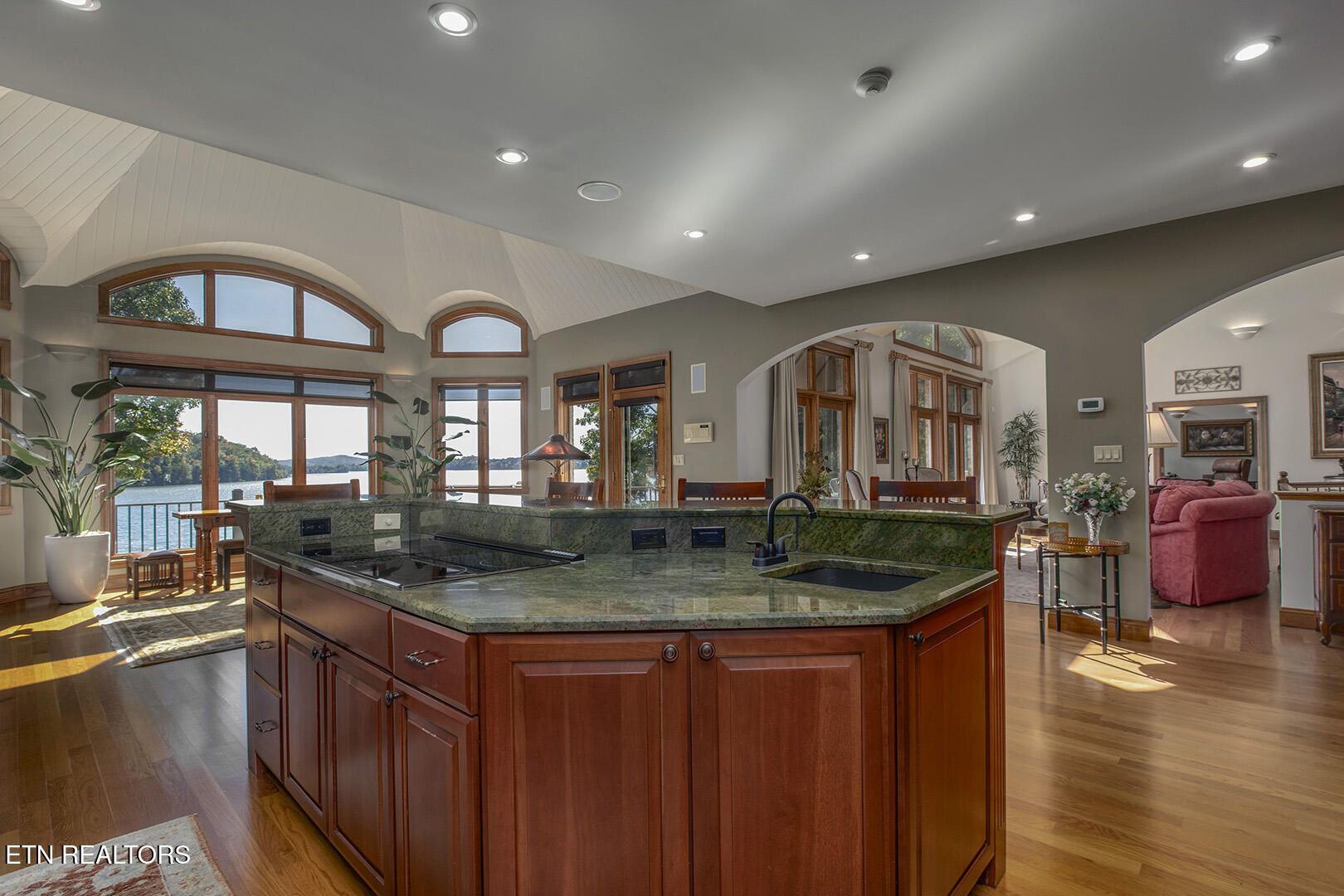 WATERFRONT with SPECTACULAR LAKE and MOUNTAIN VIEWS from almost every room. Enjoy morning coffee relaxing on the spacious deck overlooking the lake or hosting a gathering of friends as you take in the impressive views of the incredible tiered landscaping and a stone walkway leading to your PRIVATE DOCK on the main channel of Tellico Lake. This custom home will not disappoint from the open floor plan with high architectural ceiling in the living room, gold-leaf trey ceiling in the dining room, and a hearth room adjacent to the kitchen. The chef's kitchen is a show-stopper with plenty of room for entertaining and includes a Sub Zero panel refrigerator, custom Mouser cabinets, new GE Advantium CAFE French door oven and microwave, large walk-in pantry, and two sinks. Relax in the spacious Primary Bedroom overlooking the lake that boasts a cozy fireplace, trey ceiling, walk-in closet and large ensuite bath. An office/5th bedroom with an adjoining full bath round out the main level. The lower level has a full kitchen, living area with stone fireplace, and dining/game area. In addition there are two spacious guest bedrooms with jack-and-jill bath, a home gym, and garage space with a workshop. Fiber Optics is available through the local phone company (TDS) for fast internet service. Twenty-two updates have been made so ask the agent for a copy of the list. Just a few of the updates include: new high-end appliances, humidifier, HVAC, hardwood flooring, front door, landscaping and irrigation updates, shingles, and Trex decking. Country Club membership is OPTIONAL.
