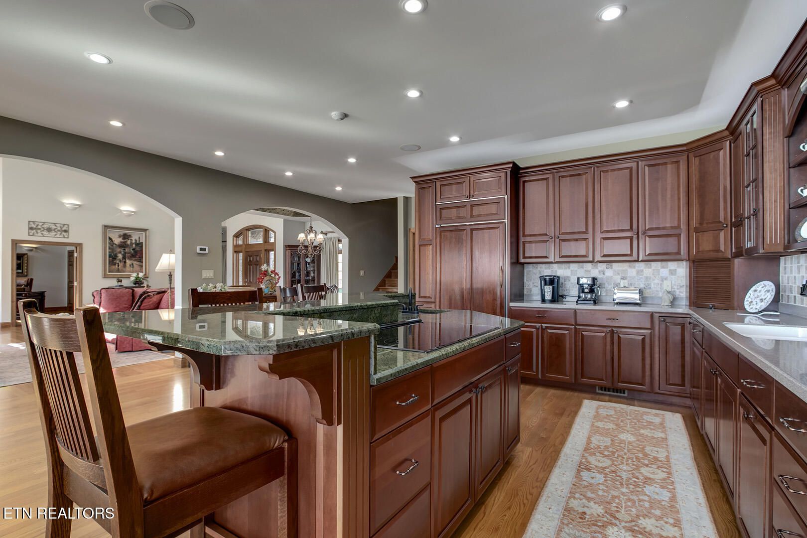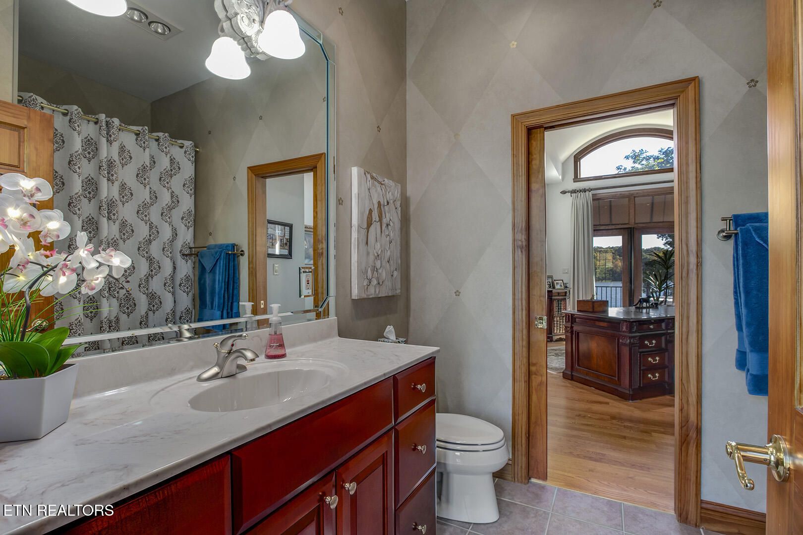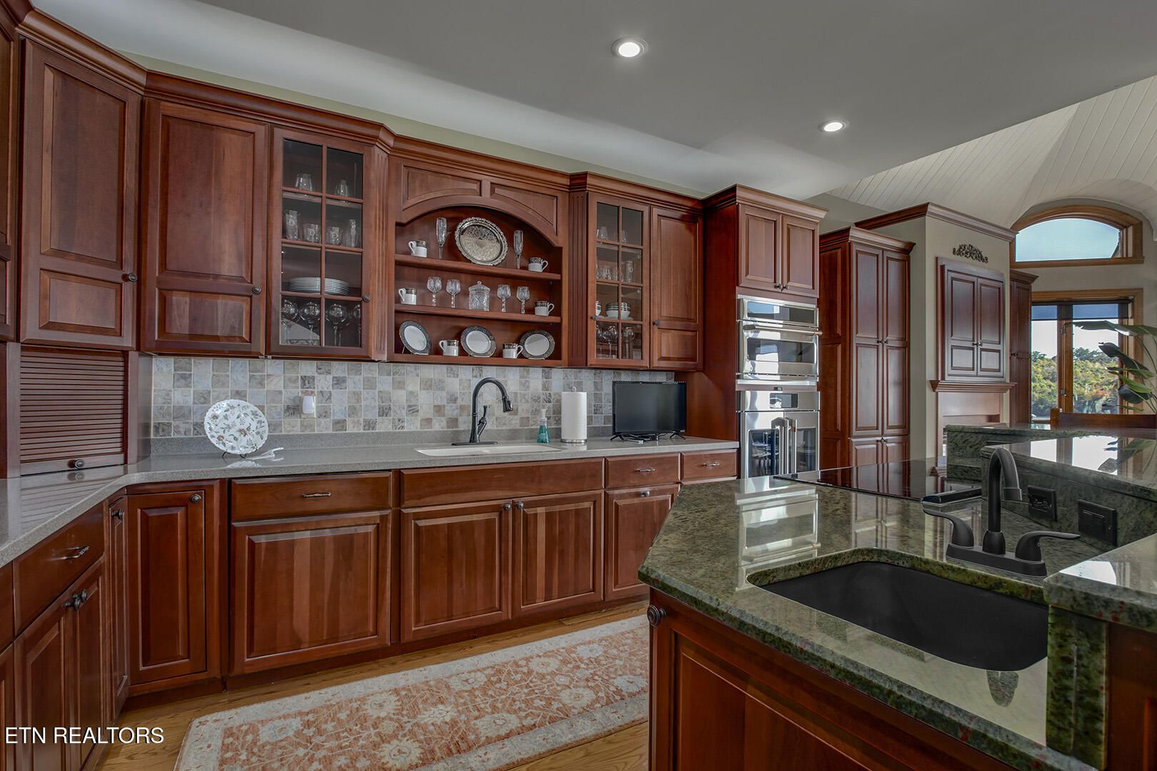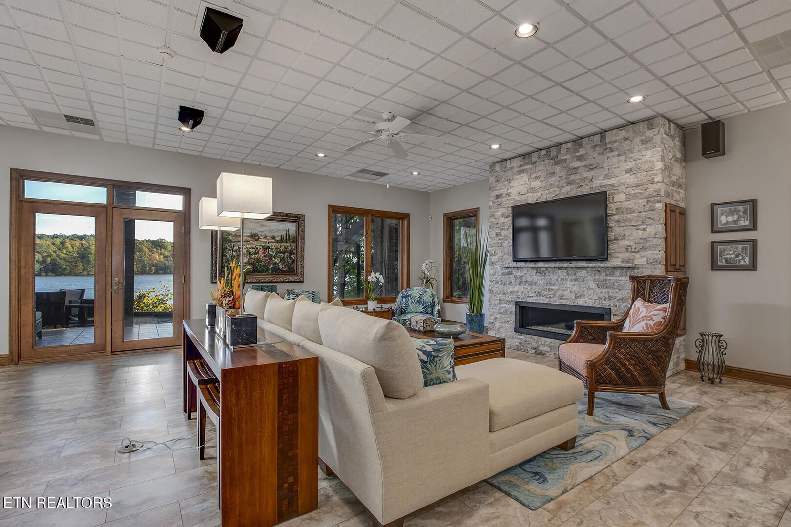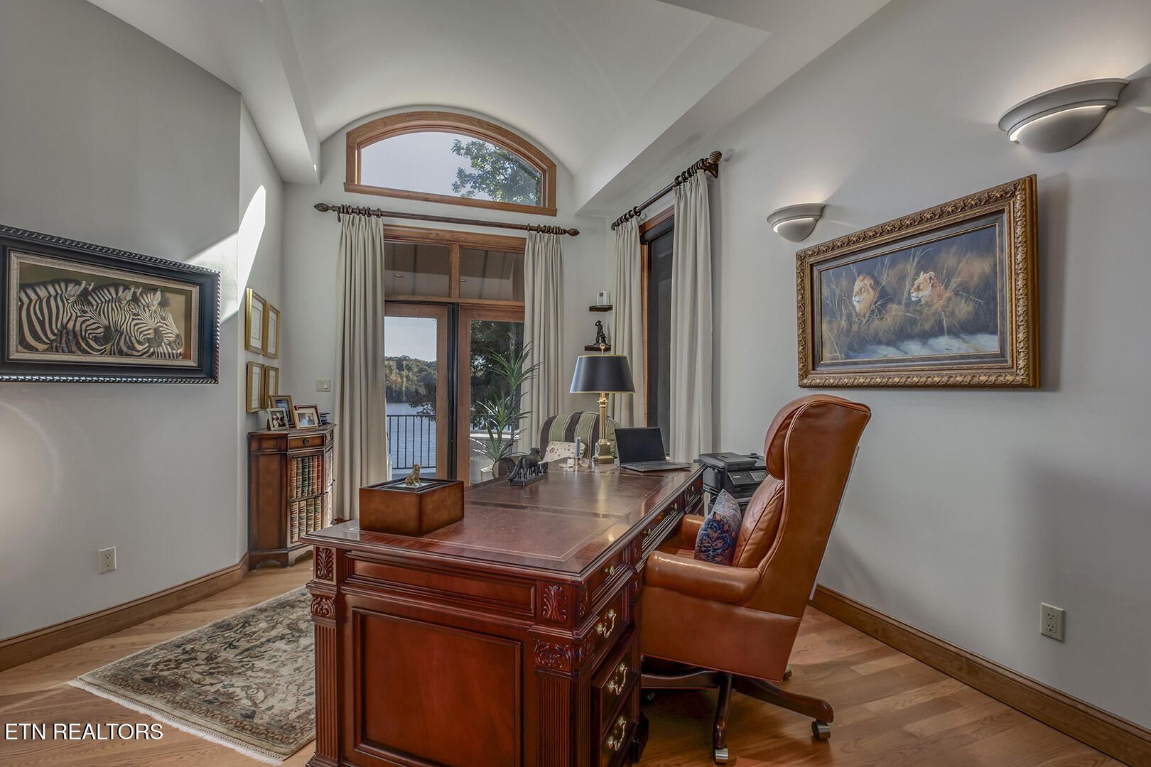 WATERFRONT with SPECTACULAR LAKE and MOUNTAIN VIEWS from almost every room. Enjoy morning coffee relaxing on the spacious deck overlooking the lake or hosting a gathering of friends as you take in the impressive views of the incredible tiered landscaping and a stone walkway leading to your PRIVATE DOCK on the main channel of Tellico Lake. This custom home will not disappoint from the open floor plan with high architectural ceiling in the living room, gold-leaf trey ceiling in the dining room, and a hearth room adjacent to the kitchen. The chef's kitchen is a show-stopper with plenty of room for entertaining and includes a Sub Zero panel refrigerator, custom Mouser cabinets, new GE Advantium CAFE French door oven and microwave, large walk-in pantry, and two sinks. Relax in the spacious Primary Bedroom overlooking the lake that boasts a cozy fireplace, trey ceiling, walk-in closet and large ensuite bath. An office/5th bedroom with an adjoining full bath round out the main level. The lower level has a full kitchen, living area with stone fireplace, and dining/game area. In addition there are two spacious guest bedrooms with jack-and-jill bath, a home gym, and garage space with a workshop. Fiber Optics is available through the local phone company (TDS) for fast internet service. Twenty-two updates have been made so ask the agent for a copy of the list. Just a few of the updates include: new high-end appliances, humidifier, HVAC, hardwood flooring, front door, landscaping and irrigation updates, shingles, and Trex decking. Country Club membership is OPTIONAL.
