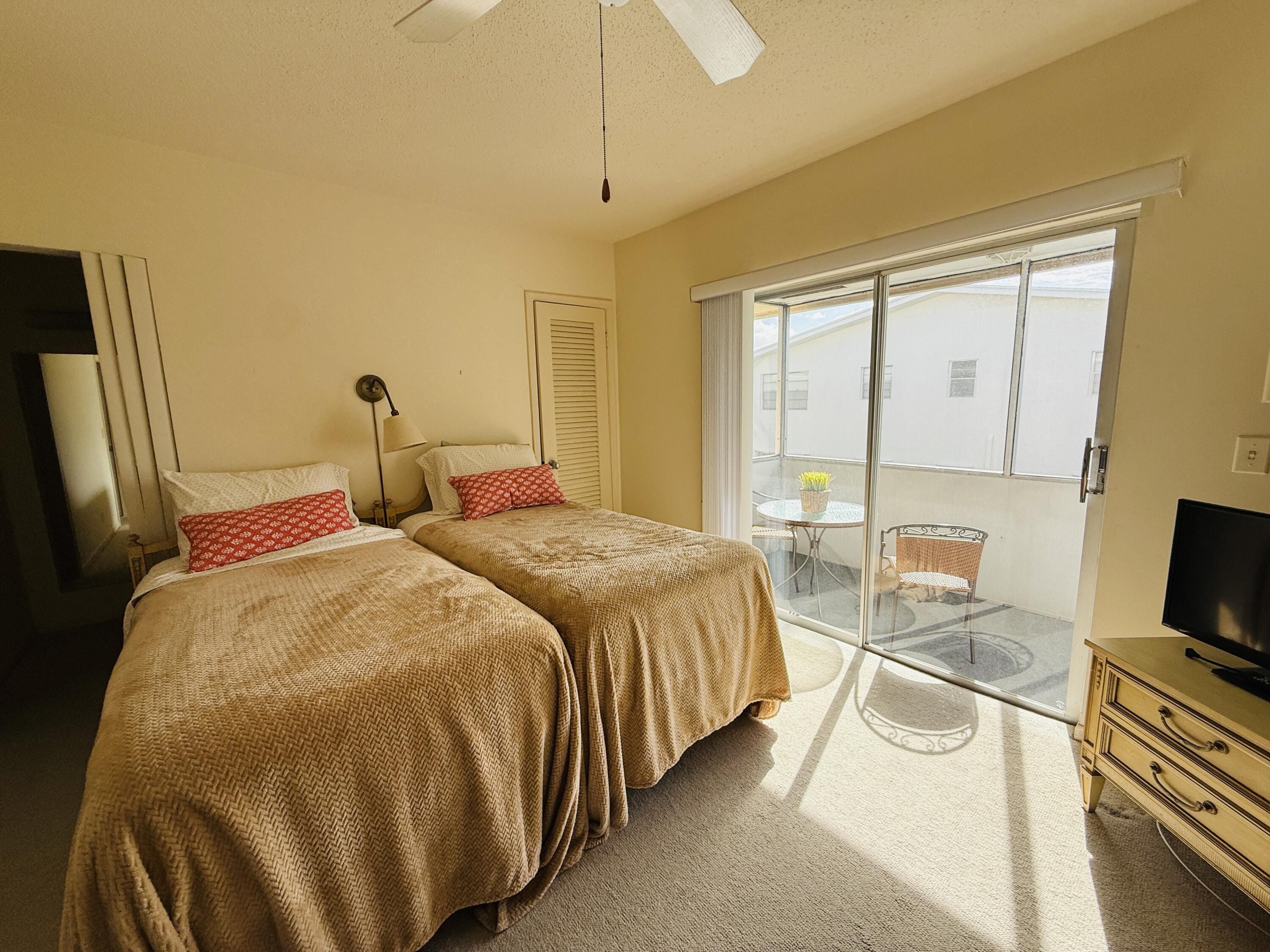 Sweet second-floor 55+ 1 BR 1.5BA furnished unit CONVENIENTLY LOCATED near Haverhill entrance & clubhouse! Well-maintained PET FRIENDLY building featuring NEWER ROOF, upgraded electrical room, & non-slip walkways for your safety. 1 assigned parking space & guest parking available. Basic cable included in monthly fee. Gated/24 hr. security. All assessments PAID IN FULL. Owner-occupied blg. (no renting). Courtesy bus provides transportation to local shopping centers, restaurants, and medical facilities. On-site pharmacy & beauty salon provide added convenience. Amenities include: a 92,000 SF clubhouse; state-of-the-art 1,221 seat theater; 14 swimming pools; fitness center offering aerobics, Yoga & Pilates; game rooms; bocce ball; billiards, pickleball; plus social & creative activities.