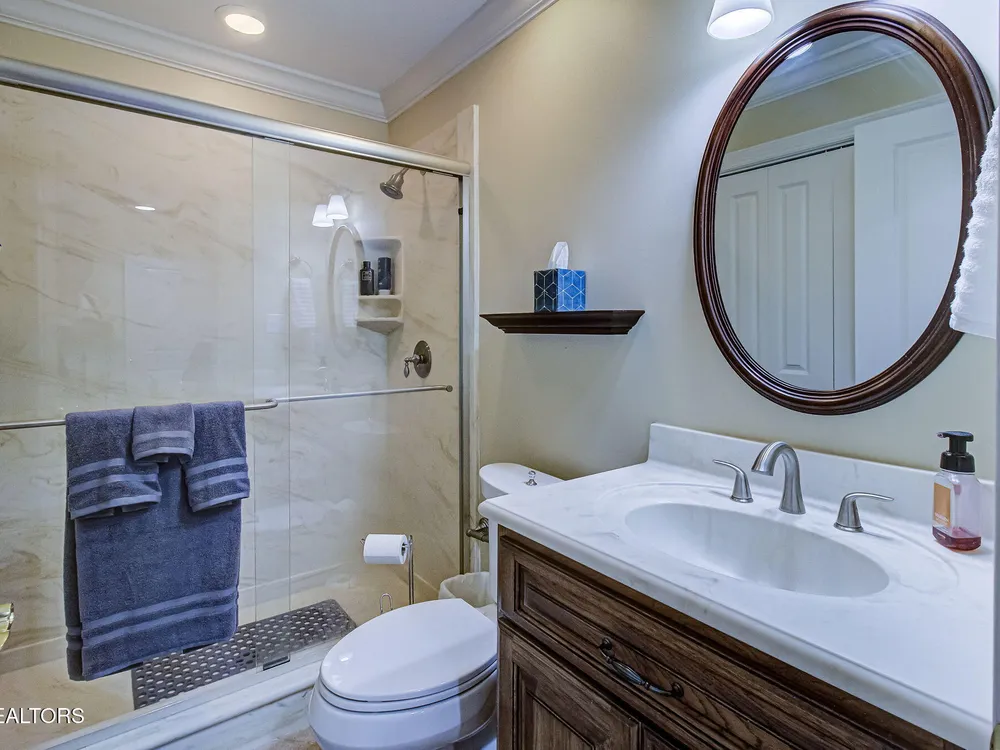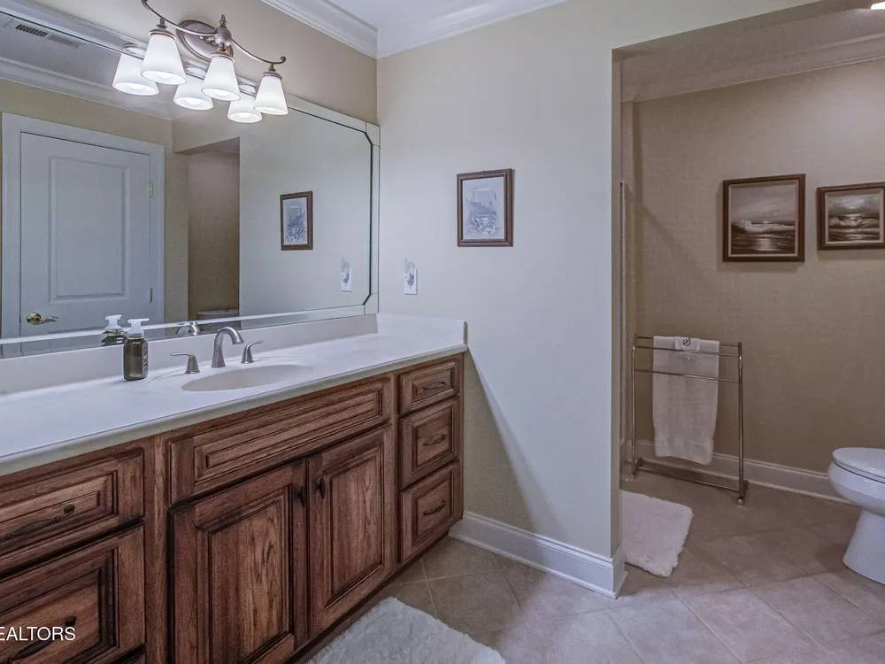 A Cut Above, Golf Front on a large, wooded lot. This home is special with higher end appliances, fixtures and finishes. The kitchen is granite countertops, under and above cabinet lighting, Large Island with storage and not one but two pantries, two wall ovens and gas cook top. Large dining area, opens to the Living Room with a gas log fireplace and a huge screened porch with tiled floor and open deck for grilling, plumbed for propane.. Primary Bedroom Suite is on the main with a large closet, two sink vanity, tub and walk in shower. Laundry with storage on the main the washer and dryer do convey with the house. The garage is very large 616 sq ft. The LL has 3 bedrooms and 2 baths one is ensuite and a duplicate screened room. Wet Bar plus additional storage which is heated and cooled.