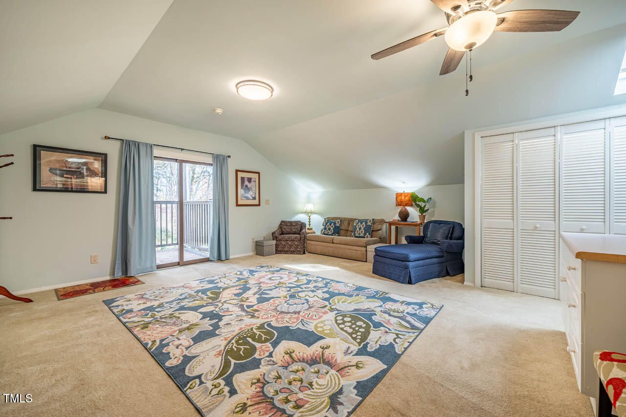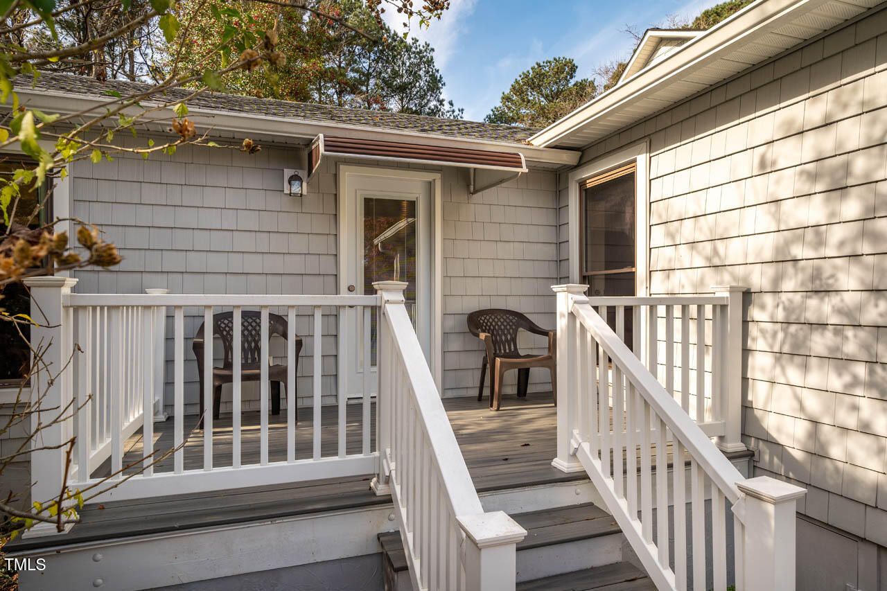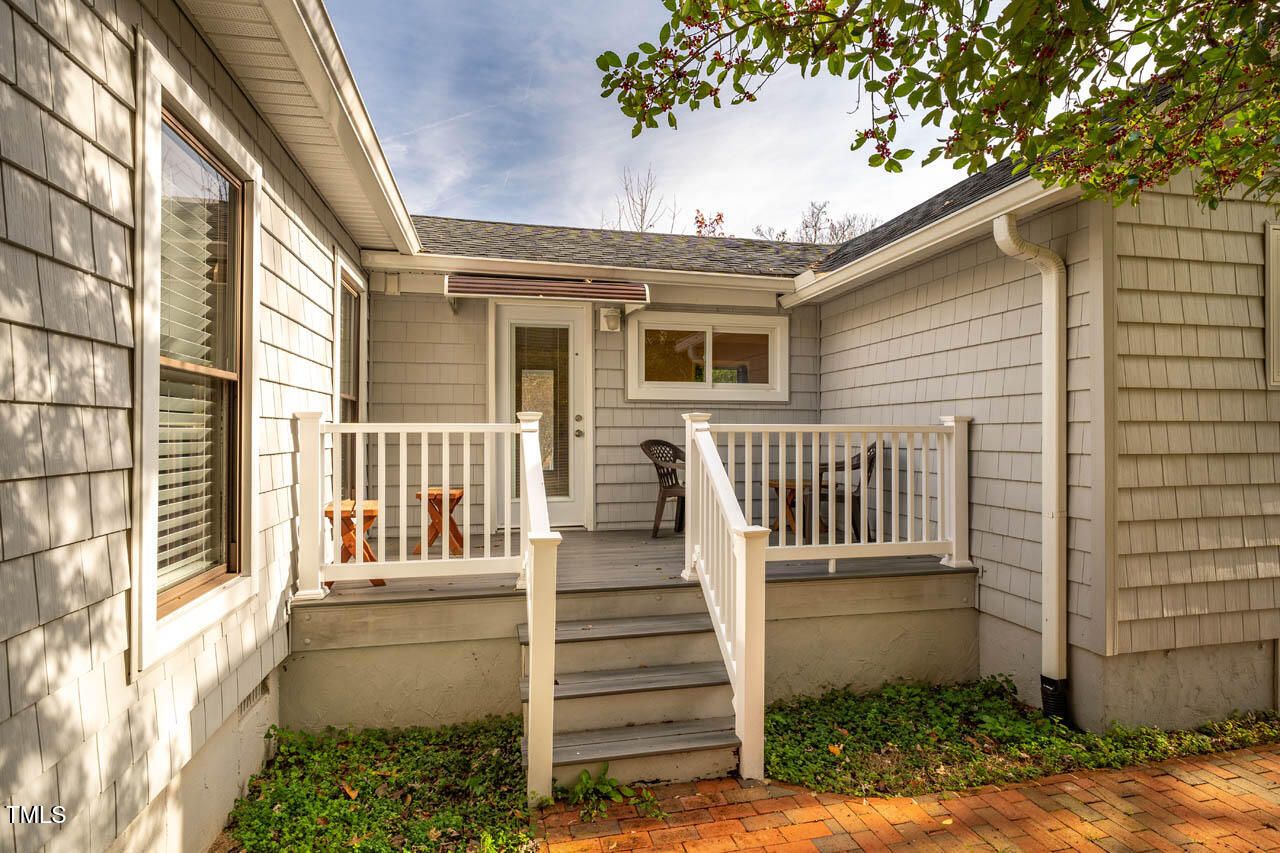 Welcome home to HISTORIC Weatherbend, located in the highly desirable Fearrington Village community. This beautifully remodeled and updated 3-bedroom, 4-full-bath home is situated on a private cul-de-sac and set on a stunning, level 0.86-acre lot that backs to peaceful wooded views. With a 2014 effective age, the home blends modern comfort with timeless design and offers an incredibly versatile layout perfect for a variety of lifestyles. One of the standout features of this property is the separate apartment located above the garage, complete with both private interior and exterior entrances. Whether used for guests, in-laws, caregivers, rental income, or personal space, this apartment adds exceptional flexibility to the home. Inside, you'll be greeted by soaring vaulted ceilings and beautiful architectural archways that add character and charm. The light-filled main level features hardwood and tile flooring throughout, along with two spacious primary bedroom suite options—one of which includes a zero-entry walk-in shower for added accessibility. The expansive, renovated kitchen includes stainless steel appliances, granite countertops, a large island with a breakfast bar, and plenty of space for gathering with friends and family. In addition to the main living areas, the home offers multiple flexible-use rooms perfect for offices, hobby spaces, craft rooms, or a potential fourth bedroom. There are also two separate laundry areas for added convenience. Storage will never be an issue, with numerous closets, built-in storage spaces, and additional storage areas inside and outside the garage. Outdoor living is just as inviting, with five covered and uncovered porches, decks, and private balconies to choose from. The expansive, level backyard offers plenty of room for play, relaxation, or simply enjoying the peaceful natural surroundings. Parking is plentiful, with a two-car garage, extra parking pad, and easy access via the quiet cul-de-sac. Located within easy walking distance of Fearrington Village's many amenities—including a community pool, clubhouse, 5-star dining, boutique shops, spa services, and the charming pastures with the iconic belted cows and goats—this home truly offers a one-of-a-kind lifestyle! It's also ideally positioned between Chapel Hill and Pittsboro, with a short commute to UNC and the Research Triangle Park. This thoughtfully updated home offers an exceptional multi-generational layout and is priced over $100,000 below appraisal, offering instant equity. Don't miss this rare opportunity to own a versatile, move-in ready home in one of the Triangle's most charming and established communities!