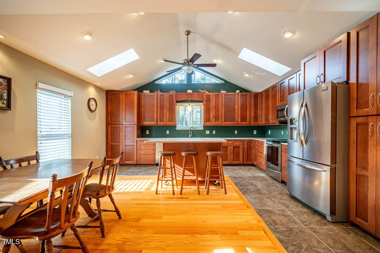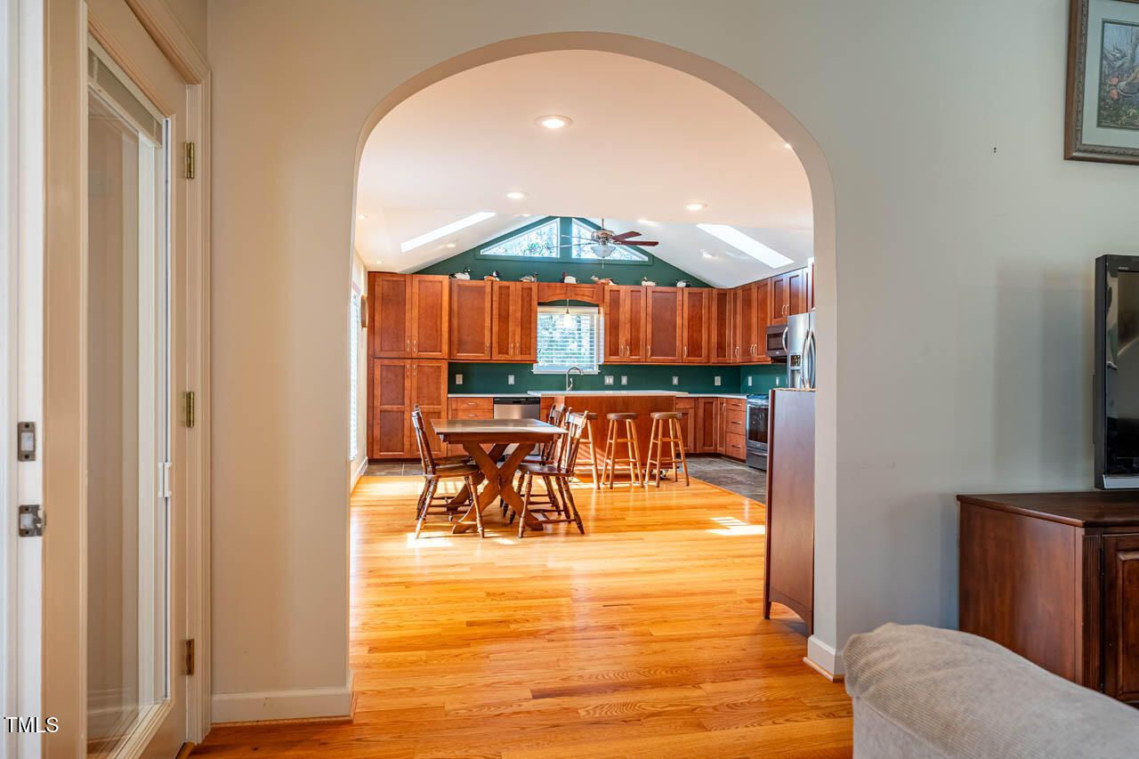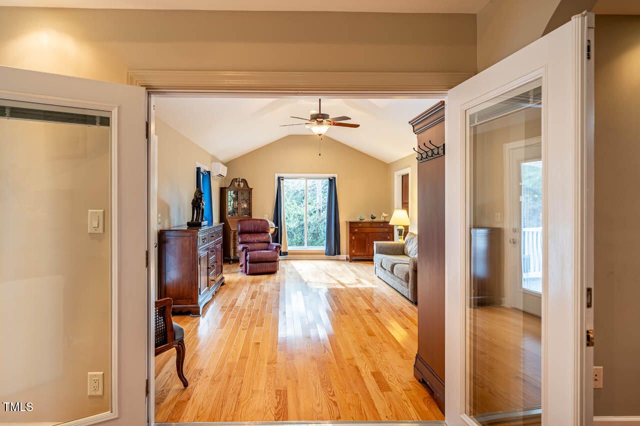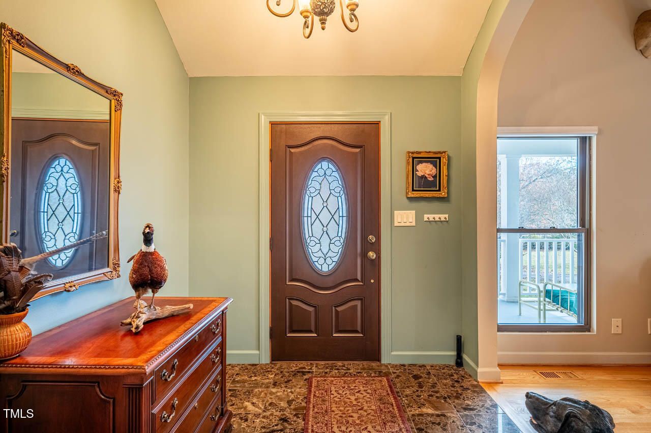 Welcome home to HISTORIC Weatherbend, located in the highly desirable Fearrington Village community. This beautifully remodeled and updated 3-bedroom, 4-full-bath home is situated on a private cul-de-sac and set on a stunning, level 0.86-acre lot that backs to peaceful wooded views. With a 2014 effective age, the home blends modern comfort with timeless design and offers an incredibly versatile layout perfect for a variety of lifestyles. One of the standout features of this property is the separate apartment located above the garage, complete with both private interior and exterior entrances. Whether used for guests, in-laws, caregivers, rental income, or personal space, this apartment adds exceptional flexibility to the home. Inside, you'll be greeted by soaring vaulted ceilings and beautiful architectural archways that add character and charm. The light-filled main level features hardwood and tile flooring throughout, along with two spacious primary bedroom suite options—one of which includes a zero-entry walk-in shower for added accessibility. The expansive, renovated kitchen includes stainless steel appliances, granite countertops, a large island with a breakfast bar, and plenty of space for gathering with friends and family. In addition to the main living areas, the home offers multiple flexible-use rooms perfect for offices, hobby spaces, craft rooms, or a potential fourth bedroom. There are also two separate laundry areas for added convenience. Storage will never be an issue, with numerous closets, built-in storage spaces, and additional storage areas inside and outside the garage. Outdoor living is just as inviting, with five covered and uncovered porches, decks, and private balconies to choose from. The expansive, level backyard offers plenty of room for play, relaxation, or simply enjoying the peaceful natural surroundings. Parking is plentiful, with a two-car garage, extra parking pad, and easy access via the quiet cul-de-sac. Located within easy walking distance of Fearrington Village's many amenities—including a community pool, clubhouse, 5-star dining, boutique shops, spa services, and the charming pastures with the iconic belted cows and goats—this home truly offers a one-of-a-kind lifestyle! It's also ideally positioned between Chapel Hill and Pittsboro, with a short commute to UNC and the Research Triangle Park. This thoughtfully updated home offers an exceptional multi-generational layout and is priced over $100,000 below appraisal, offering instant equity. Don't miss this rare opportunity to own a versatile, move-in ready home in one of the Triangle's most charming and established communities!