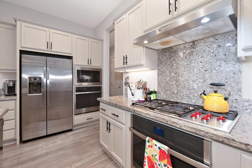 - Gas Cooktop, Built-In Refrigerator, Range Hood, Ice Maker, Dishwasher, Microwave, Double Oven