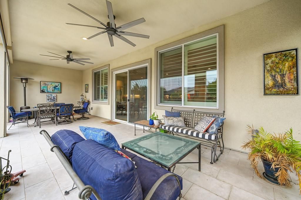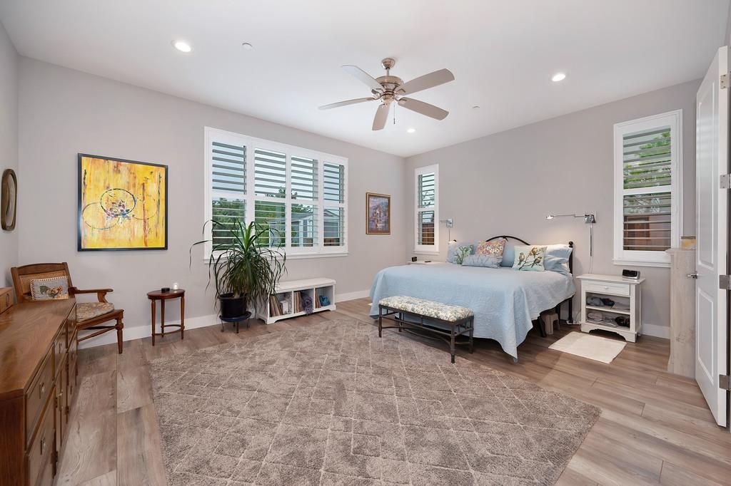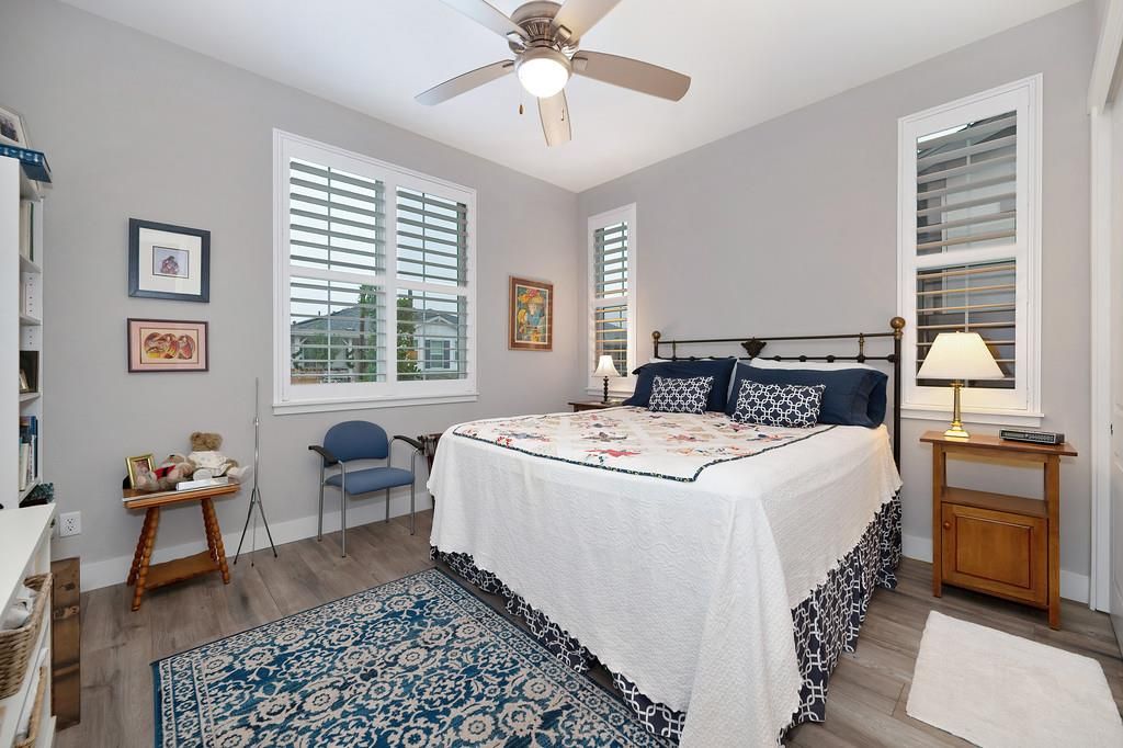 Presenting a gorgeous, expansive single story home in a vibrant 55+ community designed for connection, comfort, and everyday enjoyment. Residents here enjoy a resort inspired lifestyle with a sparkling swimming pool, dog park, bocce ball courts, BBQ areas, an inviting clubhouse, and a full calendar of organized activities and classes. Inside, this stunning 2,703 sq ft home immediately stands apart with thoughtful upgrades rarely found in the neighborhood. Plantation shutters and beautiful LVP flooring flow throughout, creating a warm, elevated feel. The home office is exceptionally designed with custom luxury doors, built in cabinetry, and a smart Murphy bed, easily transforming into a third sleeping space when needed. The kitchen is truly the heart of the home, featuring quartz countertops, a Wolf range, double ovens, an expansive island, and abundant prep and serving space, ideal for both everyday living and entertaining. Just around the corner, a custom designed pantry and laundry area provide impressive storage and organization, with the added convenience of a private door directly from the primary suite into the laundry room. Each bedroom enjoys its own bath, offering comfort and privacy throughout. The primary living spaces open to a huge covered back porch with automatic shades, creating an incredible extension of indoor outdoor living. The professionally landscaped backyard is a peaceful retreat with a garden area, sunny lounging space, and a soothing fountain, an ideal setting to relax, unwind, and enjoy the lifestyle this community is known for. This is not just a home, it's a beautifully curated living experience.