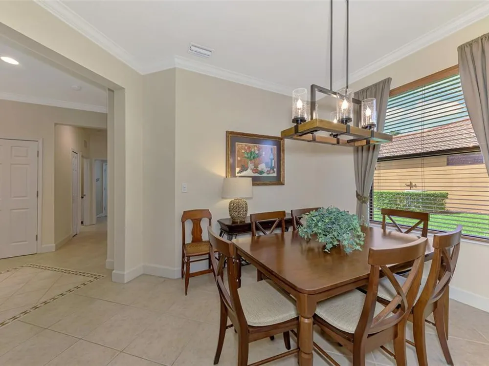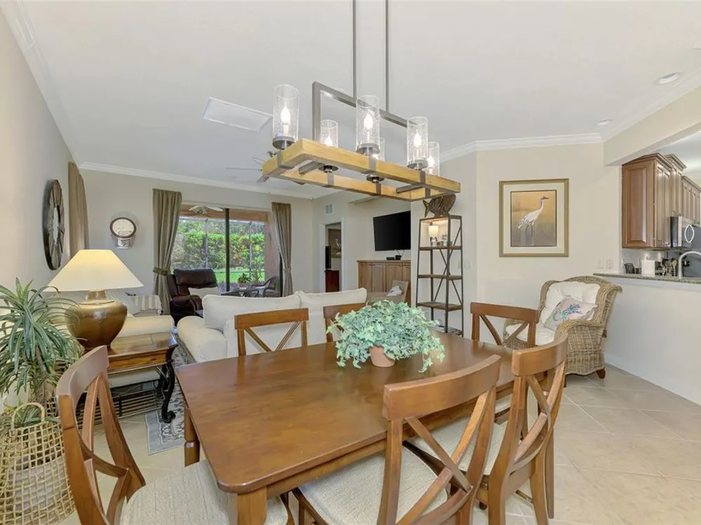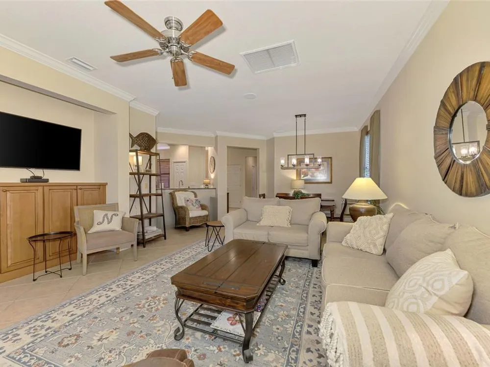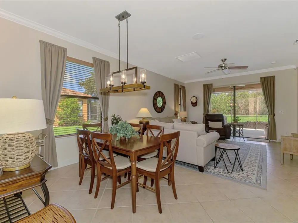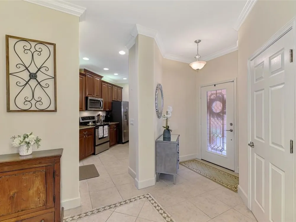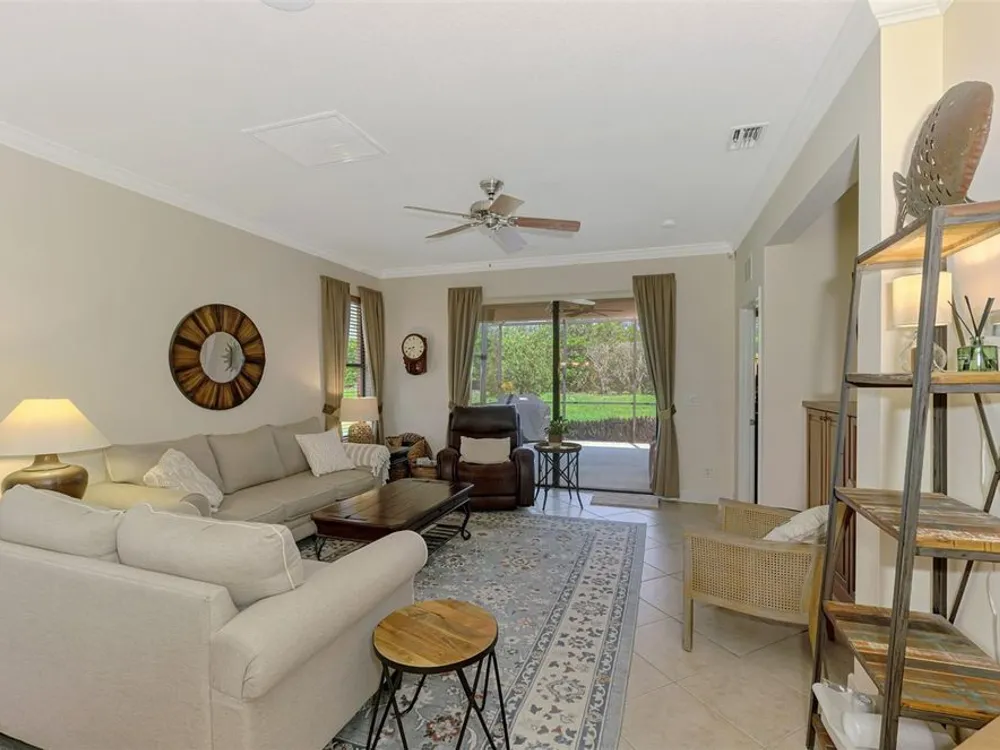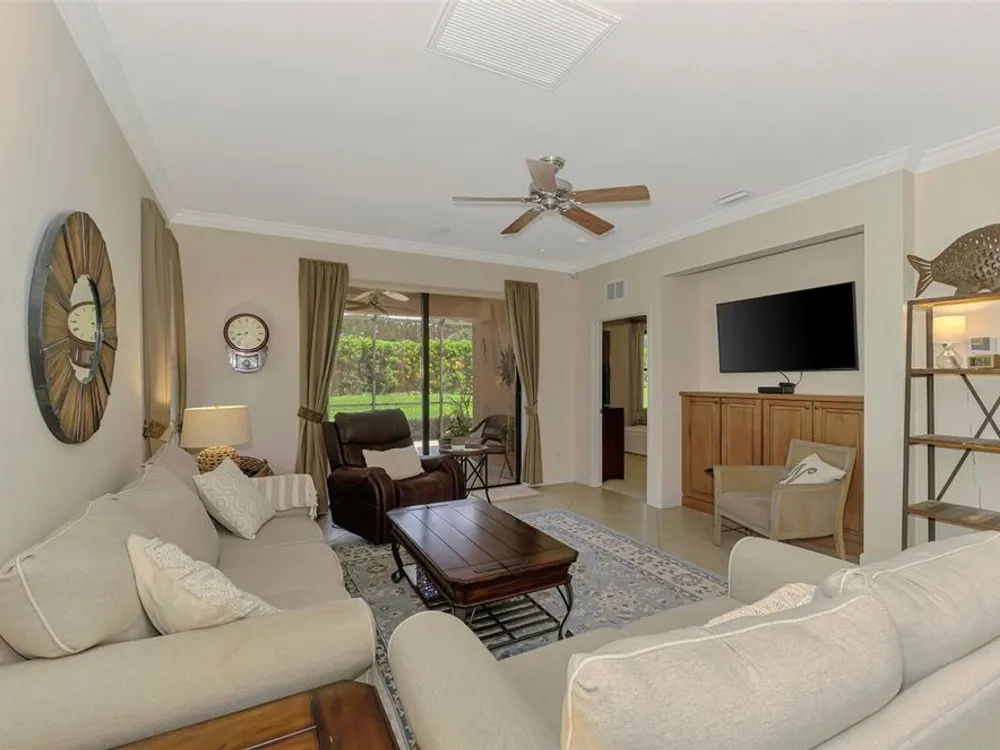 Discover resort-style living in the vibrant 55+ community of Venetian Falls with this stunning former model villa at 1350 Maseno Dr, Venice, FL. This meticulously maintained 2-bedroom, 2-bathroom end-unit villa, spanning 1,574 square feet, offers an open floor plan, modern upgrades, and an enviable lifestyle in one of Venice’s premier active adult communities. Step inside to a bright and airy interior, featuring crown molding, a spacious combo living and dining room, and an open-concept layout perfect for entertaining. The gourmet kitchen shines with updated stainless steel appliances, sleek granite countertops, and ample cabinetry, ideal for culinary enthusiasts. The adjacent office/den provides a versatile space for work, hobbies, or relaxation. The primary suite is a serene retreat with generous closet space and a luxurious en-suite bathroom, while the second bedroom and full bathroom provide comfort for guests or family. A separate laundry room adds convenience, and the extended lanai invites you to unwind with tranquil views of the lush surroundings—perfect for morning coffee or evening gatherings. This end-unit villa boasts a 2-car garage with pedestrian door access, ensuring ease and ample storage. As a former model home, it exudes quality craftsmanship and thoughtful design details throughout. Living in Venetian Falls means embracing an active, social lifestyle. Enjoy the resort-style pool, resistance pool, state-of-the-art workout facility with showers and lockers, bocce courts, and a putting area—all just steps from your door. Located in the heart of Venice, you’re minutes from pristine Gulf beaches, downtown shopping, dining, and cultural attractions. Move-in ready and brimming with upgrades, this villa is your gateway to carefree, luxurious living in a vibrant 55+ community. Don’t miss this opportunity to call 1350 Maseno Dr home!