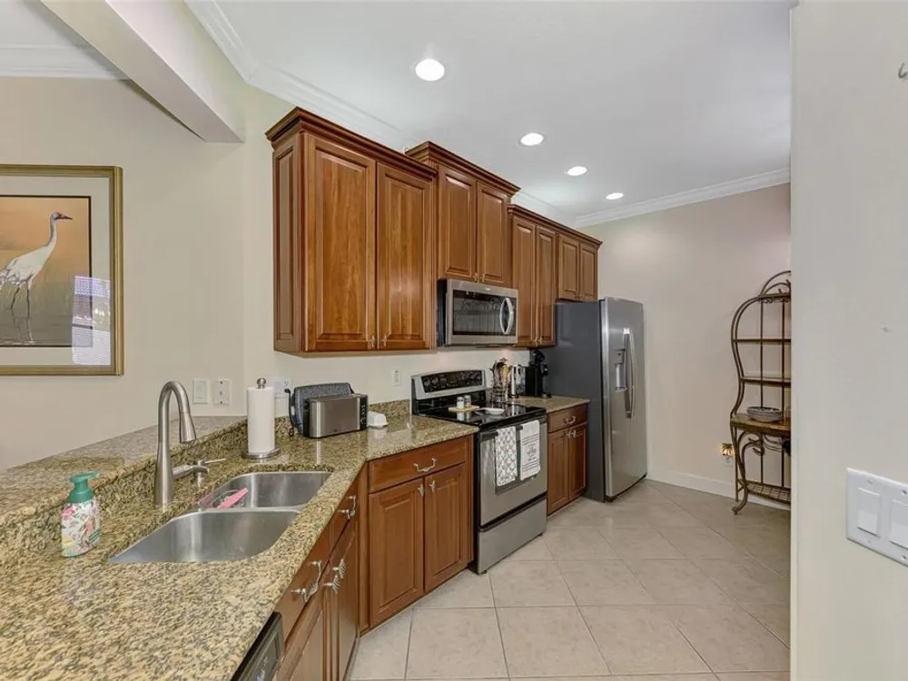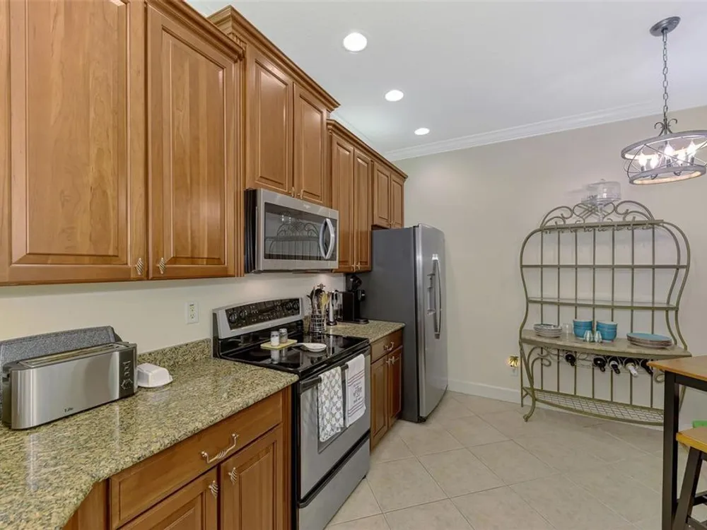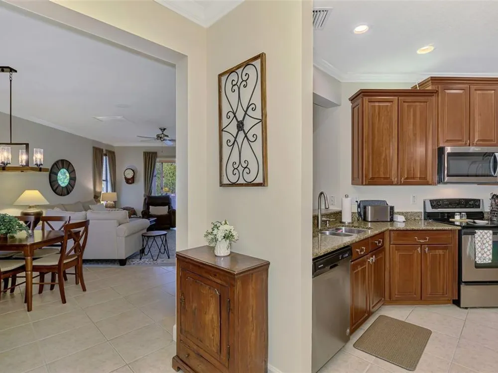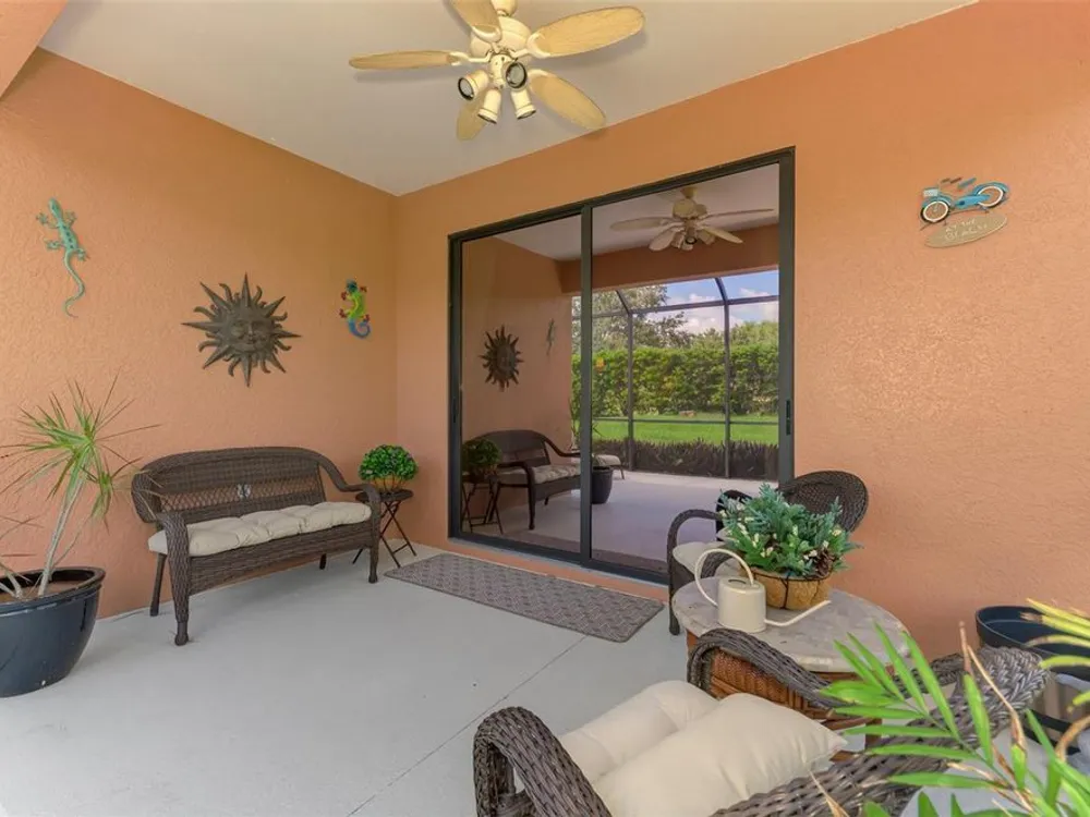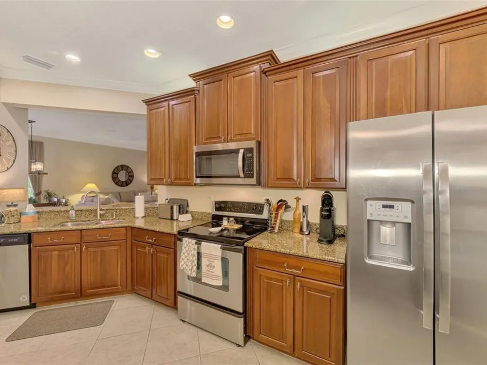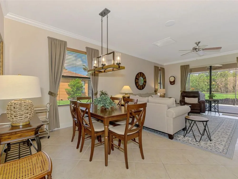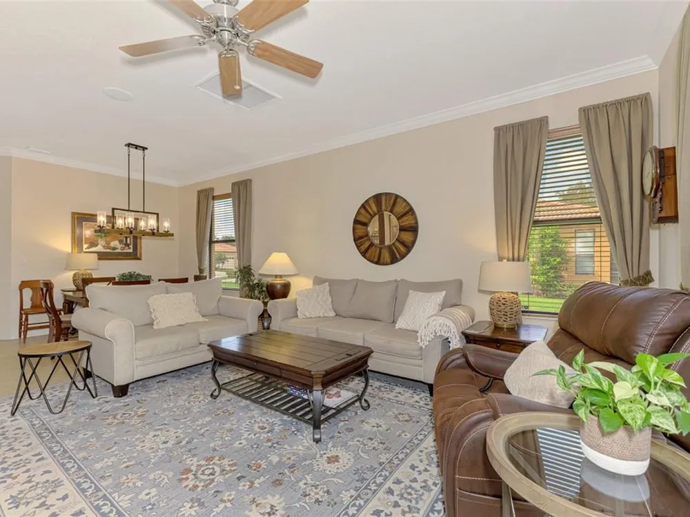 Discover resort-style living in the vibrant 55+ community of Venetian Falls with this stunning former model villa at 1350 Maseno Dr, Venice, FL. This meticulously maintained 2-bedroom, 2-bathroom end-unit villa, spanning 1,574 square feet, offers an open floor plan, modern upgrades, and an enviable lifestyle in one of Venice’s premier active adult communities. Step inside to a bright and airy interior, featuring crown molding, a spacious combo living and dining room, and an open-concept layout perfect for entertaining. The gourmet kitchen shines with updated stainless steel appliances, sleek granite countertops, and ample cabinetry, ideal for culinary enthusiasts. The adjacent office/den provides a versatile space for work, hobbies, or relaxation. The primary suite is a serene retreat with generous closet space and a luxurious en-suite bathroom, while the second bedroom and full bathroom provide comfort for guests or family. A separate laundry room adds convenience, and the extended lanai invites you to unwind with tranquil views of the lush surroundings—perfect for morning coffee or evening gatherings. This end-unit villa boasts a 2-car garage with pedestrian door access, ensuring ease and ample storage. As a former model home, it exudes quality craftsmanship and thoughtful design details throughout. Living in Venetian Falls means embracing an active, social lifestyle. Enjoy the resort-style pool, resistance pool, state-of-the-art workout facility with showers and lockers, bocce courts, and a putting area—all just steps from your door. Located in the heart of Venice, you’re minutes from pristine Gulf beaches, downtown shopping, dining, and cultural attractions. Move-in ready and brimming with upgrades, this villa is your gateway to carefree, luxurious living in a vibrant 55+ community. Don’t miss this opportunity to call 1350 Maseno Dr home!