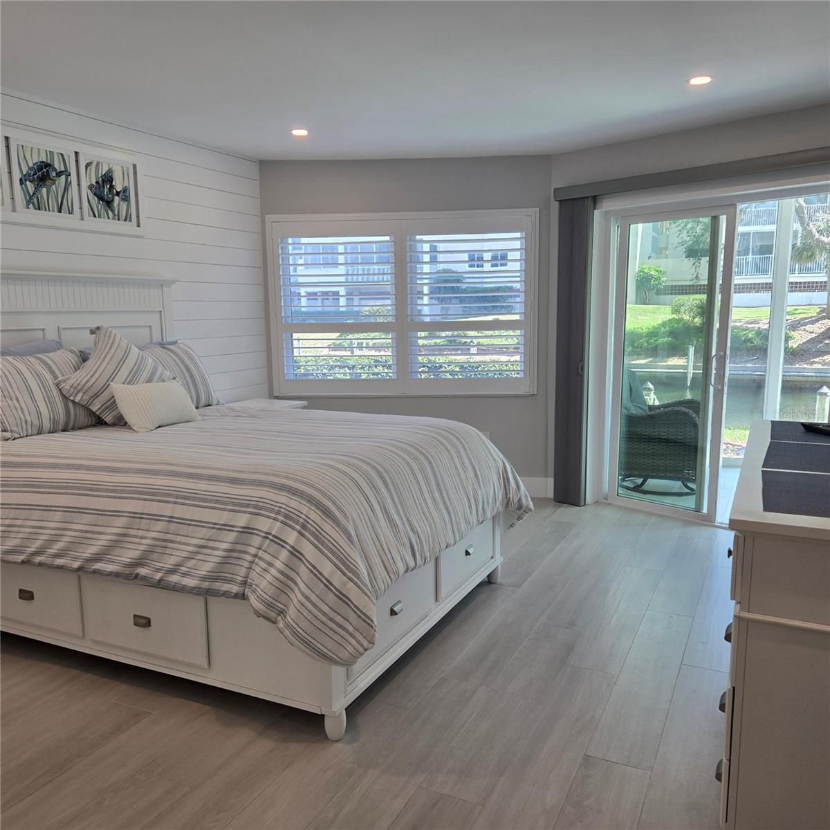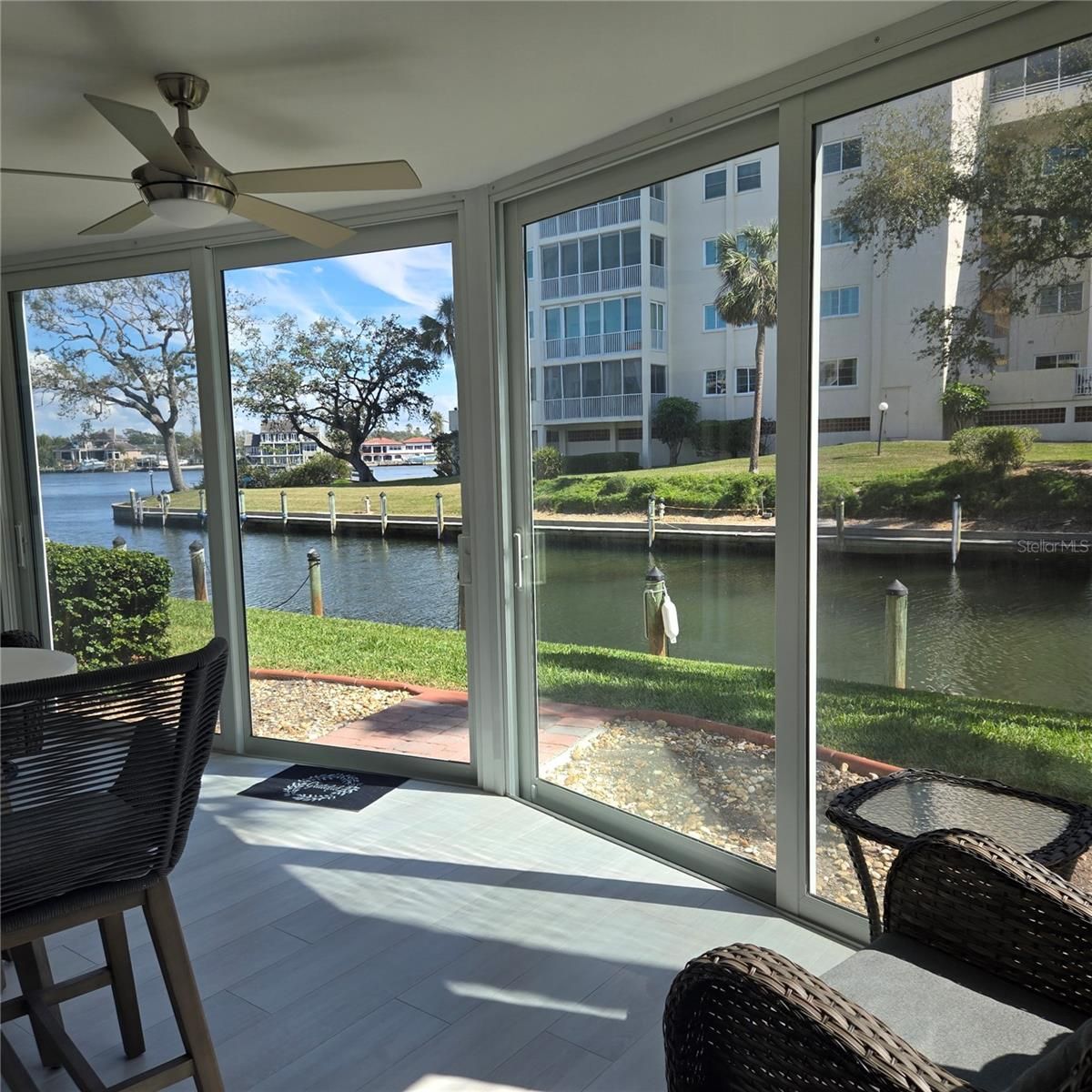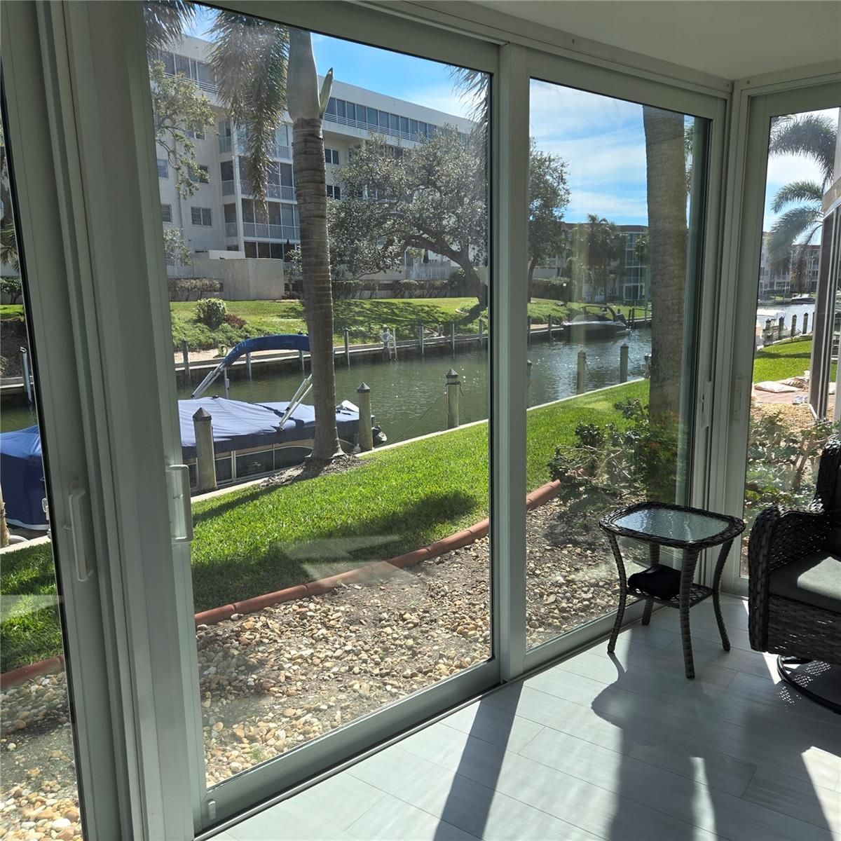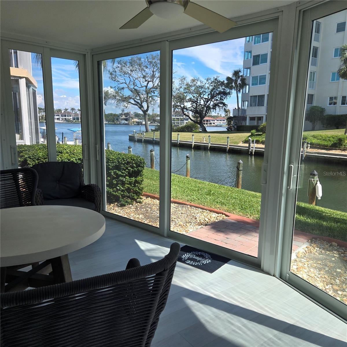 YOUR BOAT STEPS AWAY! Have your Private boat outside your home for under $1000.00 a year!! PARADISE AWAITS YOU! FIRST FLOOR WALKOUT! ALL WALLS DOWN! MODERN NEW OPEN FLOOR PLAN WITH EXQUISTE FINISHES! Gorgeous Renovated Condo with a Canal FRONTAGE Intracoastal Waterway View on Siesta Key. THIS STUNNING CONDO WAS TOTALLY RENOVATED BEFORE THE STORM FROM THE WALLS OUT! ALL NEW PLUMBING AND NEW STACKS HAVE BEEN REPLACED! THE ELECTICAL AND PLUMBING EVEN UNDER THE FLOORS ARE BRAND NEW! DECORATED WITH DESIGNER STYLE FOR HERSELF! SOLD AS YOU SEE IT! Hurricane Impact Windows, including sliders in lanai! Tankless Hot Water Heater, never worry about water leakage or replacement, easy worry free hot water!All NEW Appliances! Work from home on your walk-out lanai or watch the deep water boats on the Intracoastal Waterway while sipping your coffee watching the sunrise. Incredible View of the Intracoastal Waterway, Beautiful two bedroom, two bath spacious first floor walk-out condo with lots of natural light. Completely remodeled and fully renovated in March 2023! One month minimum rental, Fifty-five+ community. Crescent Arms BEACH access to Siesta Key Beach directly across the street, the Number One Beach in the Country! Heated Outdoor Pool and Spa, Sauna, Modern Clubhouse, Activities all Season, Patio Seating Area on the canal and our own Siesta Harbor Fishing Pier. Boat slips available by applying to the office. The trolley stop is at the entrance of the complex. Walk to restaurants and bars, easy on and off the key! You Deserve Paradise! Easy Carefree Living just move in stunning finishes, This is your Paradise!