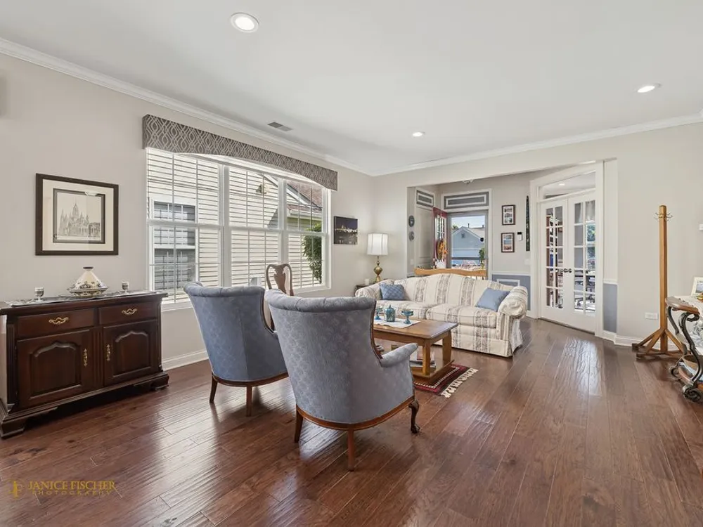 Experience modern living in this beautifully updated Brookfield residence. This spacious home offers 2 bedrooms, 2 baths, a versatile den, and distinct living, dining, and family rooms. Enjoy decorator-selected colors and stunning hickory hardwood floors throughout. The fenced-in yard provides a private oasis. The chef's dream kitchen boasts newer GE Cafe appliances, elegant 42" cherry cabinets, granite countertops, a convenient breakfast bar, and a center island with extra storage and pull-out drawers. Thoughtful details like under-cabinet lighting and crown molding complete this culinary haven. An extended garage offers additional space. The master bedroom suite is a serene retreat with fresh paint, newer carpet, and a charming bay window. Its luxurious en-suite bathroom features dual vanities, a comfortable seating area, a soaking tub, a large shower, and a private water closet. A huge walk-in closet provides ample storage. Recent upgrades include a newer roof, furnace motor, and water heater. This active 55+ community offers an abundance of amenities, including a refreshing pool, state-of-the-art fitness center, scenic walking trails, and a vibrant clubhouse. Discover all the special features this home and community have to offer-please see the dedicated sheet in the home.