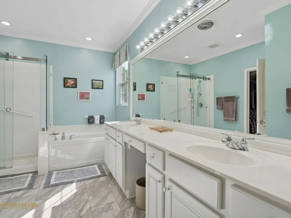 - Bedroom on Main Level, Full Bathroom, Built-in Features, Walk-In Closet(s), Den, Separate Shower, Dual Sinks, Soaking Tub, Separate/Formal Dining Room