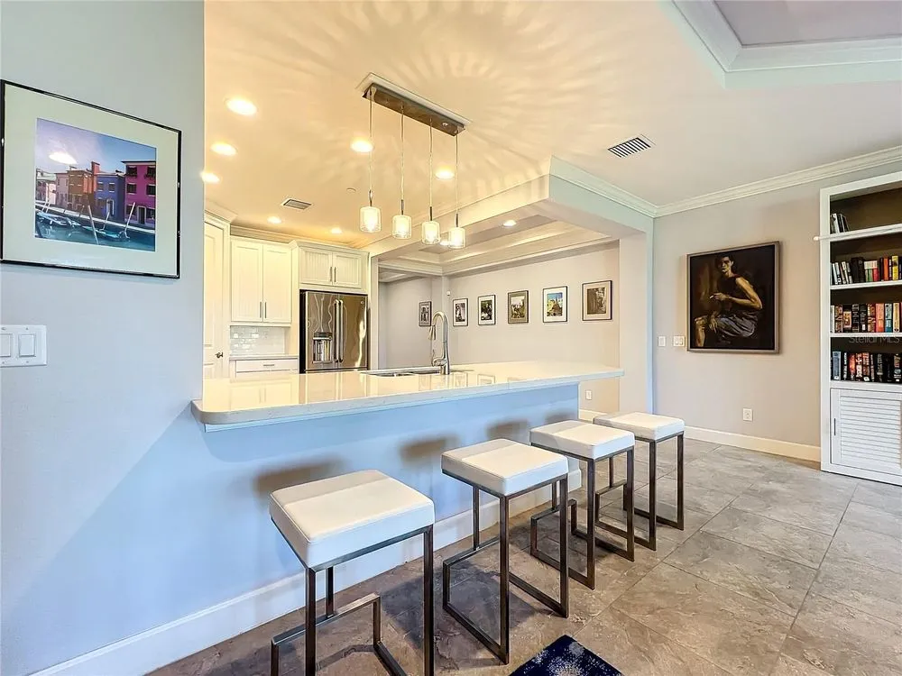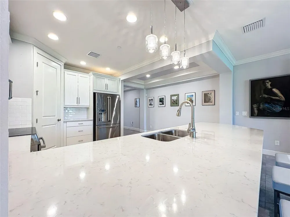 - Built-in Features, Ceiling Fan(s), Crown Molding, Kitchen/Family Room Combo, Open Floorplan, In-Wall Pest Control, Solid Surface Counters, Tray Ceiling(s), Window Treatments