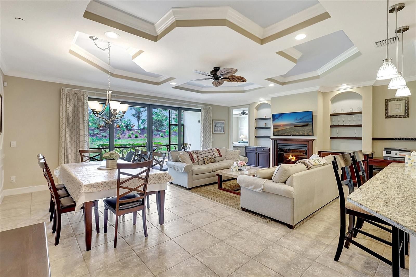 You may have seen communities with nice amenities before but this community takes luxury amenities to the next level with a Bahama Tiki Bar & restaurant, 2 fitness centers, tennis and pickleball courts, a new Culinary Center, dog park, 3 community pools and much more! This Vitale VII Coach home with distinctive attention to details features an open floor plan that's perfect for entertaining. This is a NON-GOLF bundled condo with an attached one car garage. The flexible bedroom arrangement offers two master suites which allows for privacy for guests. You will be awed by the architectural detailing with crown moldings, tray ceilings, decorative ceiling inlays, and custom touches that make the home truly feel unique. The kitchen features granite countertops, stainless steel appliances, rich 42-inch wood cabinets, walk-in pantry and an oversized breakfast bar, a gourmet chef's dream. Four large, fully pocketing, impact resistant sliding glass doors open to reveal a paver lanai to enjoy your meals alfresco! The quiet and private view of the maturely planted landscape is a perfect way to end each day. If you've been looking for a condo that feels like a single-family home, look no further. This is it! The gated community of Esplanade Golf and Country Club features trails & gazebos traverse 600 acres among lakes, nature preserves & wetlands, all just minutes to I-75 for an easy commute north or south.