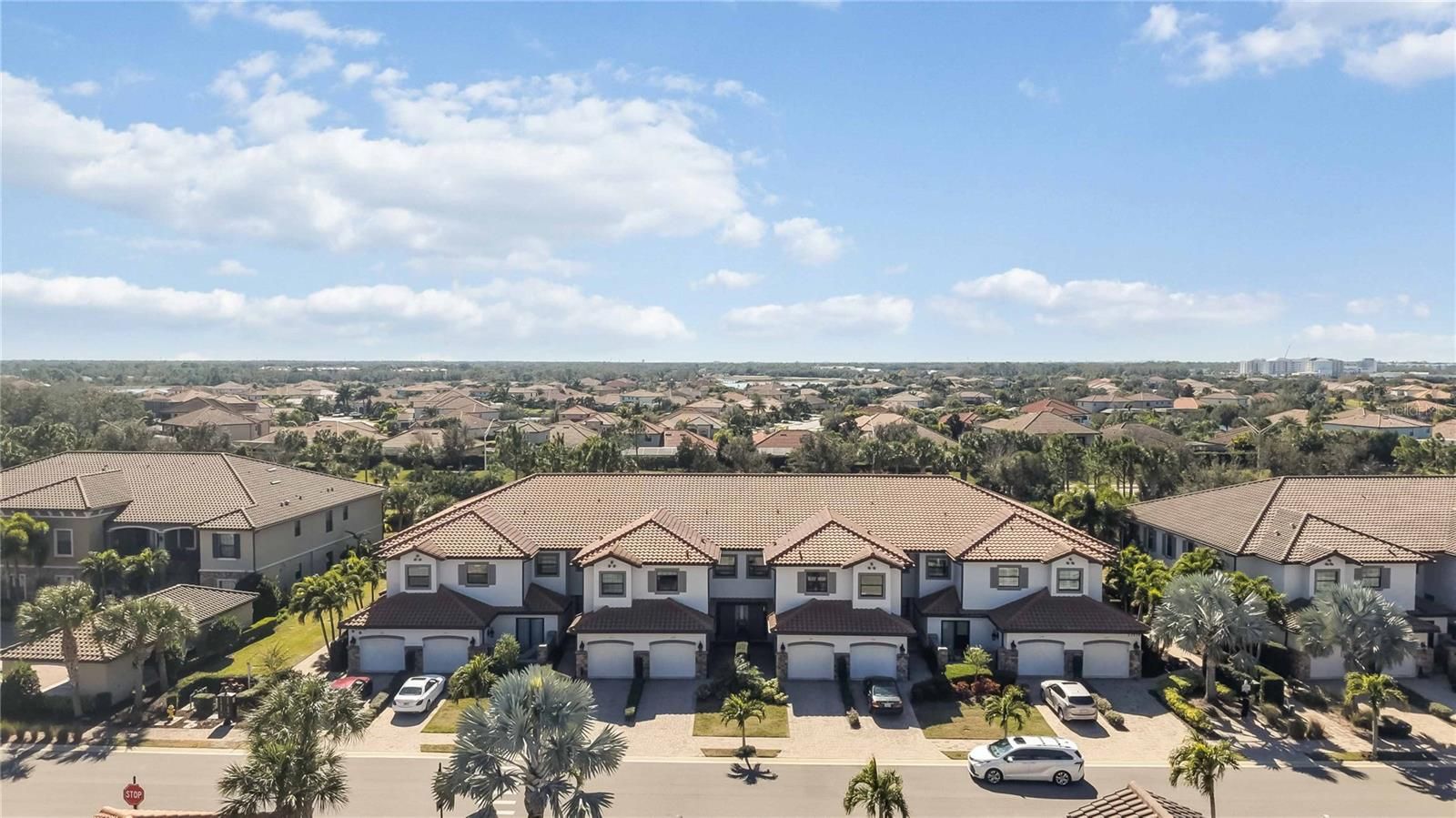 TURNKEY (all furnishings and appliances) end-unit luxury coach home offering maintenance-free living, 2,184 sq ft, 3 bedrooms, and 3 full baths—with no mandatory golf membership. Located in the upscale, gated Esplanade at Lakewood Ranch, this residence lives like a single-family home while delivering the convenience of condo living. The Esplanade community offers world-class golf, tennis, and resort-style amenities. This home features 90 degree corner sliding doors, flooding the space with natural light. The open floor plan showcases a spacious great room with custom built-ins, a cozy fireplace, and soaring 12-foot tray ceilings. Large sliders open to a private screened lanai, perfect for relaxing or entertaining. The chef’s kitchen is designed to impress, featuring solid-wood Blanc cabinetry, an oversized granite island with breakfast bar and added storage, and stainless-steel appliances. The owner’s suite is a serene retreat with room for a king-size bed and a spa-inspired ensuite bath offering dual granite vanities, an oversized walk-in shower with multiple heads and rain shower, and a generous walk-in closet. A split-bedroom layout provides privacy, with one guest bedroom offering its own ensuite bath—ideal for hosting. Additional highlights include three full bathrooms, a laundry room with cabinetry and sink, and an attached oversized one-car garage with extra storage. While golf membership is optional, residents enjoy access to Esplanade’s exceptional amenities: a championship golf course, elegant clubhouse with dining overlooking the 18th green, resort-style pools and spas, full-service salon, Bahama bar, state-of-the-art fitness and wellness center, tennis and pickleball courts, dog parks, social clubs, and more. Situated in Lakewood Ranch, the number one master planned community for all ages,this home offers luxury living just minutes from shopping, dining, entertainment, and Gulf Coast beaches.