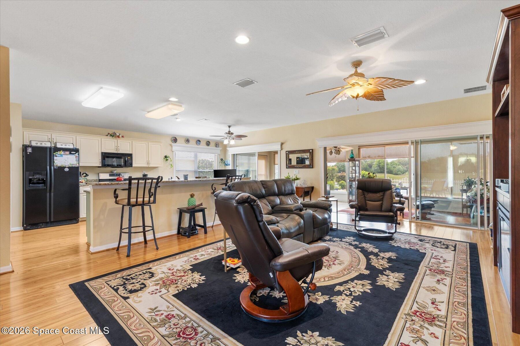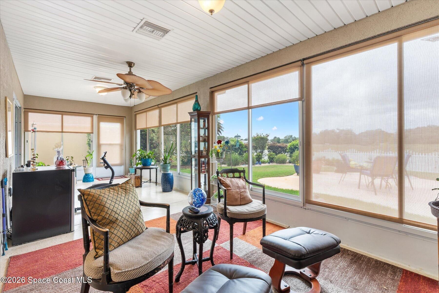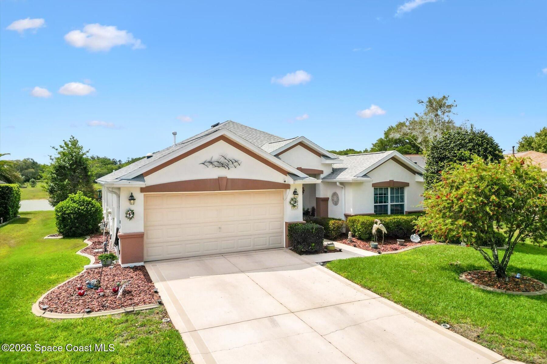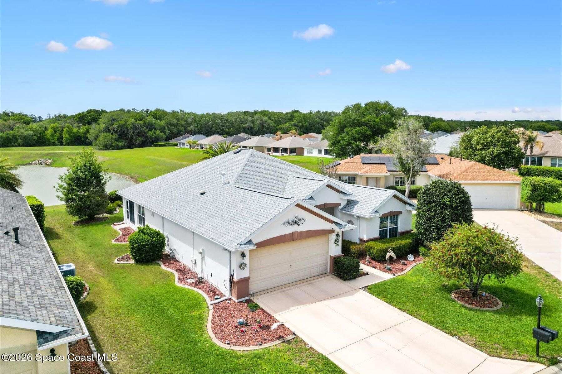 Beautiful Elkridge Located in Spruce Creek Country & Golf Club. This 3 Bedroom/2 Bathroom Home Has an Open Floorplan. Open Living Area w/ Rich Wood Entertainment Center Featuring Fireplace & Neutral Luxury Flooring . Remodeled Kitchen w/ Two-Tone Real Wood Cabinetry, Granite Countertops, Island & Pantry. Spacious Master Suite w/ Walk-In Closet, Double Sink Vanity, Tiled Shower & Glass Door. Split Layout w/ Guest Bedroom & Third Room Is Being Utilized as an Office with Built-In Storage! The Double & Triple Sliders Open to the 10x28 Florida Room. Gorgeous Water Views from the Concrete Patio & Lush Landscaping. Newer Roof Replaced in 2023, HVAC 2019 Handler/2023 Compressor, Newer Plumbing & Fixtures. This Gated Community Features Tennis Courts, Pickle Ball, Fitness Center, Multiple Pools, Golf Club Membership & Planned Activities!