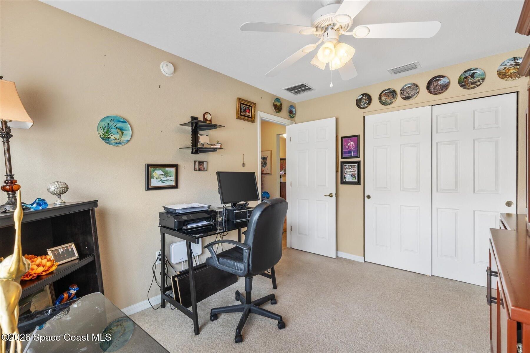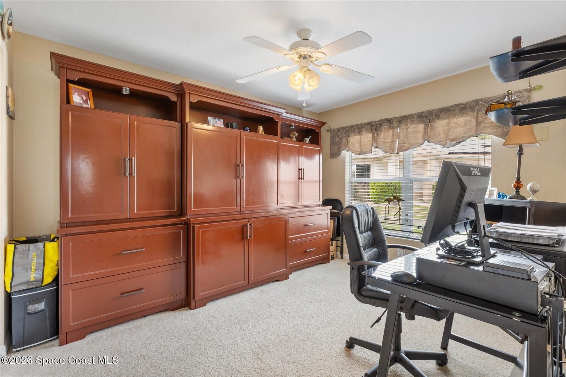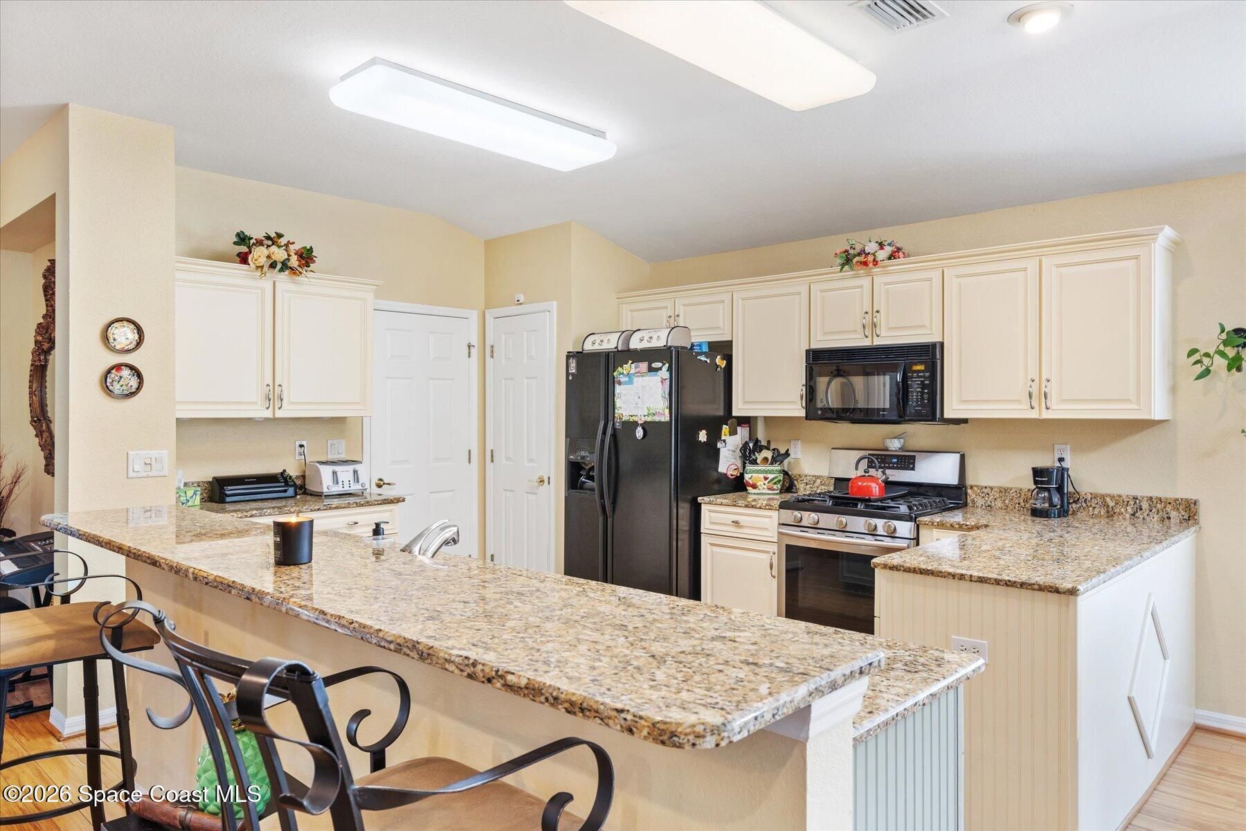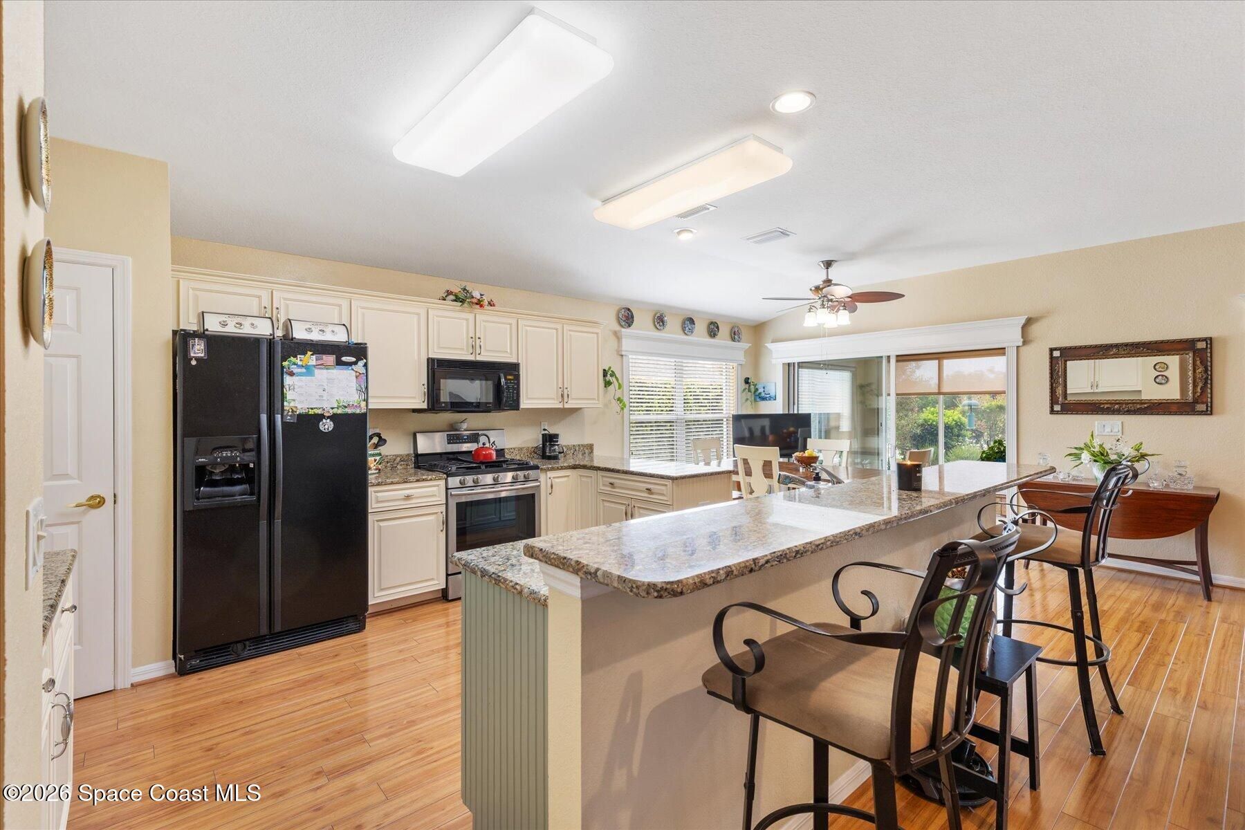 Beautiful Elkridge Located in Spruce Creek Country & Golf Club. This 3 Bedroom/2 Bathroom Home Has an Open Floorplan. Open Living Area w/ Rich Wood Entertainment Center Featuring Fireplace & Neutral Luxury Flooring . Remodeled Kitchen w/ Two-Tone Real Wood Cabinetry, Granite Countertops, Island & Pantry. Spacious Master Suite w/ Walk-In Closet, Double Sink Vanity, Tiled Shower & Glass Door. Split Layout w/ Guest Bedroom & Third Room Is Being Utilized as an Office with Built-In Storage! The Double & Triple Sliders Open to the 10x28 Florida Room. Gorgeous Water Views from the Concrete Patio & Lush Landscaping. Newer Roof Replaced in 2023, HVAC 2019 Handler/2023 Compressor, Newer Plumbing & Fixtures. This Gated Community Features Tennis Courts, Pickle Ball, Fitness Center, Multiple Pools, Golf Club Membership & Planned Activities!