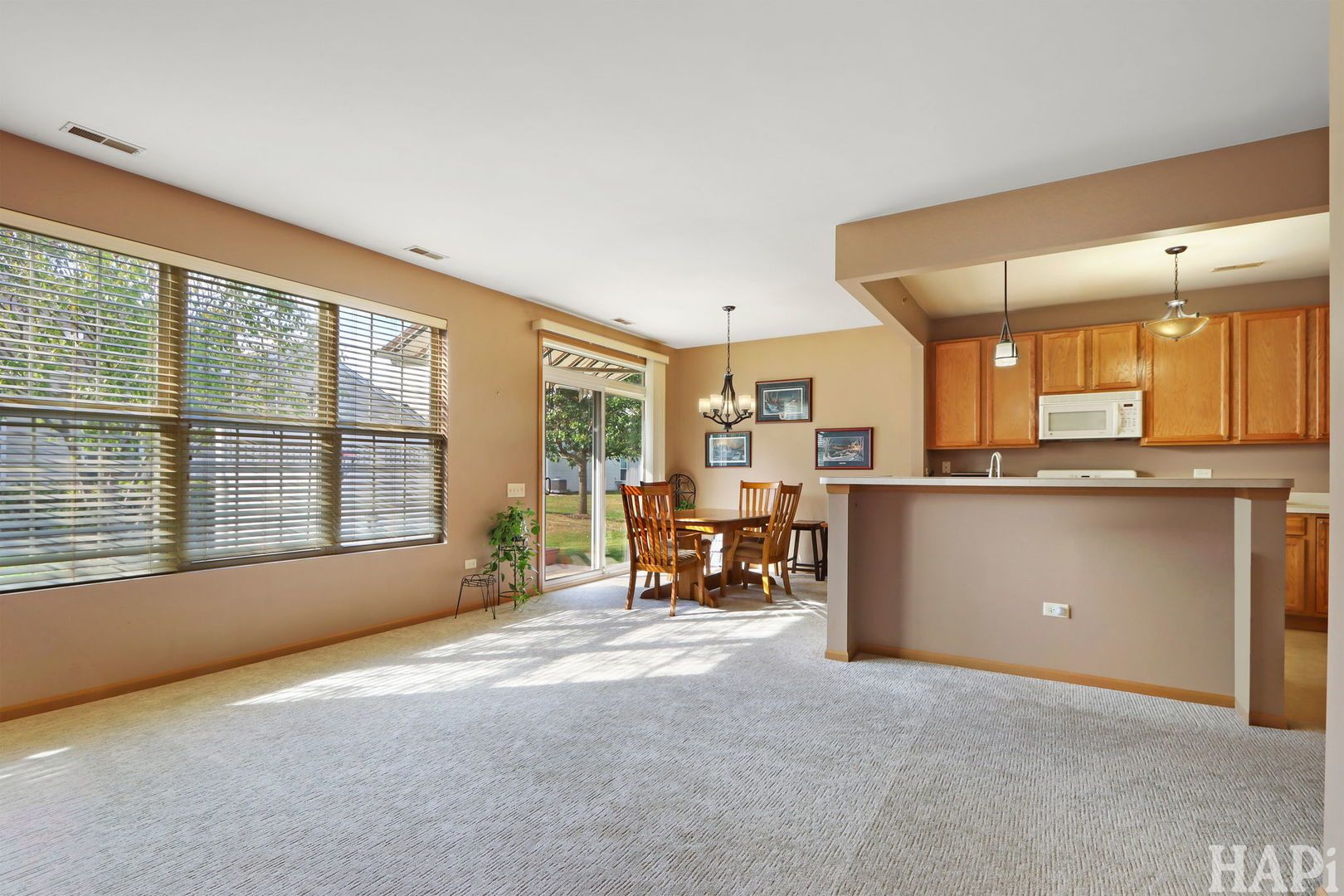 Step into this popular Savoy model offering a bright and comfortable layout with 2 bedrooms, 2 full baths, and a 2-car garage. The open concept design features a welcoming kitchen with 42" oak cabinets, breakfast bar, stainless sink, and all appliances included. A cozy dining area flows seamlessly into the living space, creating the perfect setting for everyday living or casual entertaining. The home also includes a convenient laundry room with extra cabinet space, a high-efficiency furnace, insulated garage package, storm door, and an awning that extends over the spacious patio. Enjoy your private fenced yard for relaxing outdoors. Set within an award-winning 55+ active lifestyle community, residents have access to endless amenities including golf, tennis, indoor and outdoor pools, fitness center, walking and biking trails, and so much more. Live the resort-style life every day in this move-in ready home