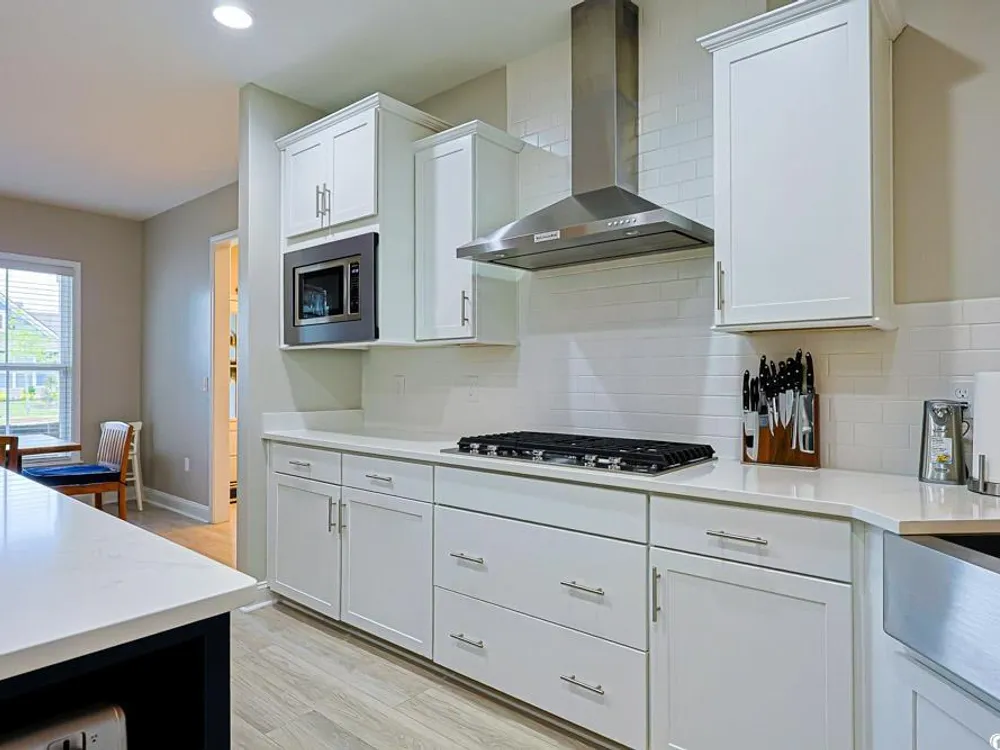 - Cooktop, Double Oven, Dishwasher, Disposal, Microwave, Range Hood