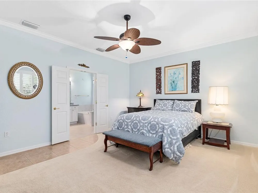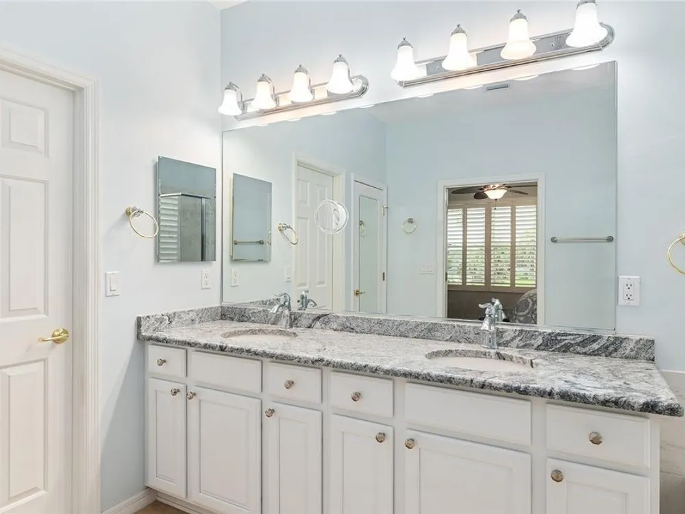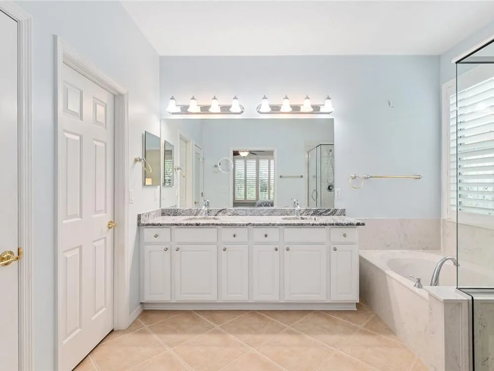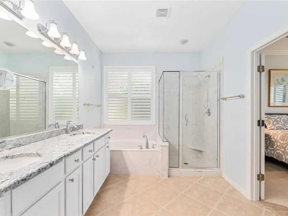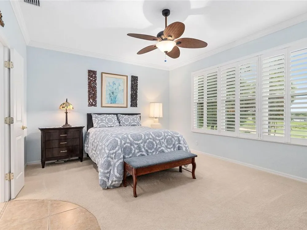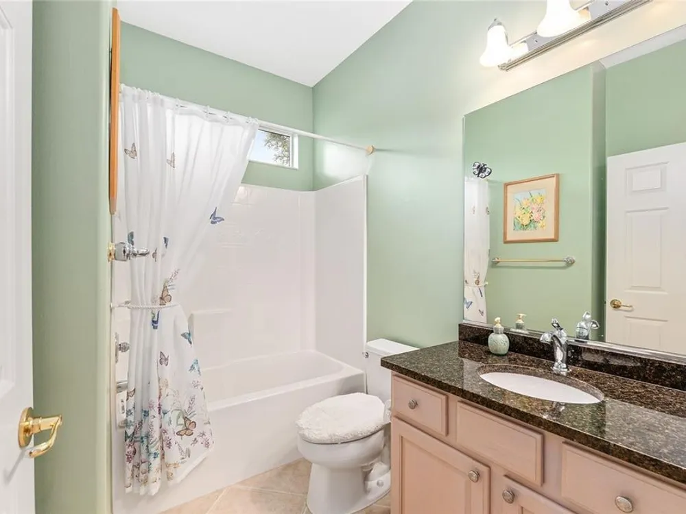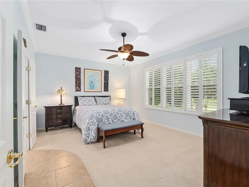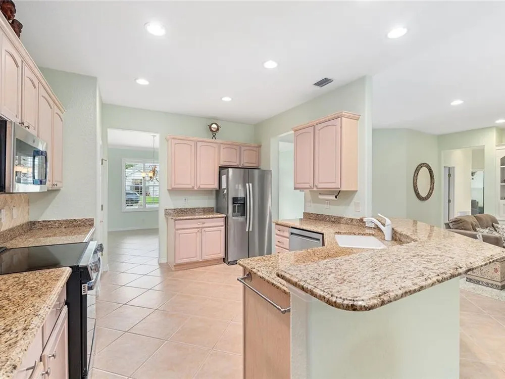 One or more photo(s) has been virtually staged. The spectacular views of Holes 2 and 3 of the Memorial Golf Course set the stage for this beautifully maintained Hanover model with 3 full bedrooms and 2 baths. From the moment you arrive, the professional landscaping, decorative curbing, and inviting front patio create a lasting first impression. Step through the double leaded glass doors and be greeted by sweeping golf course views that continue throughout the home. Impeccably clean and move-in ready, this CBS home offers tile flooring throughout and a climate-controlled enclosed lanai with a split system for year-round enjoyment. The kitchen features granite counters, birch cabinets, and stainless steel appliances, while the remodeled primary bath adds a touch of luxury. Plantation shutters, a built-in entertainment center in the Great Room, and a built-in desk in the third bedroom further enhance the home’s appeal. Additional upgrades include a tankless Rinnai water heater, freshly painted epoxy garage floor, and an extended by 4-foot garage with a dedicated golf cart garage. Major systems are up to date with a new HVAC installed in August 2025, roof replaced in 2014, and re-piped ceilings and walls. An assumable termite bond adds peace of mind.This rare Hanover with golf course frontage is truly a must-see. Call today for your private showing—opportunities like this don’t last long!