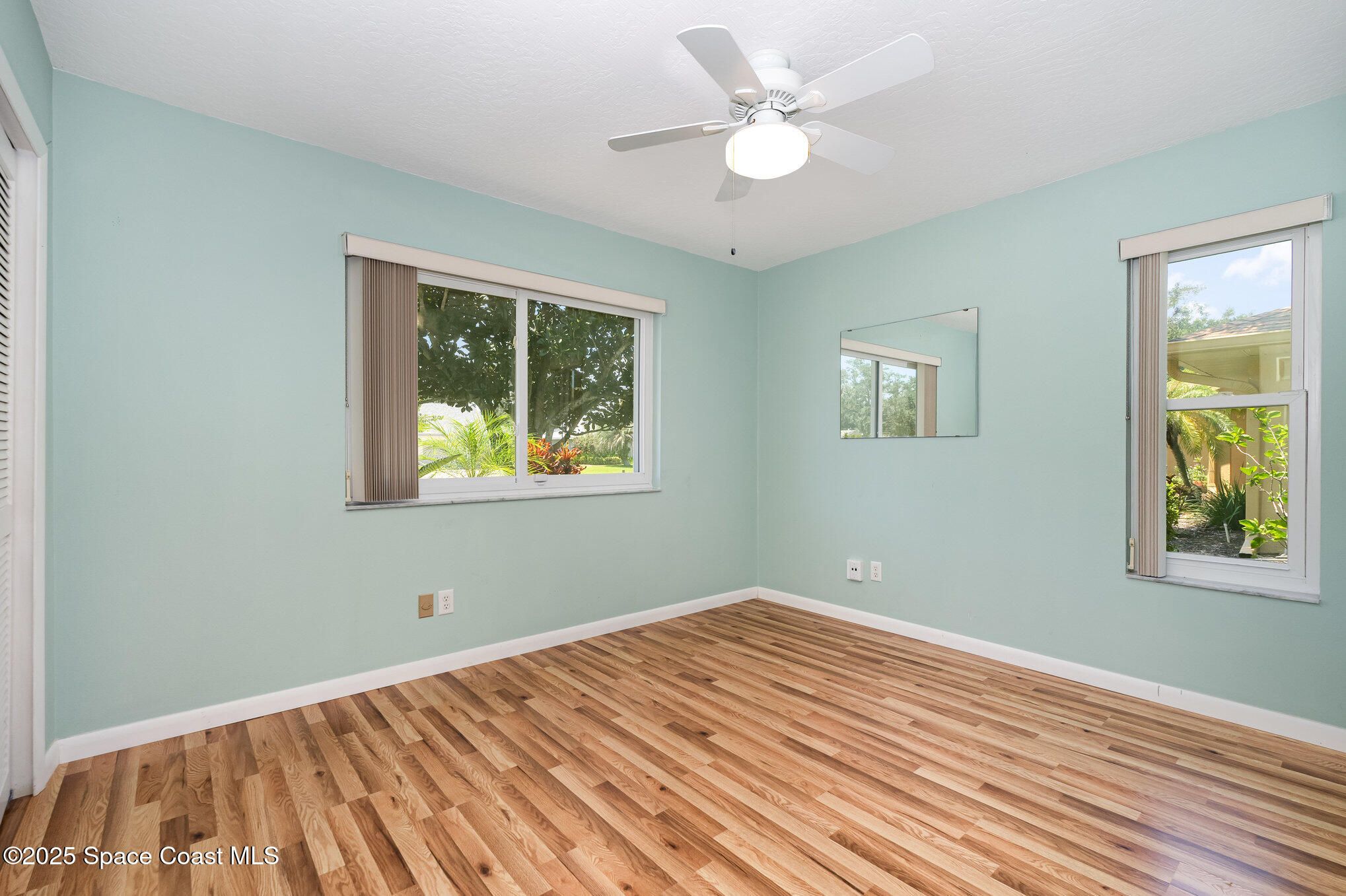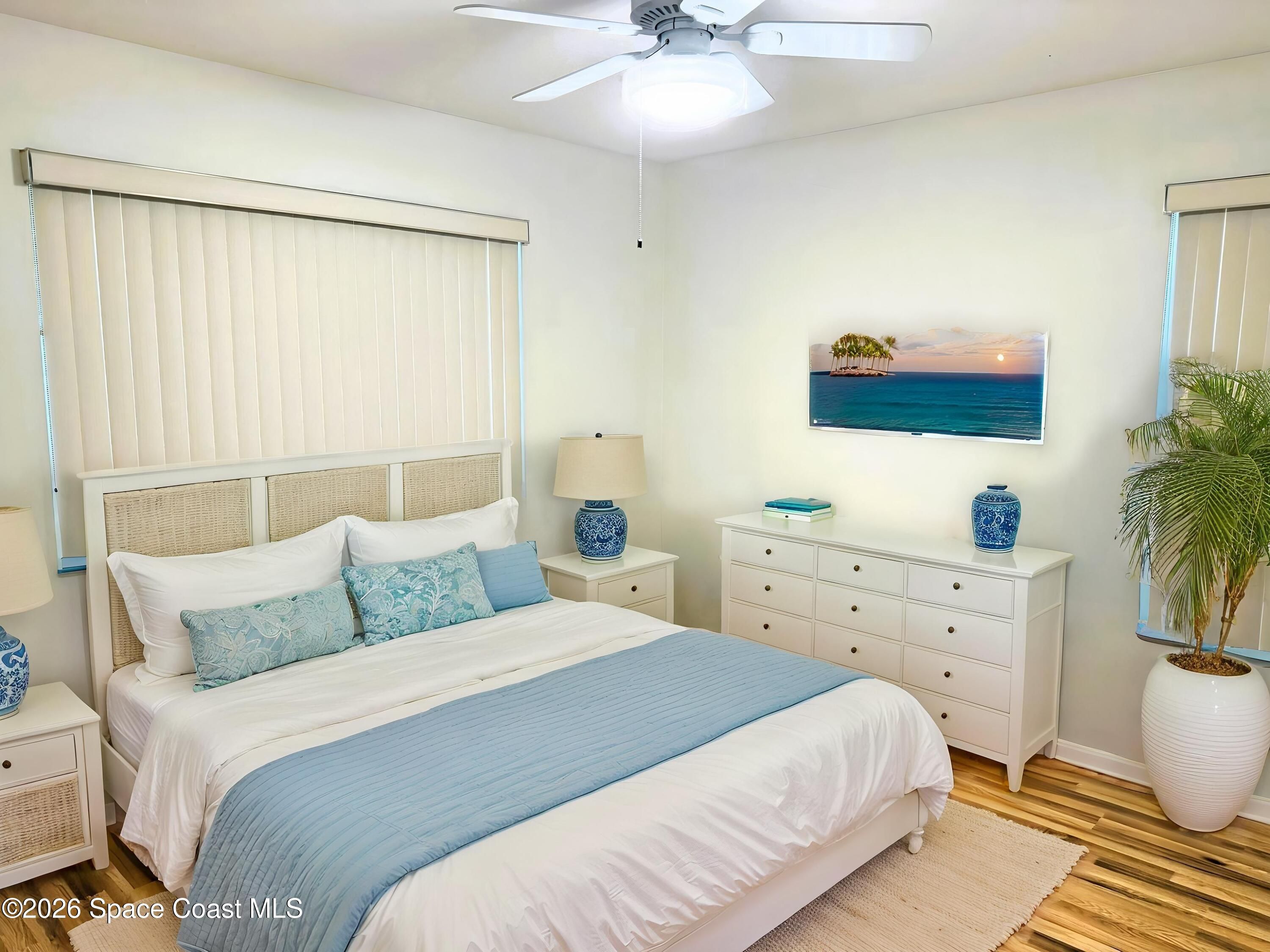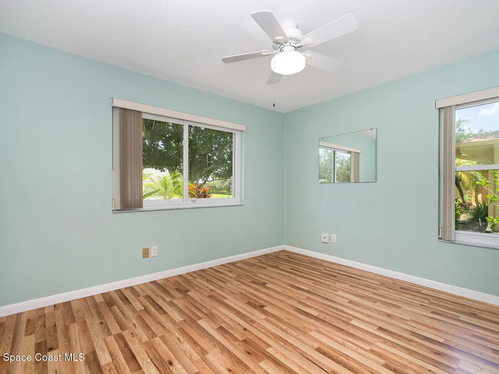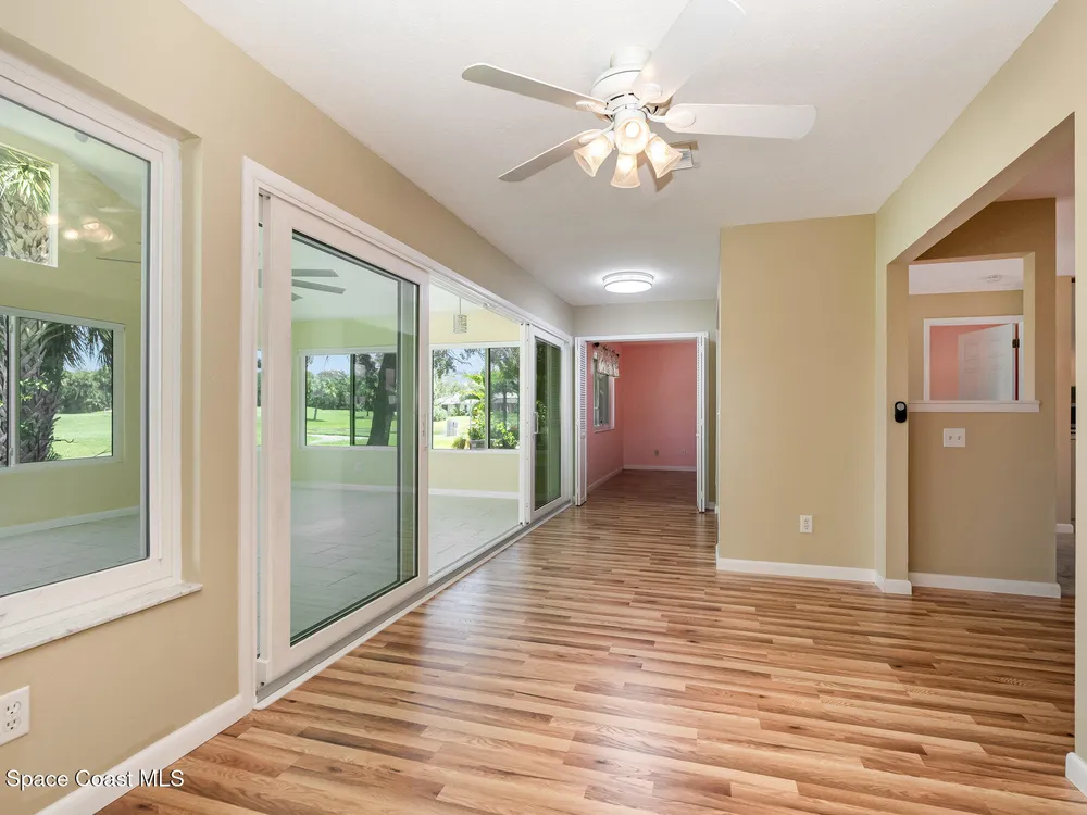 Located in a resort-style country club community, this beautifully upgraded Expanded Bangor model offers the ultimate Florida lifestyle with top-tier amenities. Enjoy stunning golf course and water views from the large Florida room and outdoor paver patio with retractable awning—perfect for entertaining or relaxing in style. Featuring an added bedroom, tile and laminate flooring throughout, and California closets in the primary and one guest bedroom. Kitchen boasts Martha Stewart cabinets and quartz countertops. Updated primary bath with walk-in shower, newer fans and lights, 2021 roof, solar attic fan, and added attic insulation. Paver driveway and pristine landscaping complete this move-in-ready home designed for comfort and style. Home to over 600 military veterans, Indian River Colony Club is a private 55+ country club community offering a unique blend of camaraderie, comfort, and care. Residents enjoy an extensive home maintenance program and access to exceptional amenities, including an 18-hole golf course, fine dining with an executive chef, the casual 19th Hole restaurant and bar, fitness center, heated pool, tennis, croquet, bocce ball, shuffleboard, and more. This pet-friendly, gated community boasts over 60 social and activity groupsmaking every day feel like a vacation.
