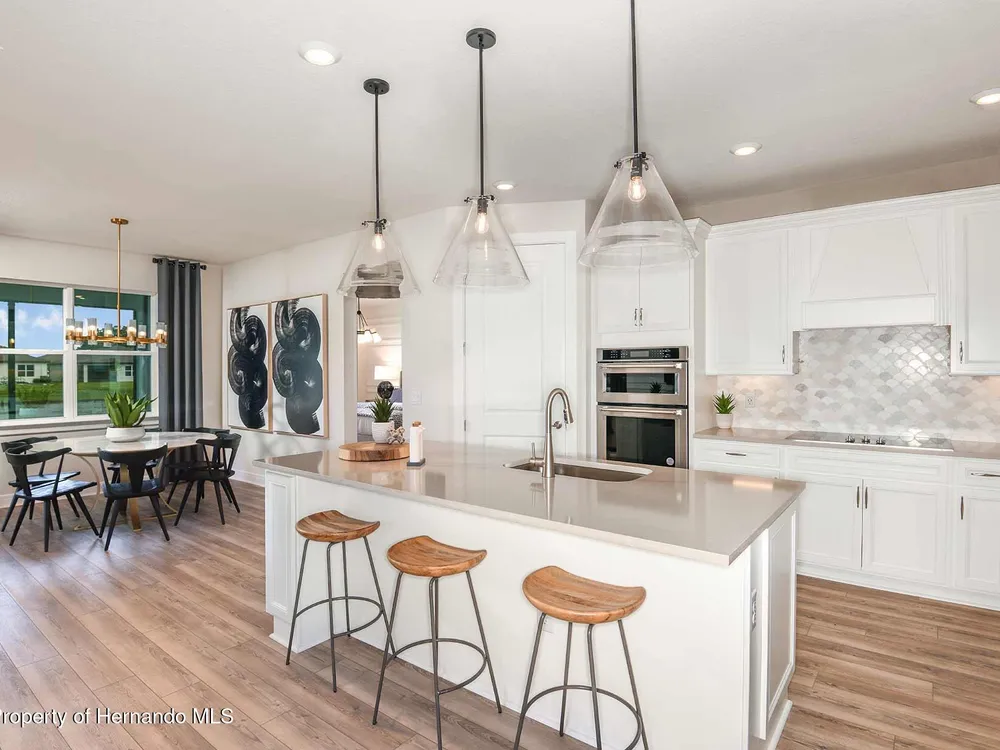 Enjoy all the benefits of a new construction home and experience a new level of retirement living at our newest Del Webb community, Del Webb River Reserve. This brand new active adult community represents everything that your next chapter in life should be about: Finding a place to belong and living life the way you want. Envision a thoughtfully crafted, resort-style residence nestled in nature with expansive amenities and vibrant gathering areas that will foster lifelong connections. This gated, active adult community is located 30 minutes north of Downtown Tampa. Featuring the popular Mystique floor plan with an open-concept home design, this home has all the upgraded finishes you've been looking for. The gourmet kitchen showcases a center island with single bowl stainless steel sink, upgraded faucet, 3cm quartz countertops with 3''x6'' subway tiled backsplash, burlap cabinets, a spacious pantry, and Whirlpool stainless steel appliances, built-in oven and microwave, dishwasher, and stovetop with range hood. The bathrooms have burlap cabinets and 3cm quartz countertops, dual sinks in the Owner's bath and walk-in shower. There is luxury vinyl plank flooring in the main living areas, 18''x18'' tile flooring in the bathrooms and laundry room and stain resistant carpet in the bedrooms. This home makes great use of space with a spacious gathering room, a versatile flex room, a convenient laundry room with built-in cabinets, extended covered lanai with screen enclosure and a 2-car garage. Additional upgrades and features floor outlet and LED downlights in the gathering room, zero corner sliding glass door at gathering room, and a Smart Home technology package with a video doorbell. Enjoy peace of mind with Pulte's transferable, 10-year Limited Structural Warranty that covers materials and workmanship in the 1st year, workability of plumbing, electrical, HVAC, and other mechanical systems through the 2nd year, various types of water infiltration and internal leaks through the 5th year, and the structural integrity of the home through the 10th year. Plus, we're currently offering limited-time incentives and below-market rates!