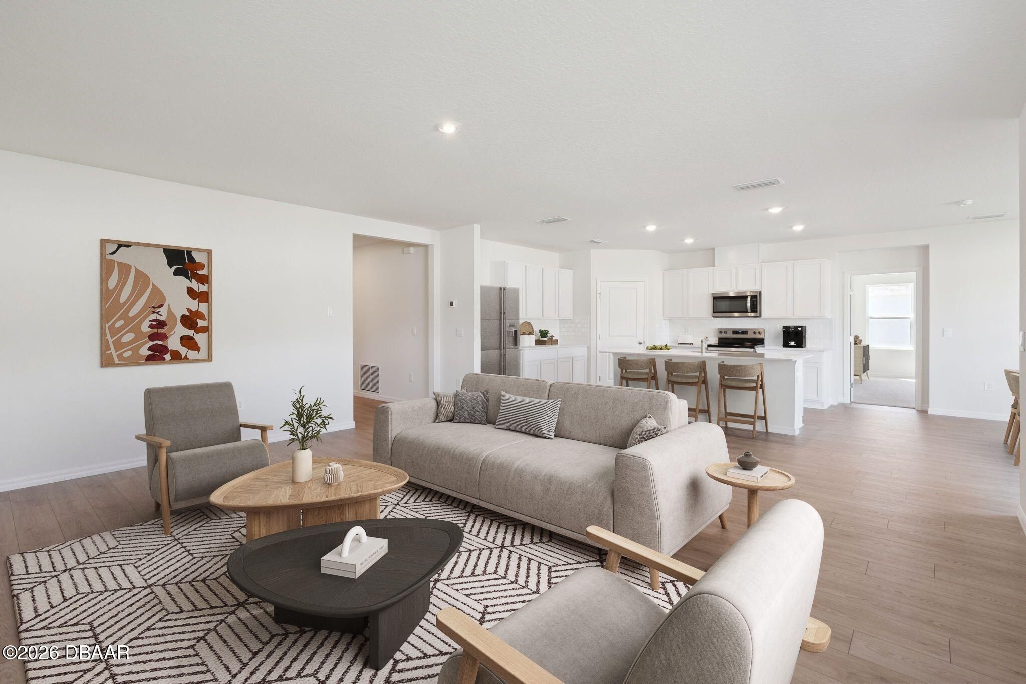 Introducing the Denham at Fountain View a stunning single-story home designed for modern family living. Spanning 2,336 square feet, the Denham offers 4 bedrooms, 3 bathrooms, and a spacious 3-car garage, combining luxury and functionality in perfect harmony. The Denham features an open-concept design that maximizes space and comfort. This 4-bedroom, 3-bathroom home is ideal for both everyday living and entertaining. The gourmet kitchen boasts stainless steel appliances, a large center island, and a generous walk-in pantry, all seamlessly integrated with the living and dining areas. Each bedroom in the Denham is designed for privacy and relaxation. The primary suite, located at the rear of the home, offers a private retreat with an en-suite bathroom featuring a walk-in closet, double vanity, and walk-in shower. The additional bedrooms are versatile and well-sized, with two sharing a bathroom and one having its own dedicated bathroom. *Photos are of similar model but not that of exact house. Pictures, photographs, colors, features, and sizes are for illustration purposes only and will vary from the homes as built. Home and community information including pricing, included features, terms, availability and amenities are subject to change and prior sale at any time without notice or obligation. Please note that no representations or warranties are made regarding school districts or school assignments; you should conduct your own investigation regarding current and future schools and school boundaries.*