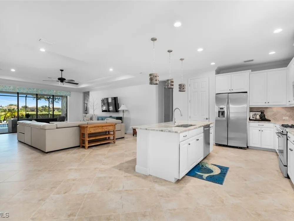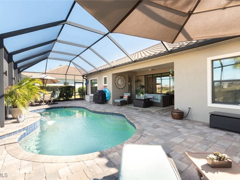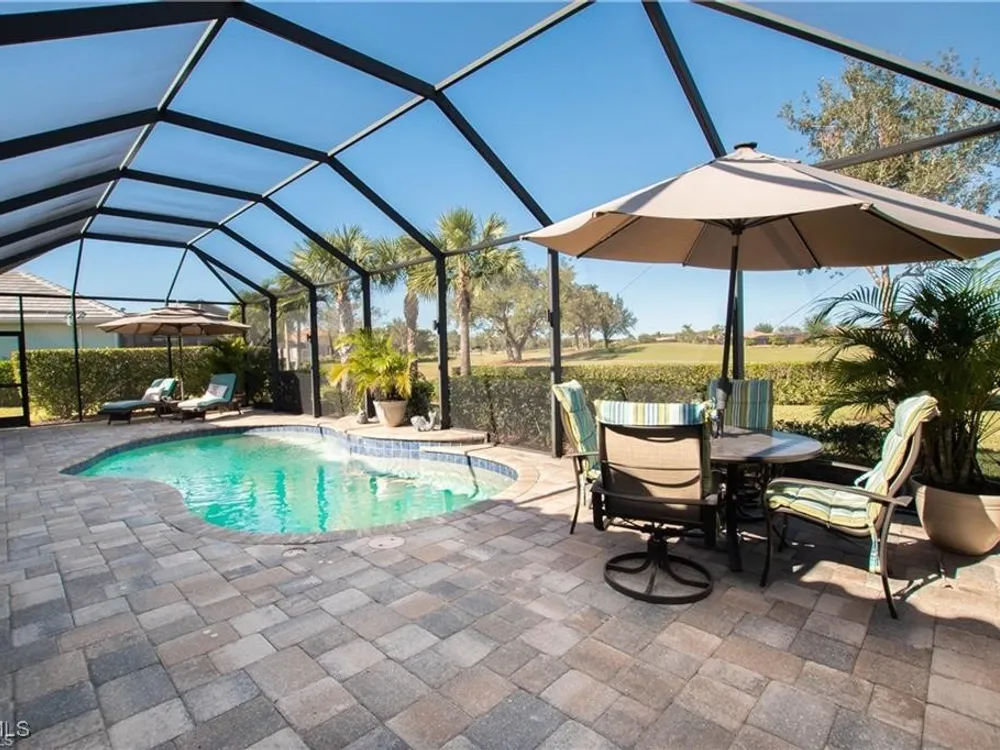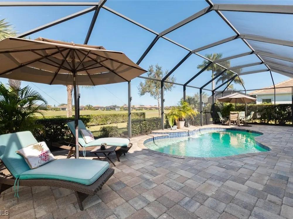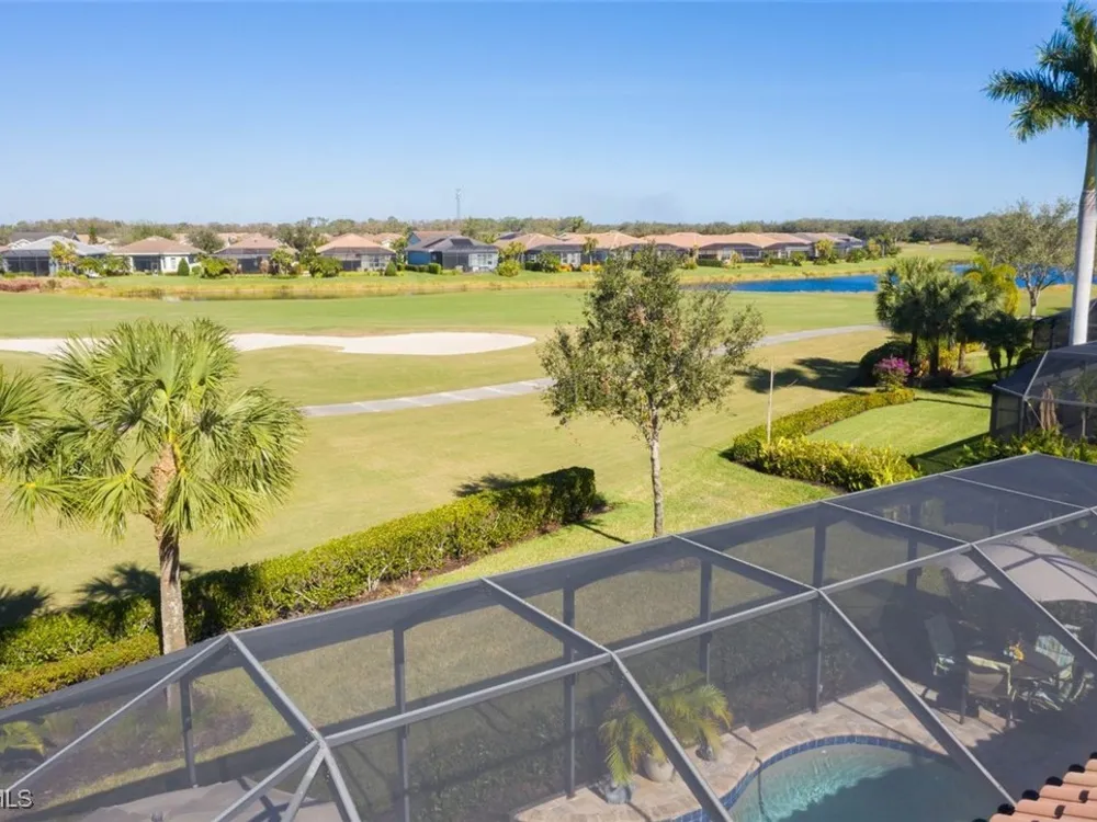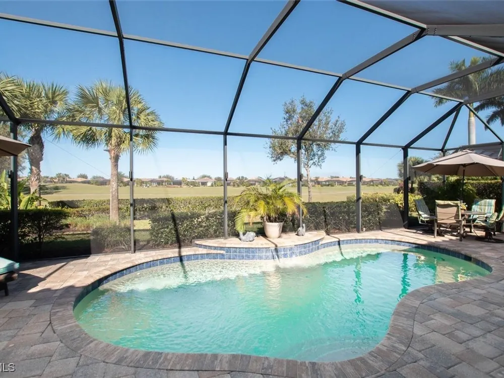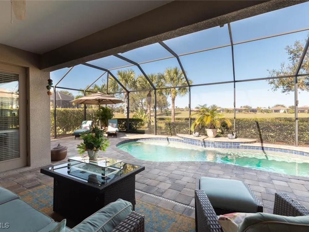 Highly maintained Arthur Ruthenberg pool home featuring over 2400 sq ft under air. This beauty features a three (3) car attached garage with an epoxy floor and extra storage, a renovated kitchen with Quartz counters and stainless steel appliances, a separate sitting room and a wide open floor plan. The view has a northern exposure of the golf course and fresh water lake is spectacular. This home is being offer furnished and has newer furniture, barely used, and is included in the purchase price. Verandah has created a wonderful lifestyle with two 18-hole championship golf courses, tennis courts, a state-of-the-art fitness center, a community pool, pickleball, and bocce ball courts....there's even a Doggy Park for man's best friend. For those who love outdoor activities, how about venturing out and KAYAKING on the adjacent ORANGE RIVER, or going for a nice bike ride or walk on the 9+ miles of trails? Verandah is conveniently located to downtown Ft Myers, the Caloosahatchee River and both the Ft Myers and Punta Gorda Airports.