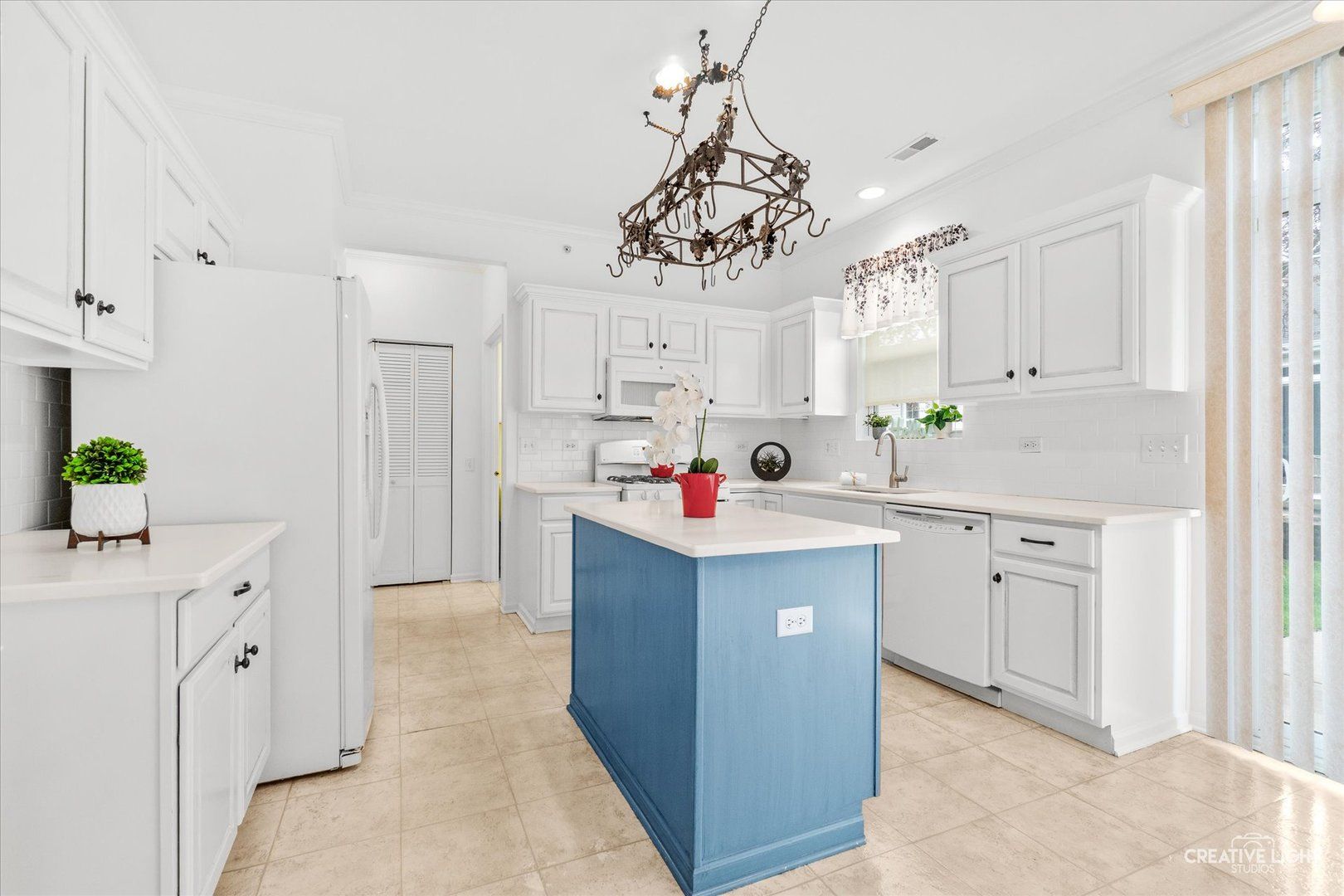 Now is your opportunity to own a rare three-bedroom home in Del Webb Sun City. This well-maintained residence features an inviting eat-in kitchen with white cabinetry, subway tile backsplash, center island, and all appliances included. The open-concept layout seamlessly connects the family room and dining area, creating a bright and comfortable living space ideal for everyday living and entertaining. The spacious primary suite offers a large walk-in closet and a private en suite bath complete with a walk-in shower and dual vanity. Additional highlights include an oversized attached two-car garage, a patio for outdoor relaxation, a laundry room with utility sink, crown molding, and ceiling fans throughout. Enjoy resort-style living with access to indoor and outdoor pools, a fitness center with classes, sauna, pickleball, tennis and volleyball courts, scenic walking, running, and biking trails, Whisper Creek Golf Course, parks, a fishing lake, and more.