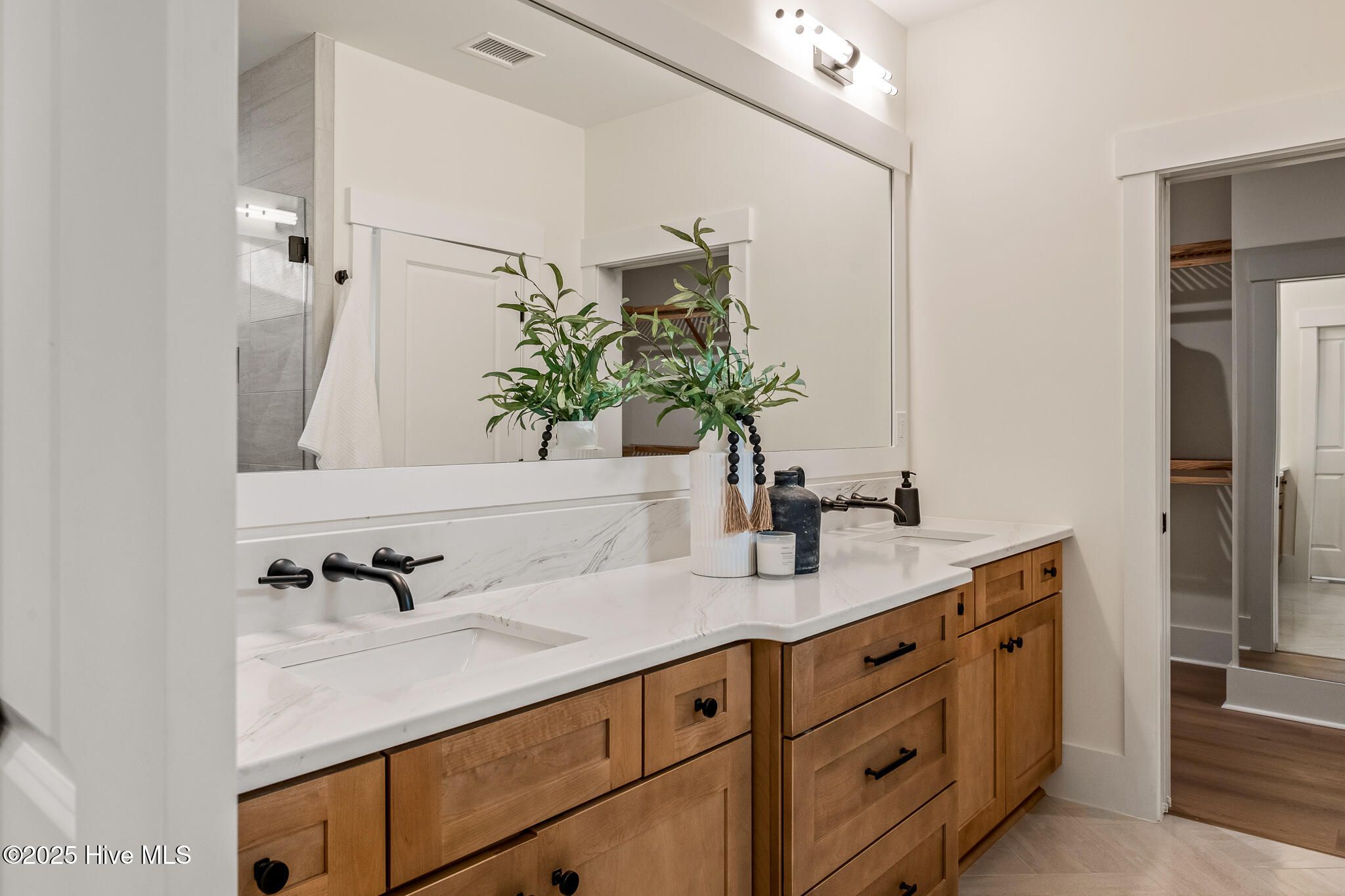 - Master Downstairs, Walk-In Closet(s), Tray Ceiling(s), High Ceilings, Kitchen Island, Ceiling Fan(s), Pantry, Walk-In Shower, Kitchen/Dining Combo