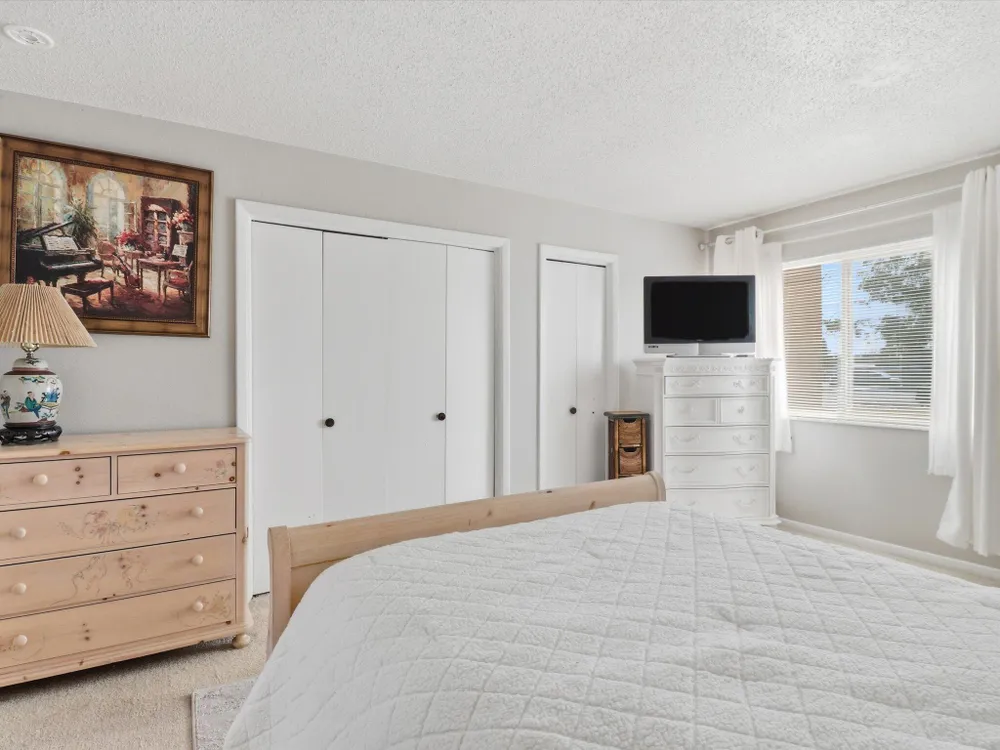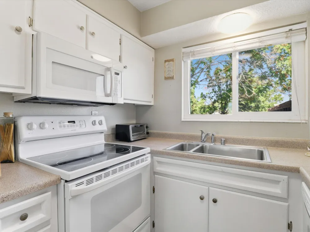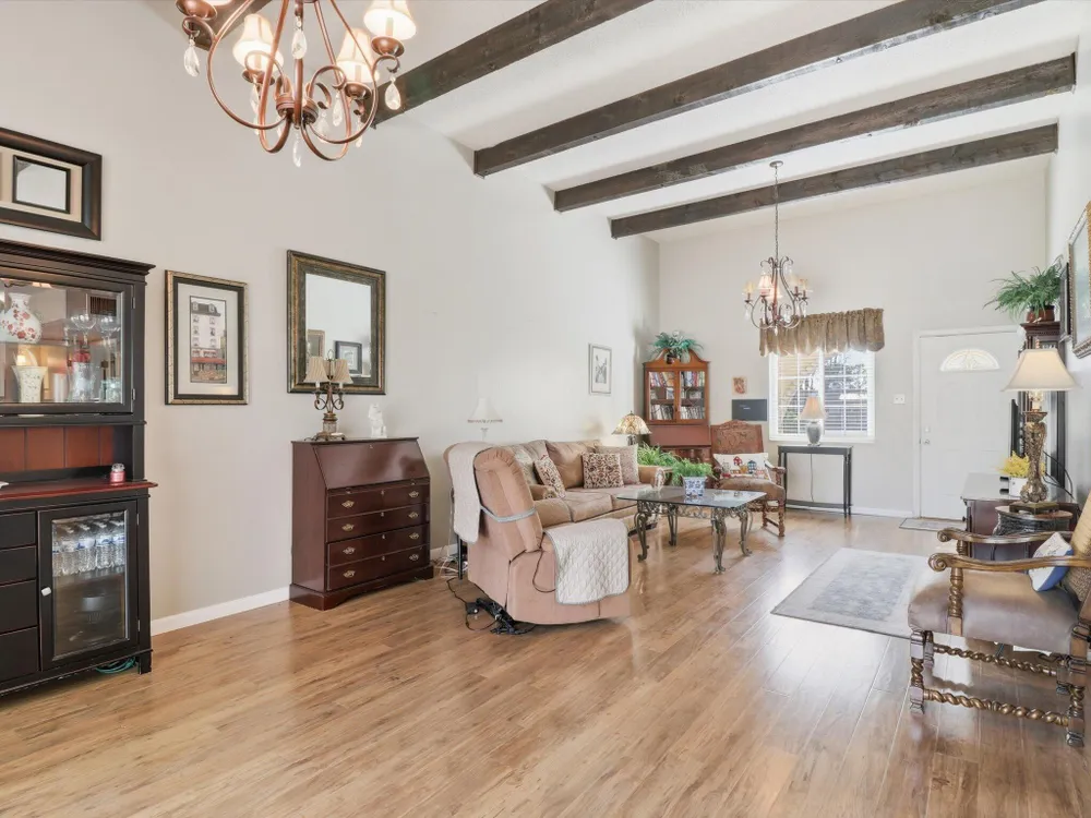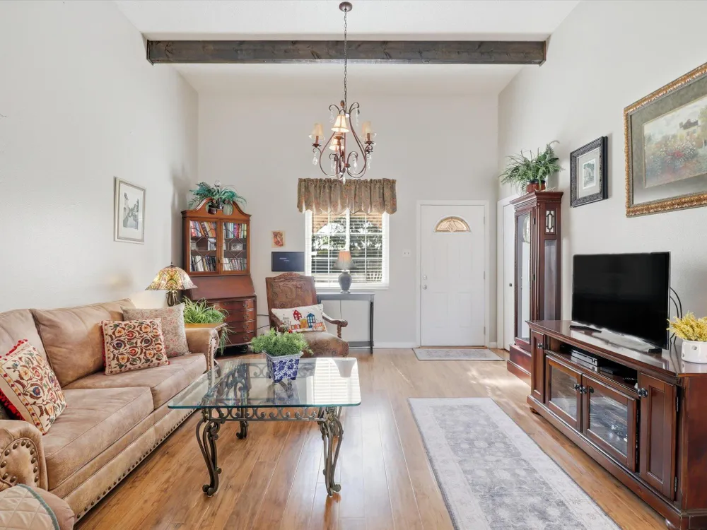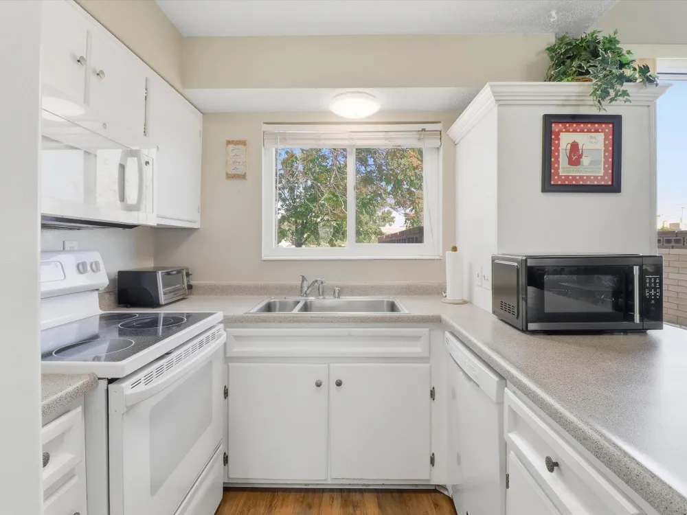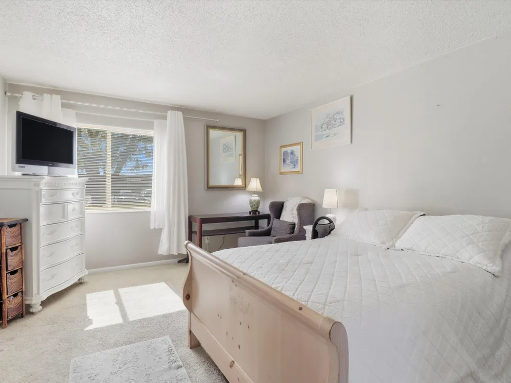 Welcome to this charming 1 bed, 1 bath condo in the desirable 55+ Golden West community! This inviting home features vaulted ceilings with exposed beams that add character and spaciousness to the open floorplan. The living and dining areas flow seamlessly, perfect for relaxing or entertaining. Enjoy private front and back patios and your own in unit washer/dryer. Community features include indoor heated pool, exercise equipment, sauna, party facility with kitchen, laundry room, and assigned parking. Beautifully landscaped and well-maintained, the community offers a friendly, low-maintenance lifestyle close to shopping, dining, and more. Don't miss this opportunity!