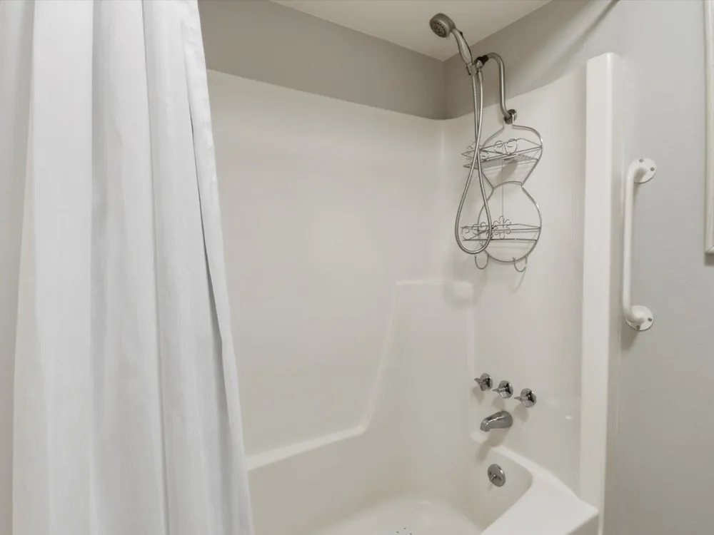 - Beamed Ceilings, Breakfast Bar, High Ceilings, Main Level Primary, Tub Shower