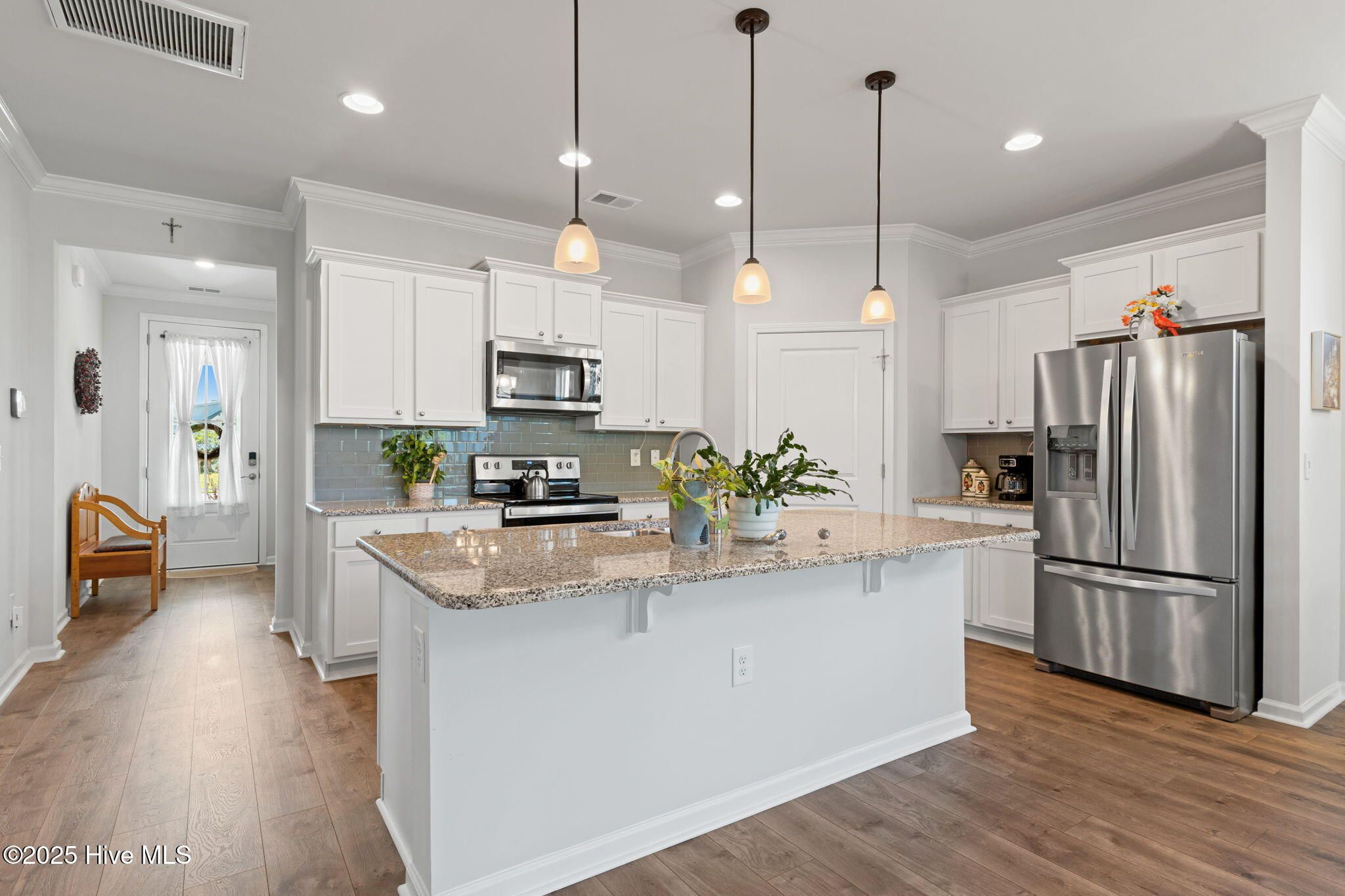 Welcome to Easy Living in The Grove at The Farm! Tucked away on a quiet cul-de-sac, this beautifully maintained single-level home offers comfort, style, and a layout that just makes life easier. The open, split-bedroom floorplan gives everyone their space while keeping the heart of the home—your bright, spacious kitchen—at the center of it all. You'll love the abundance of white cabinets, gleaming granite countertops, stainless appliances, a large island for gathering, and a generous walk-in pantry for all your goodies. Just off the main living area, sliding patio doors lead to a charming screened porch where you can relax and enjoy your private, lushly landscaped backyard retreat. The large primary suite is a true getaway with a walk-in shower, dual vanity, and a roomy walk-in closet. And with everything on one level, this home is move-in ready and easy to love. Located in the sought-after Grove section of The Farm, you'll enjoy great amenities including a pool, fitness center, fire pit, internet, and lawn care—all with low monthly HOA dues and no flood insurance required. You're just minutes from Ocean Isle and Sunset Beaches, with tons of golf courses, dining, and coastal charm all around. Don't miss this one—it's the perfect blend of comfort, convenience, and coastal fun!