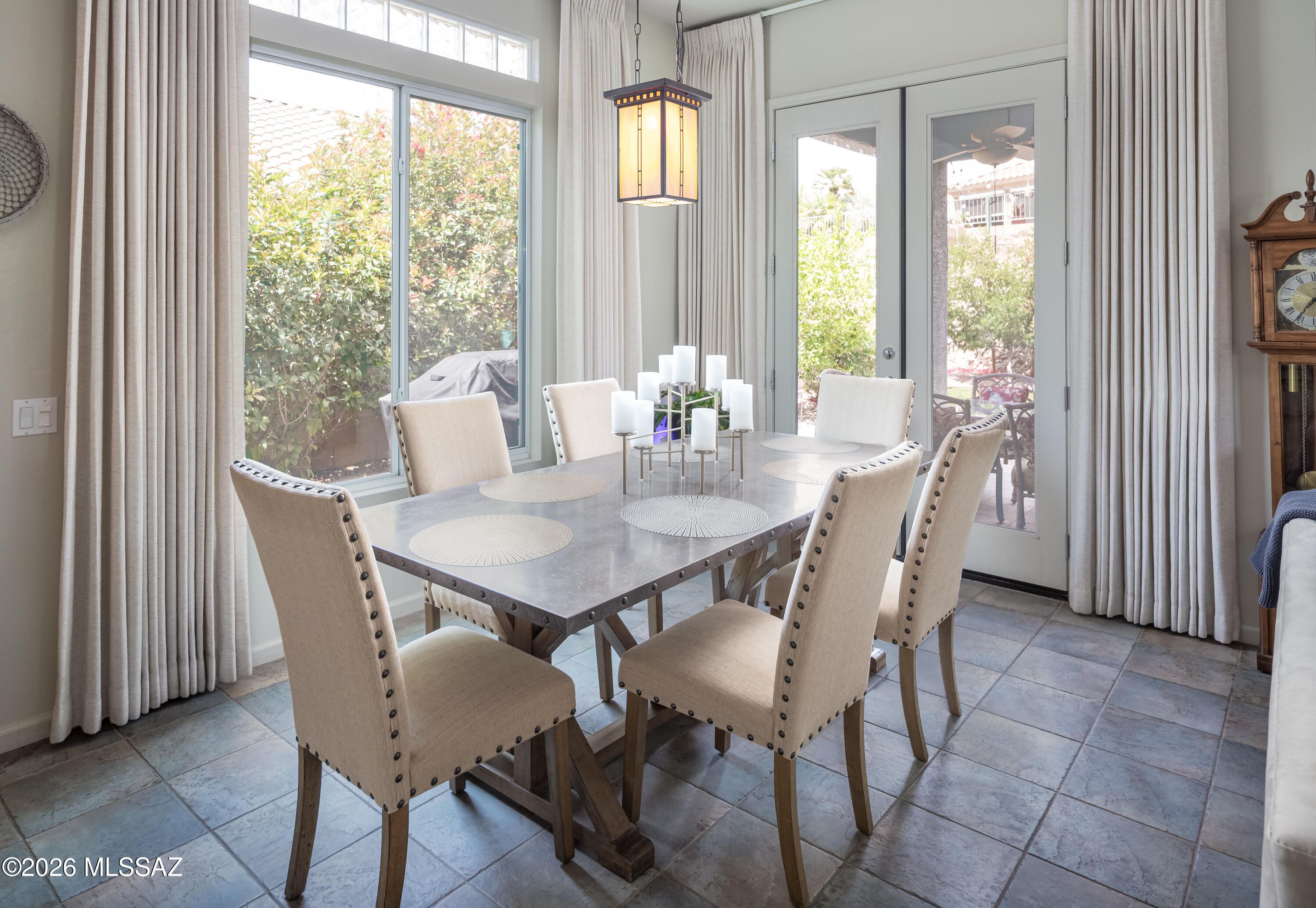 Welcome to the highly sought-after Hillsboro floor plan in the prestigious Highlands at Dove Mountain--where comfort, style, and resort living come together seamlessly.This beautifully appointed 2-bedroom, 2-bath home with a versatile den/office (flex room) is a true desert oasis, ideally situated on a premium corner lot offering both privacy and charm. From the moment you arrive, you'll be captivated by the inviting front courtyard--perfect for morning coffee or evening relaxation.Step inside to discover a thoughtfully upgraded interior featuring tile flooring throughout and elegant glass French doors at the front entry, primary suite, and great room--bringing in natural light and enhancing the indoor-outdoor Arizona lifestyle.