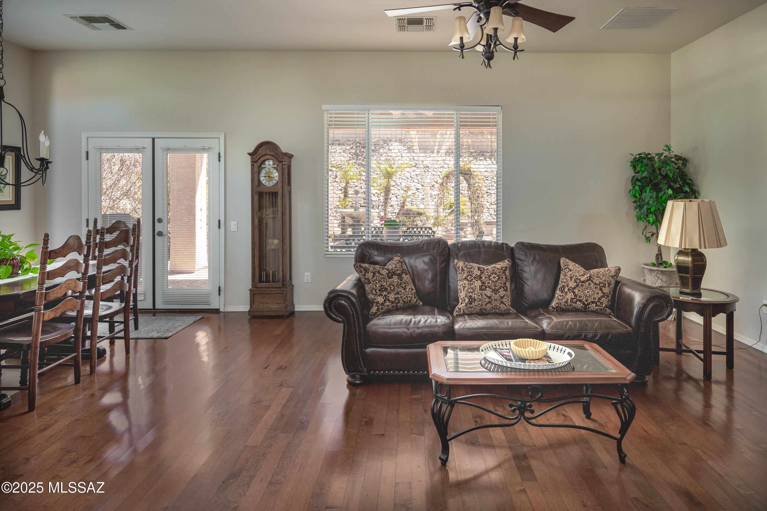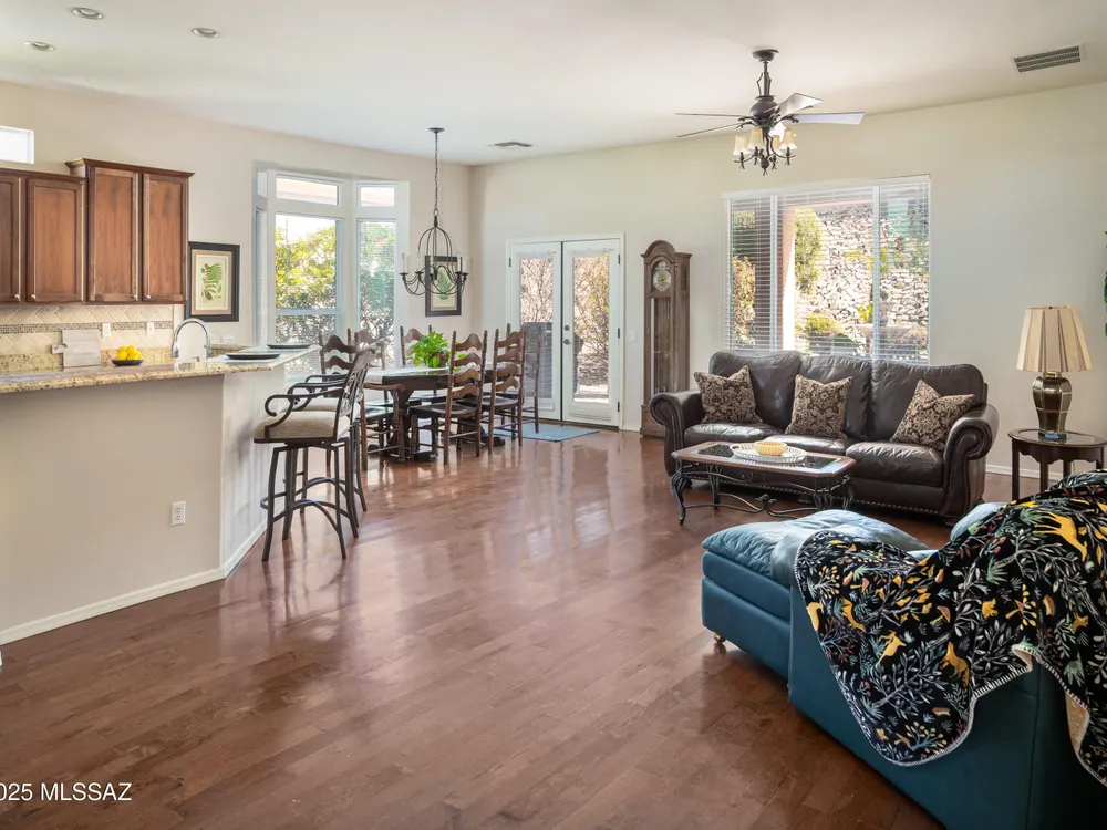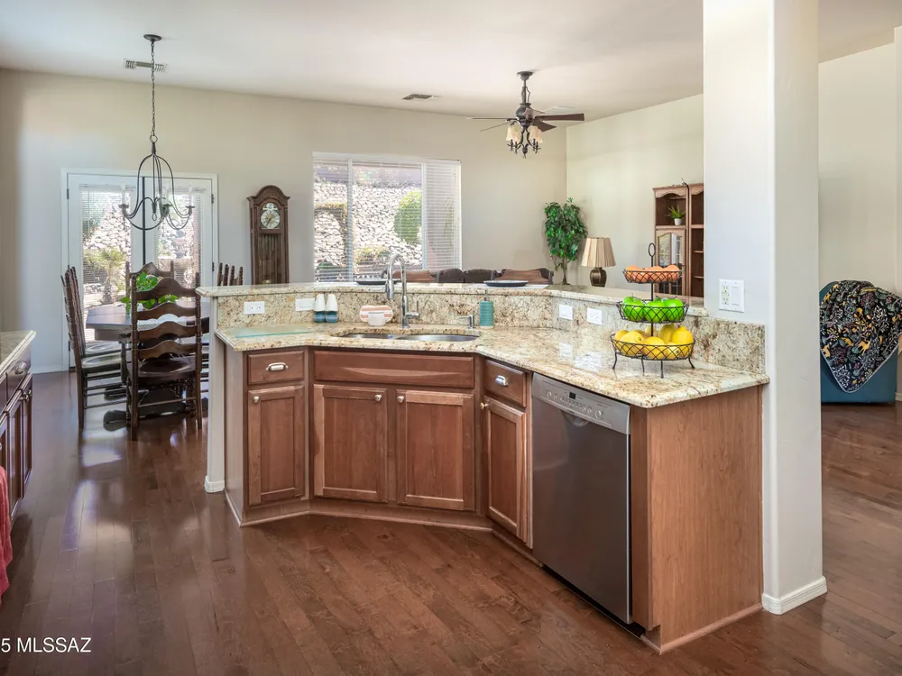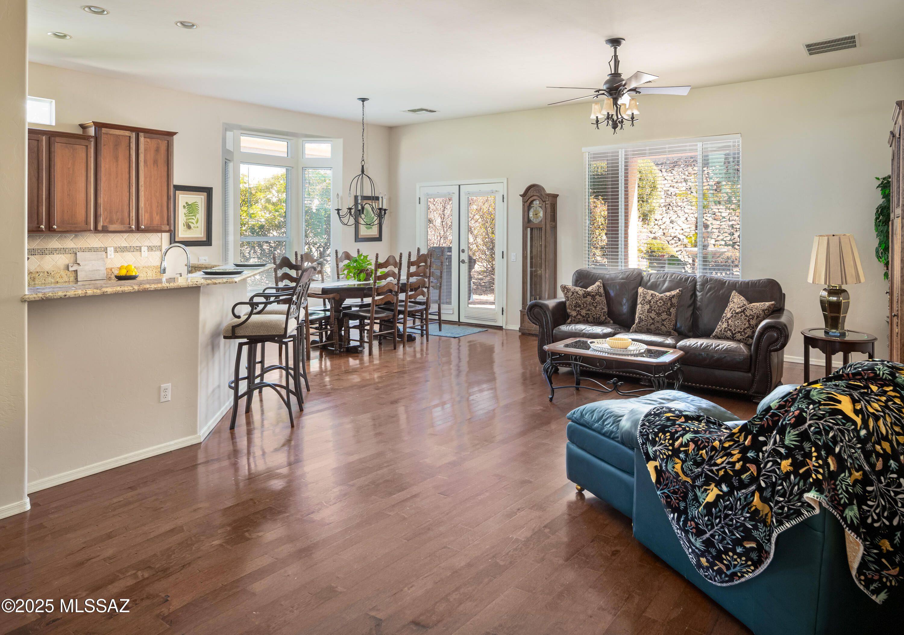 Beautifully Updated Hillsboro Model in The Highlands at Dove MountainStep into comfort and style in this beautifully refreshed Hillsboro model, featuring new flooring and fresh interior paint. The extended bay window in the dining area fills the space with natural light and offers a lovely view of the private backyard oasis, surrounded by lush, mature landscaping -- perfect for relaxing or entertaining outdoors.The chef's kitchen is a dream, complete with a gas range and all the amenities to make cooking and hosting a joy. With 10-foot ceilings, the open layout feels spacious and inviting -- ideal as a full-time residence or seasonal retreat.Located in the highly desirable Highlands at Dove Mountain, you'll enjoy resort-style living with access to an 18-hole championship golf