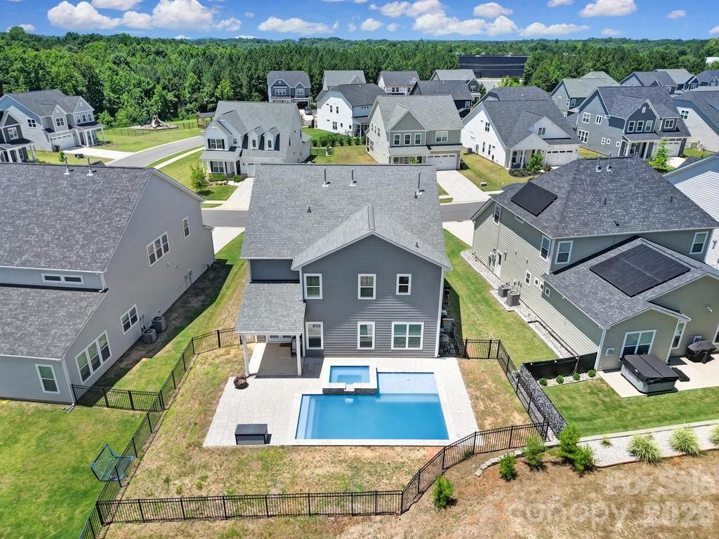 This 4-bedroom, 3.5-bath oasis offers the perfect blend of style, space, and smart design. The open-concept layout welcomes you with sun-filled living areas and a chef’s kitchen featuring a spacious island, ideal for hosting unforgettable gatherings or easy everyday living. Need flexibility? Enjoy both a dedicated office or bonus room downstairs and a versatile flex space upstairs, perfect for a fifth bedroom, playroom, second office, or media lounge. There’s room for everyone to live, work, and play in comfort. Retreat to the luxurious primary suite with double vanities, a large soaking tub, and a spa-like ambiance that invites you to unwind. Outside, a fully fenced backyard features a sparkling pool and hot tub, your private sanctuary for weekend fun or tranquil evenings under the stars. With a 2-car garage, modern finishes throughout, and thoughtful details at every turn, this home is move-in ready and designed for the way you live today.