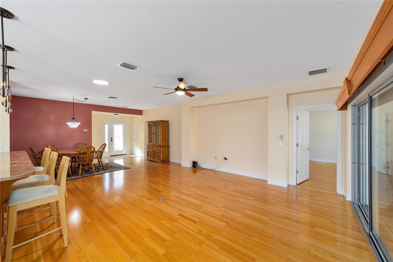 This beautiful ELKRIDGE model is one of the nicest offered in a long time. Entering through the beveled glass front door, you will see that upgrades and conveniences abound. 3 Bedrooms 2 Baths. Tiled entry, Wood laminate flooring with 6' baseboards in most areas. The kitchen boasts stainless appliances including a BOSCH Dishwasher, and a natural gas Range. 36" upper cabinets and granite countertops. Custom window cornices. The laundry is indoors. ROOF 2014 - American Standard HVAC 2016 with I-Wave Air Purifier (2021). Baths have raised vanities, comfort height toilets. Upgraded lighting and ceiling fans. 28'x10' Tiled Lanai with a Split Air Conditioning System. Sliding screens on garage door. Solar Tubes. Nice backyard! That's not all....you must see this home!