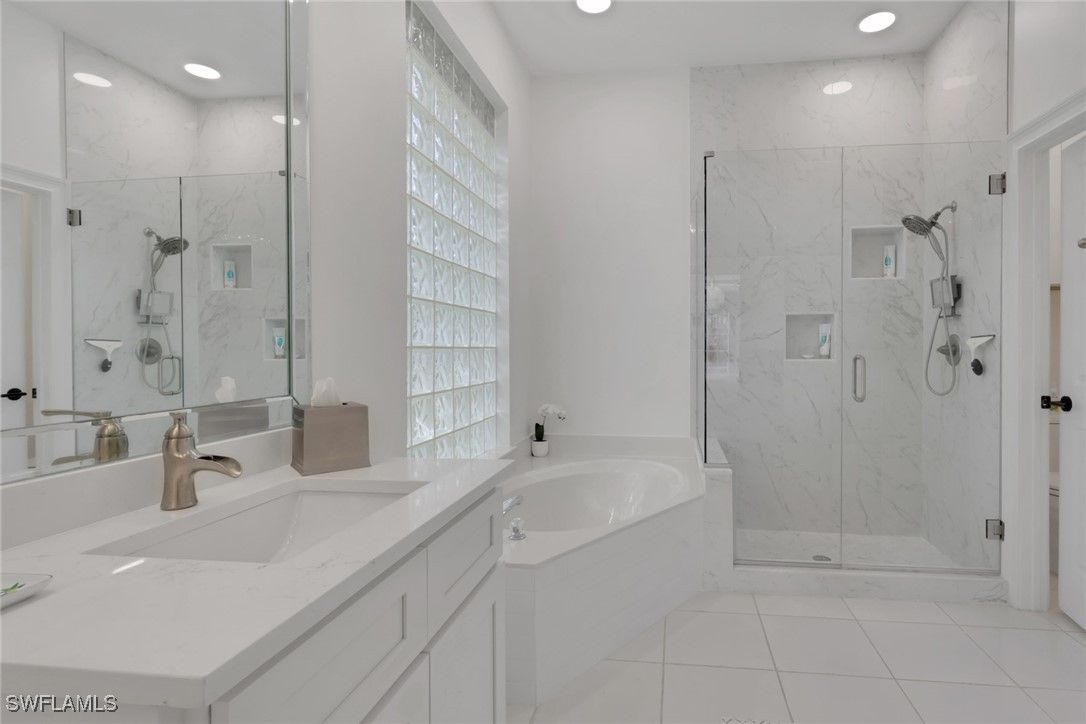 Situated on a quiet cul-de-sac with a south-facing screened-in pool, this home offers privacy and an ideal outdoor setting. The backyard offers a semi-circular lake view, delivering an expansive water perspective, enhanced privacy, and a serene atmosphere. Brand-new porcelain tile flooring runs throughout the home and is complemented by fresh interior and exterior paint for a clean, cohesive look. The kitchen features quartz countertops, modern cabinetry, updated lighting, and new stainless-steel appliances. Both bathrooms have been tastefully updated with new vanities, quartz countertops, refreshed fixtures, and contemporary finishes. Comfort and efficiency are enhanced by a new HVAC system with updated ductwork, providing added peace of mind for the next owner. Located within the gated community of Vineyards Country Club, residents enjoy access to an impressive range of amenities, including golf courses, tennis and pickleball courts, fitness and wellness facilities, dining options, scenic walking paths, and a full calendar of social activities. The community is also conveniently close to shopping, dining, and Naples beaches.