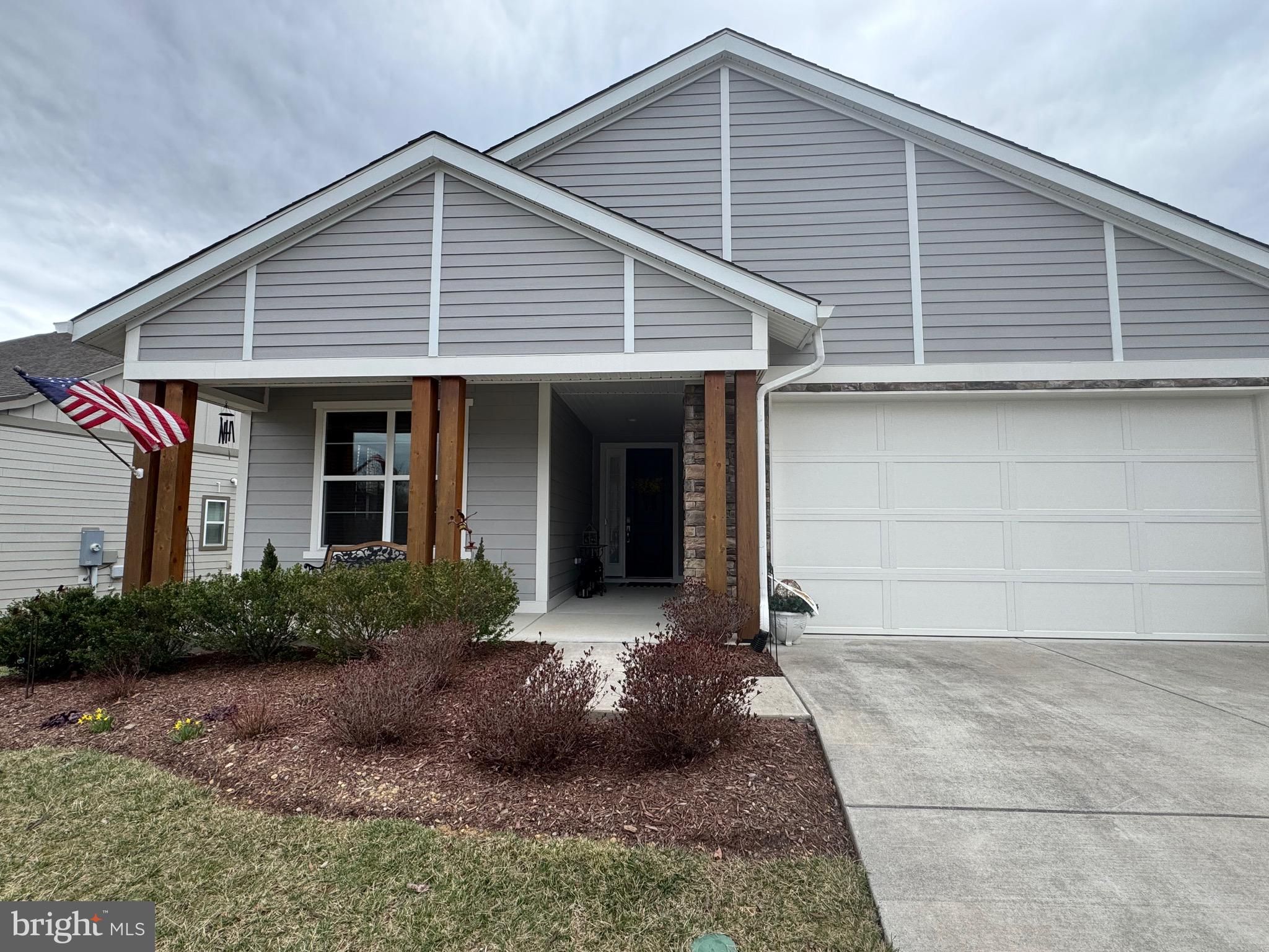 Welcome home to easy, one-level living in this beautifully cared-for one-level home located in a premier 55+ community. Designed with comfort and style in mind, the home features durable engineered hardwood flooring throughout—completely carpet-free. The stunning white kitchen opens seamlessly into the living room, creating the perfect layout for entertaining or everyday comfort. Kitchen features include upgraded cabinetry with dovetail joints and soft close, granite countertops, a spacious island, well-designed undercabinet lighting and a separate pantry closet. A separate dining room offers space for gatherings. The cozy den provides a quiet retreat. The oversized laundry area adds convenience, along with a separate storage closet for extra organization and functionality. The generously sized primary suite boasts a private bathroom and an impressive walk-in closet. Step outside to a covered back porch to enjoy relaxing mornings or peaceful evenings. Additional highlights include an irrigation system, water softener, upgraded HVAC system, security system, and an extended garage area for storage or workspace. Low-maintenance living at its best!