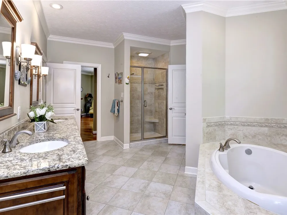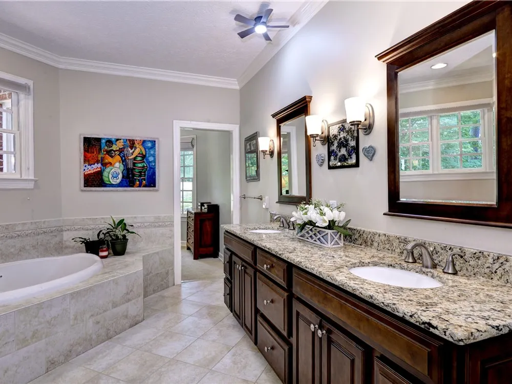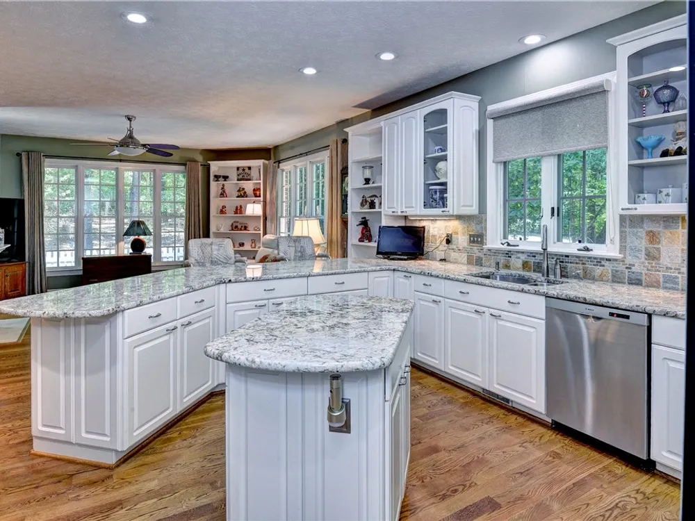 - Attic Access, Bookcases, Built-in Features, Ceiling Fan(s), Dining Area, Separate/Formal Dining Room, Double Vanity, Eat-in Kitchen, Granite Counters, Garden Tub/Roman Tub, High Ceilings, Kitchen Island, Pantry, Recessed Lighting, Walk-In Closet(s), Window Treatments