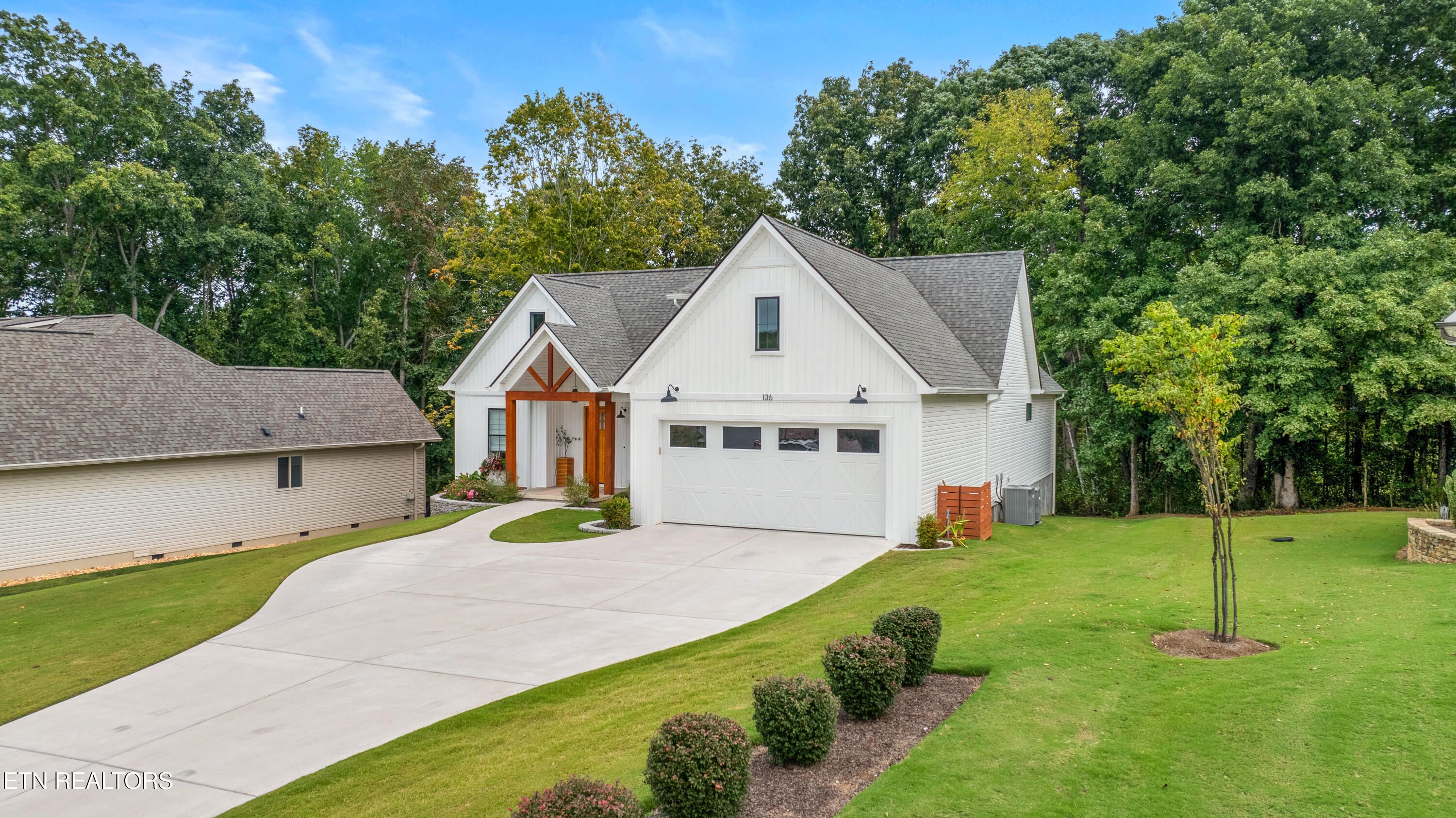 Presenting a Charming Basement Rancher, meticulously maintained and delivering extraordinary style, stunning details, and total WOW factor. Move-in ready and priced below appraised value! Inviting front entrance showcasing modern farmhouse charm with board & batten siding, wood accents, and a large covered front porch, welcoming you home. Inside, an open and cozy floor plan leads your eyes toward the living -kitchen area and invites you to explore every stunning detail. Features include 10' cathedral ceilings in the Great Room and Master Bedroom, 8' doors, 11' scissor trusses on the main level, and large windows for natural light (window treatments convey). Floor-to-ceiling stone electric and modern fireplace, decorative beams, beautiful warm accent wall, and LVP flooring throughout (no carpet) add to the charm. Chef's dream kitchen features white cabinets with a striking accent island, accent lighting, floating shelves, backsplash, stylish faucet and hardware, quartz countertops, and a spacious island topped with butcher block top. High-end appliances include a 36'' Burgundy Verona Electric Italian range, LG SS refrigerator and microwave, Fisher & Paykel double-drawer dishwasher, and a custom-built range hood with custom shelving & sconces on each side. The Generous Owner's Suite boasts a cathedral ceiling with decorative beams. Spa-like bath offers large double vanities, a soaking tub, walk-in shower, and a closet complete with pull-down rods, custom shelves, built-in ironing board, and direct access to the laundry room with additional shelving. With the exception of the powder bath, all doors are at least 36'' wide. Custom wood barn doors enclose the laundry and powder bath, which features a custom sink top, beautiful accent wall and quality ranch-style finishes. Throughout the home custom trim details, some are crafted from 100-year-old reclaimed wood sourced from a house on the Mississippi River. Guest suite includes a built-in safe and offers privacy as well as access to the spacious back deck with a swing that conveys with the property. The garage entry provides a no-step entrance for convenience. Built with a multi-generational living concept in mind, the lower level reveals an expansive living area ideal for entertainment or in-law accommodations, featuring a full second kitchen, living room, 2 bedrooms, bathroom, laundry room, and office, along with a climate-controlled shop. Finally, enjoy outdoor living at its best, relax on the front covered porch, unwind on the rear covered porch, or take in the fresh air on the large covered lower-level deck. A private backyard enhances the natural beauty and tranquility of the setting. With so many wonderful features to explore, this stunning home is truly a must-see! Come experience it for yourself!