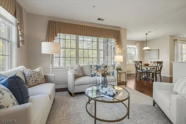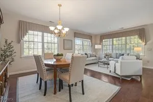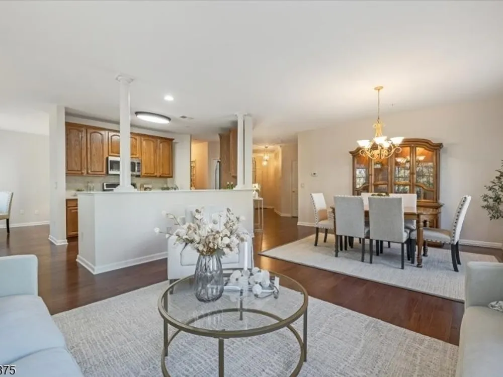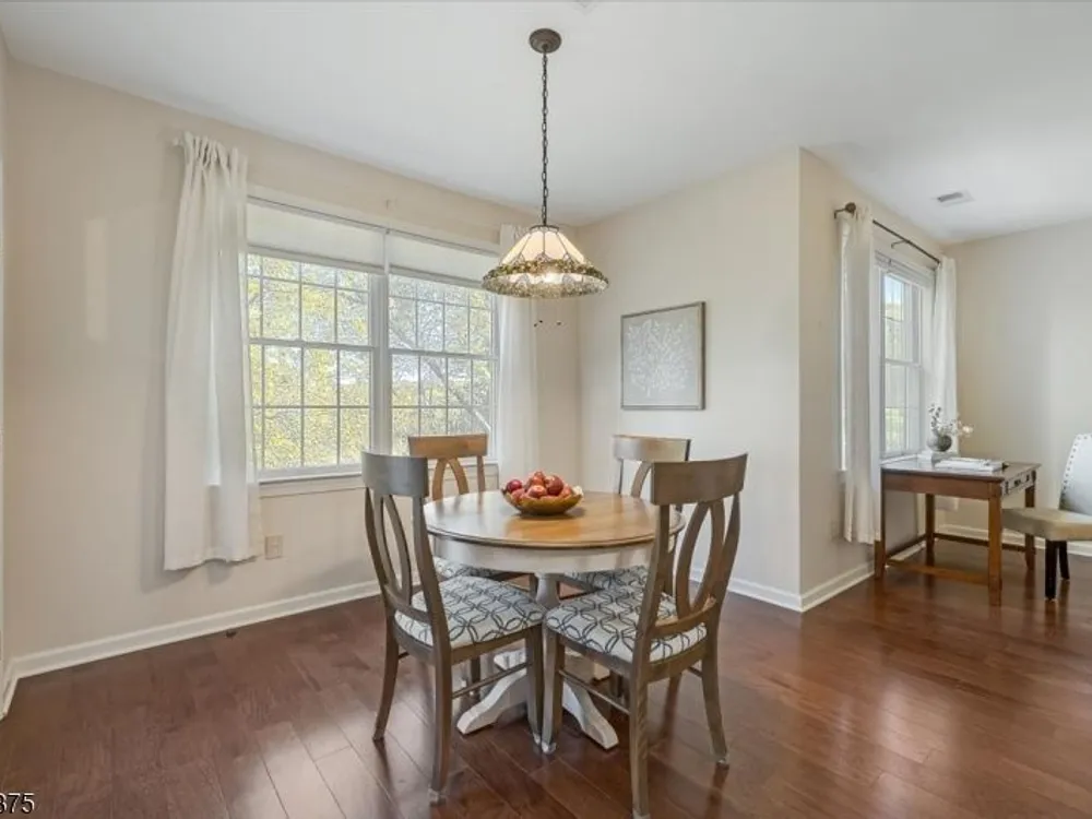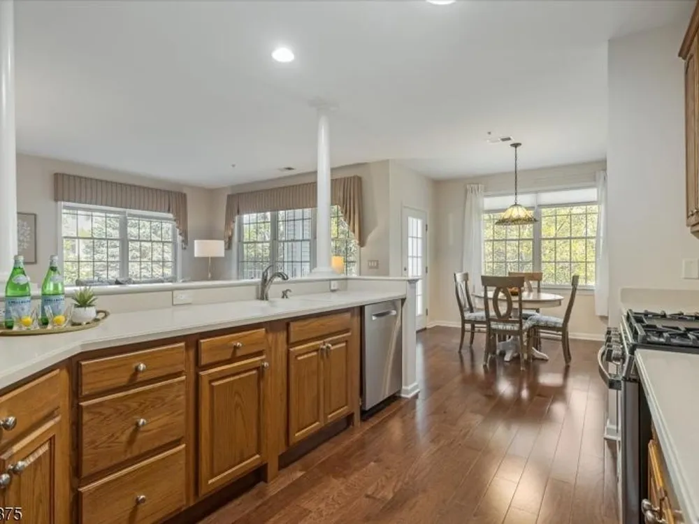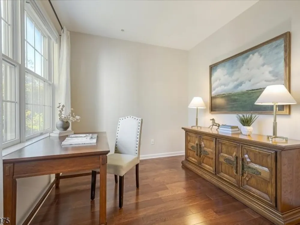 Welcome Home! This stunningly updated end unit sits within the beautiful and highly sought after Horizons at Mount Arlington adult community. Walking into the unit you will find gleaming hardwood floors and large windows throughout with an open concept floor plan. The eat in kitchen opens up to the dining and living room area and also has a generous office space. The primary bedroom is 18x15 and has a large walk in closet. The primary bathroom has a soaking tub and a stall shower. There is also a second bedroom and an additional full bathroom. The end unit has a private balcony that backs to the wooded area of the community making it a serene and calming environment to relax. There is also a private assigned garage space and storage unit with plenty of additional guest parking. The community comes with many amenities such as a walking paths, pool, pickle ball court, bocce ball court and a club house that has a full exercise room, billiard room and a large dining space for events and get togethers. Minutes from main highways, restaurants and shopping make this the perfect location! Newer central air, furnace and hot water heater replaced in 2020. Don't miss it!!