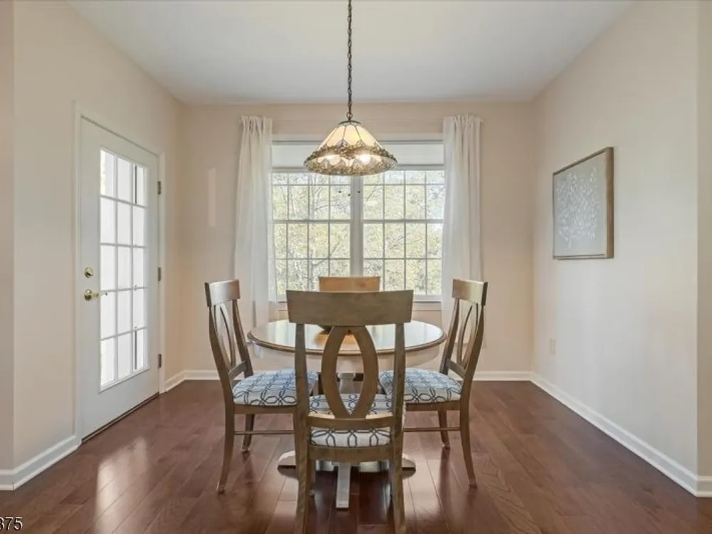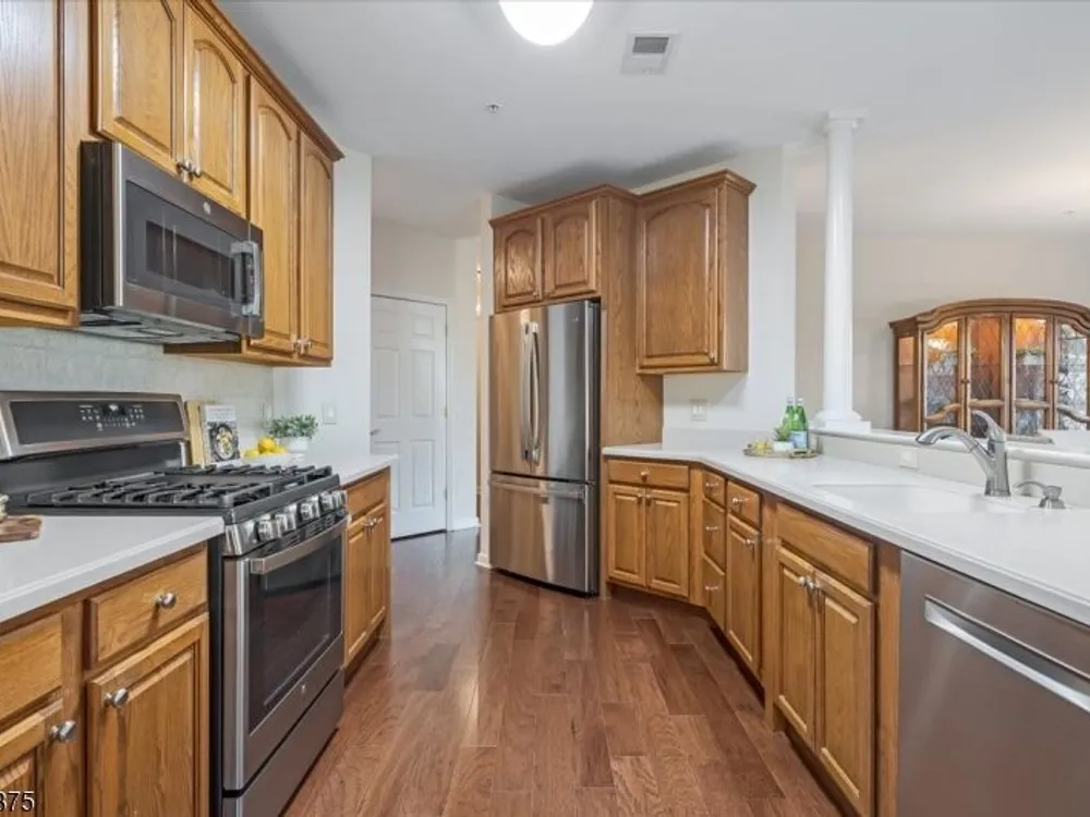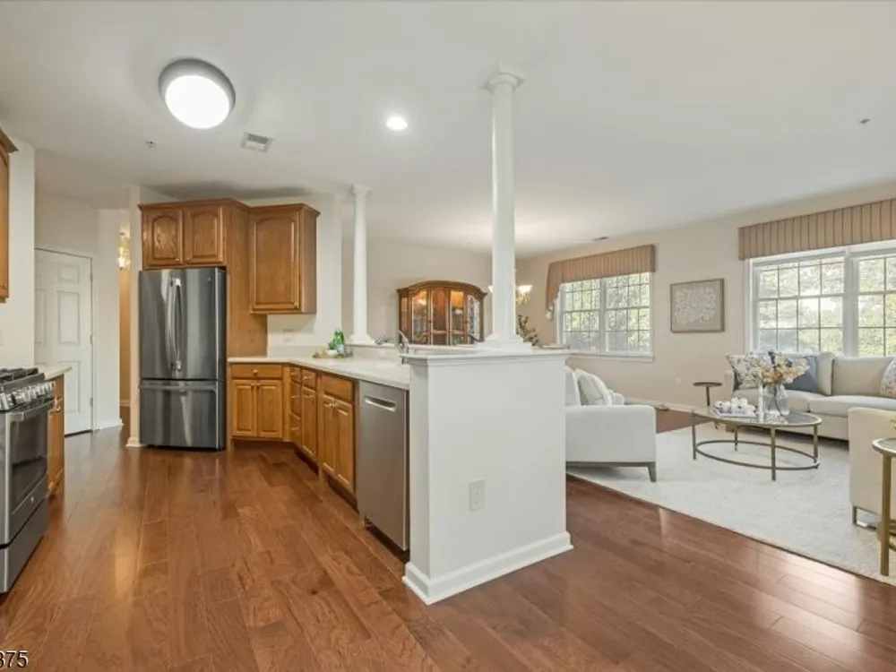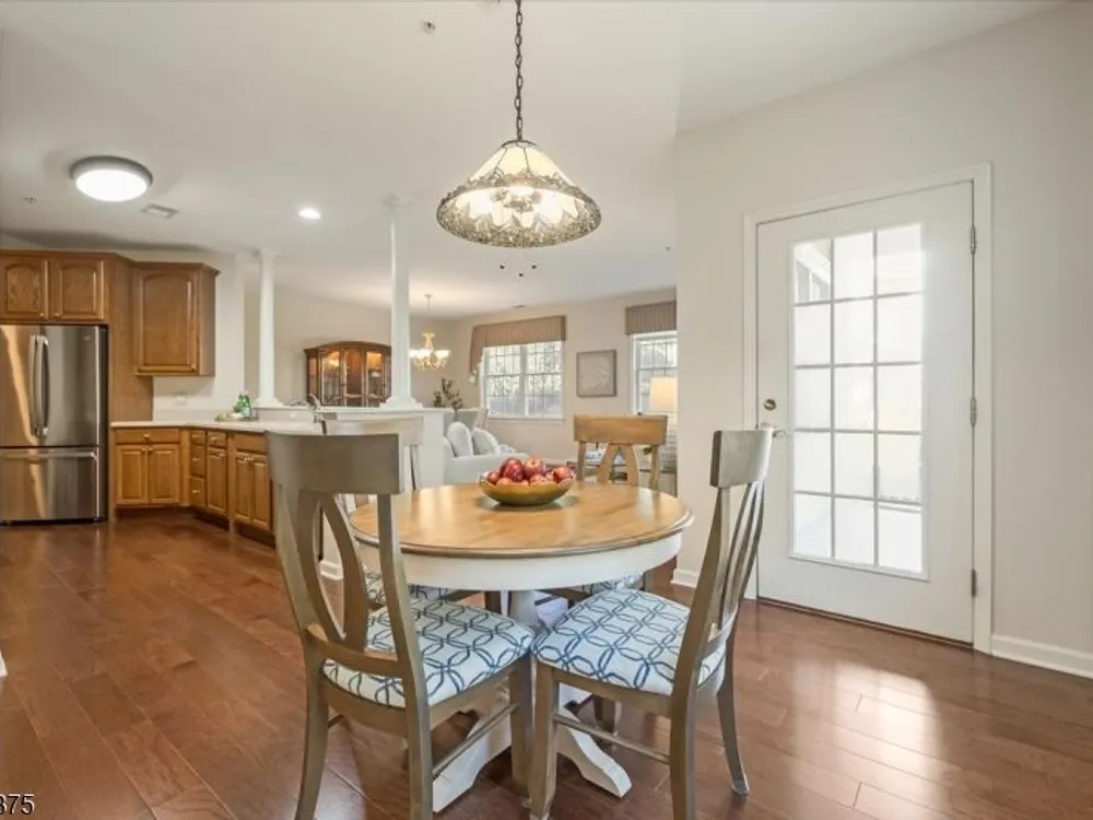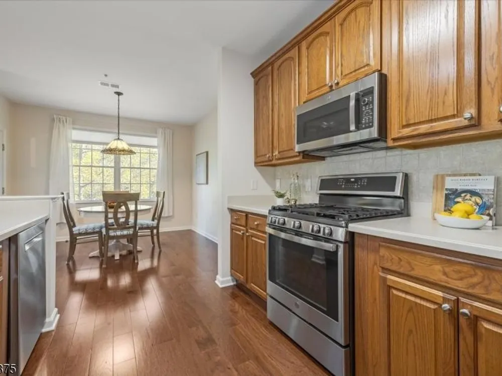 Welcome Home! This stunningly updated end unit sits within the beautiful and highly sought after Horizons at Mount Arlington adult community. Walking into the unit you will find gleaming hardwood floors and large windows throughout with an open concept floor plan. The eat in kitchen opens up to the dining and living room area and also has a generous office space. The primary bedroom is 18x15 and has a large walk in closet. The primary bathroom has a soaking tub and a stall shower. There is also a second bedroom and an additional full bathroom. The end unit has a private balcony that backs to the wooded area of the community making it a serene and calming environment to relax. There is also a private assigned garage space and storage unit with plenty of additional guest parking. The community comes with many amenities such as a walking paths, pool, pickle ball court, bocce ball court and a club house that has a full exercise room, billiard room and a large dining space for events and get togethers. Minutes from main highways, restaurants and shopping make this the perfect location! Newer central air, furnace and hot water heater replaced in 2020. Don't miss it!!